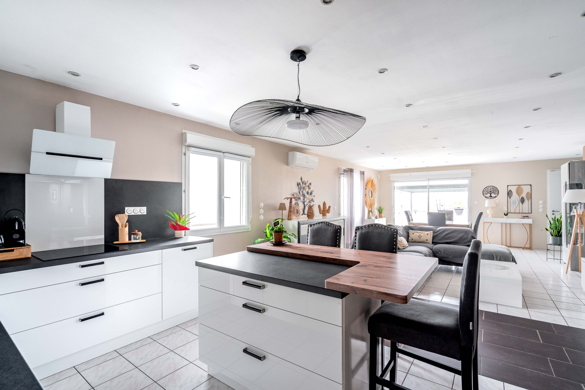 En entrant, vous decouvrirez la belle piece de vie avec sa cuisine ouverte toute equipee ouvrant sur les terrasses.