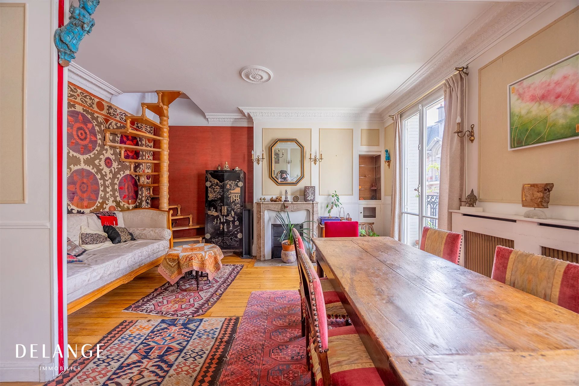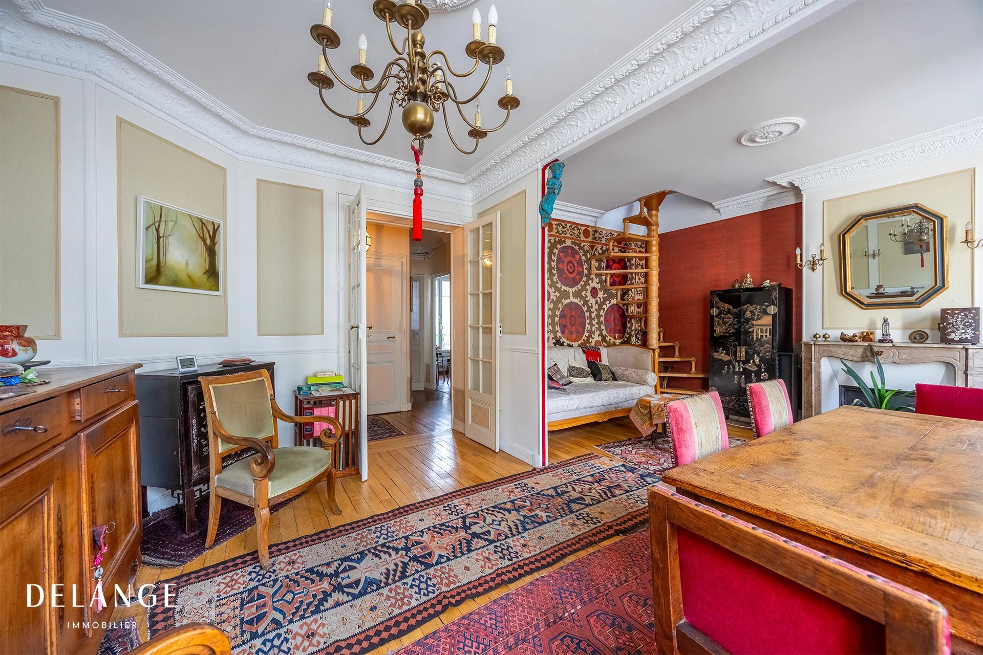 Idéalement situé rue de Reims à deux pas de l’église Jeanne d’Arc et du quartier Olympiades ligne 14 ce superbe duplex de caractère prend place aux 5ᵉ et 6ᵉ étages d’un élégant immeuble haussmannien en très bon état Cet appartement de 133,61m2 carrez parfaitement entretenu séduit par ses beaux volumes et sa configuration idéale pour une vie de famille avec deux espaces distincts offrant confort et intimité Il propose un vaste double séjour baigné de lumière cinq chambres une cuisine trois salles d’eau et deux WC indépendants. Ses huit pièces permettant de multiples aménagements tels que plusieurs bureaux ou salle de jeux. Environ 10 m² de balcons prolongent les espaces de vie. Le charme de l’ancien allié à une belle luminosité et à une distribution fluide sur deux niveaux en font un bien particulièrement attractif Appartement rare situé dans un quartier recherché à proximité immédiate des transports des commerces et des écoles Une cave complète ce bien et une place de parking est disponible en sus