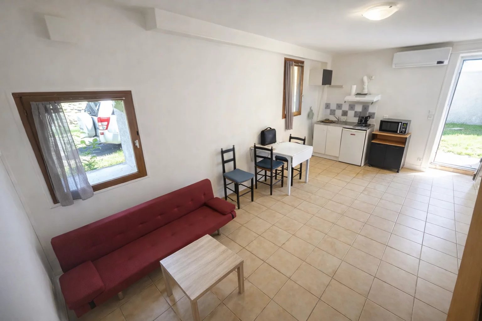 + Charges : 148€/mois (100€ d’électricité, 20€ d’eau, 8€ des ordures ménagères et 20€ de contrat de maintenant climatisation)