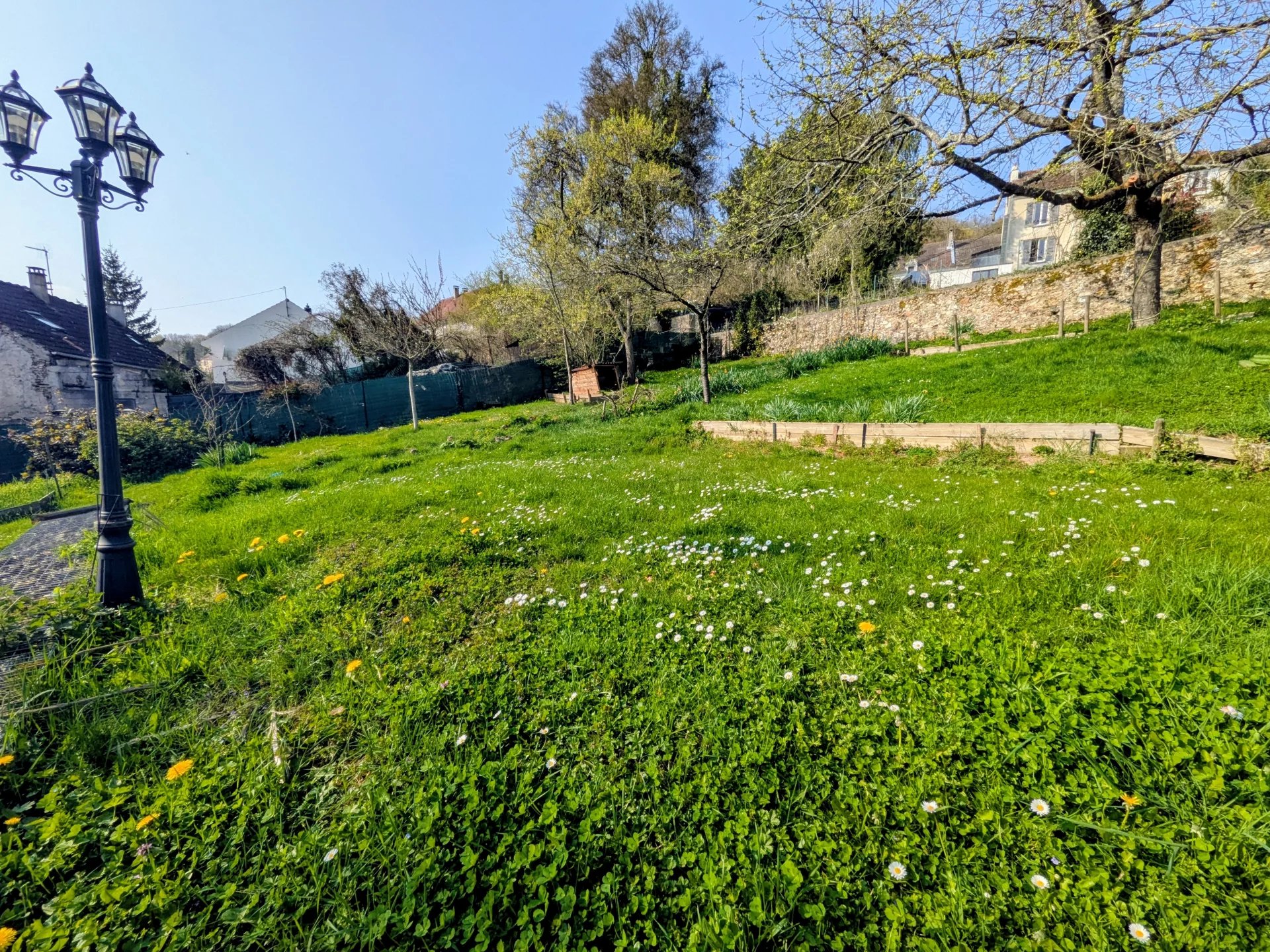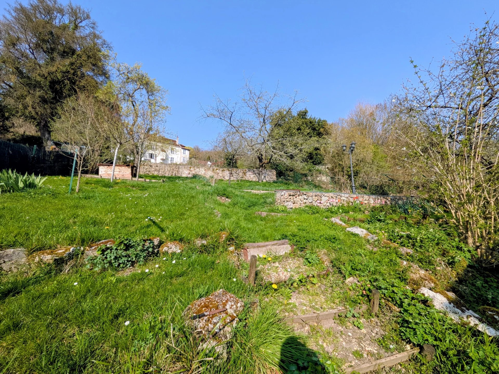 Une dépendance à usage de stockage, un jardin aménagé en terrasses ainsi que de quoi rentrer des véhicules sur la propriété.