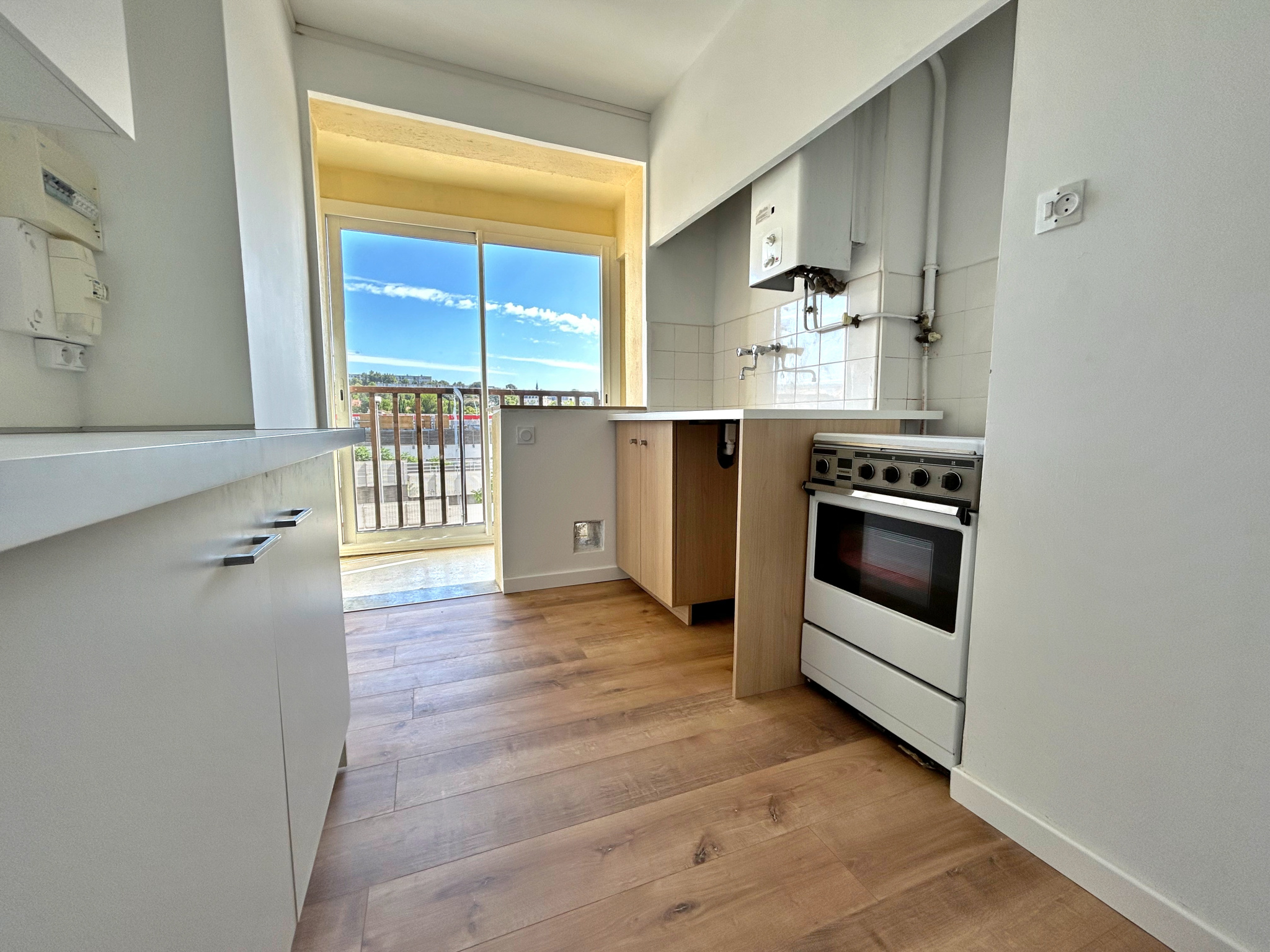 Il se compose d'un salon de 14,07m2 exposé Sud-Ouest avec cuisine séparée de 7.01m2 donnant accès à une loggia et un débarras.