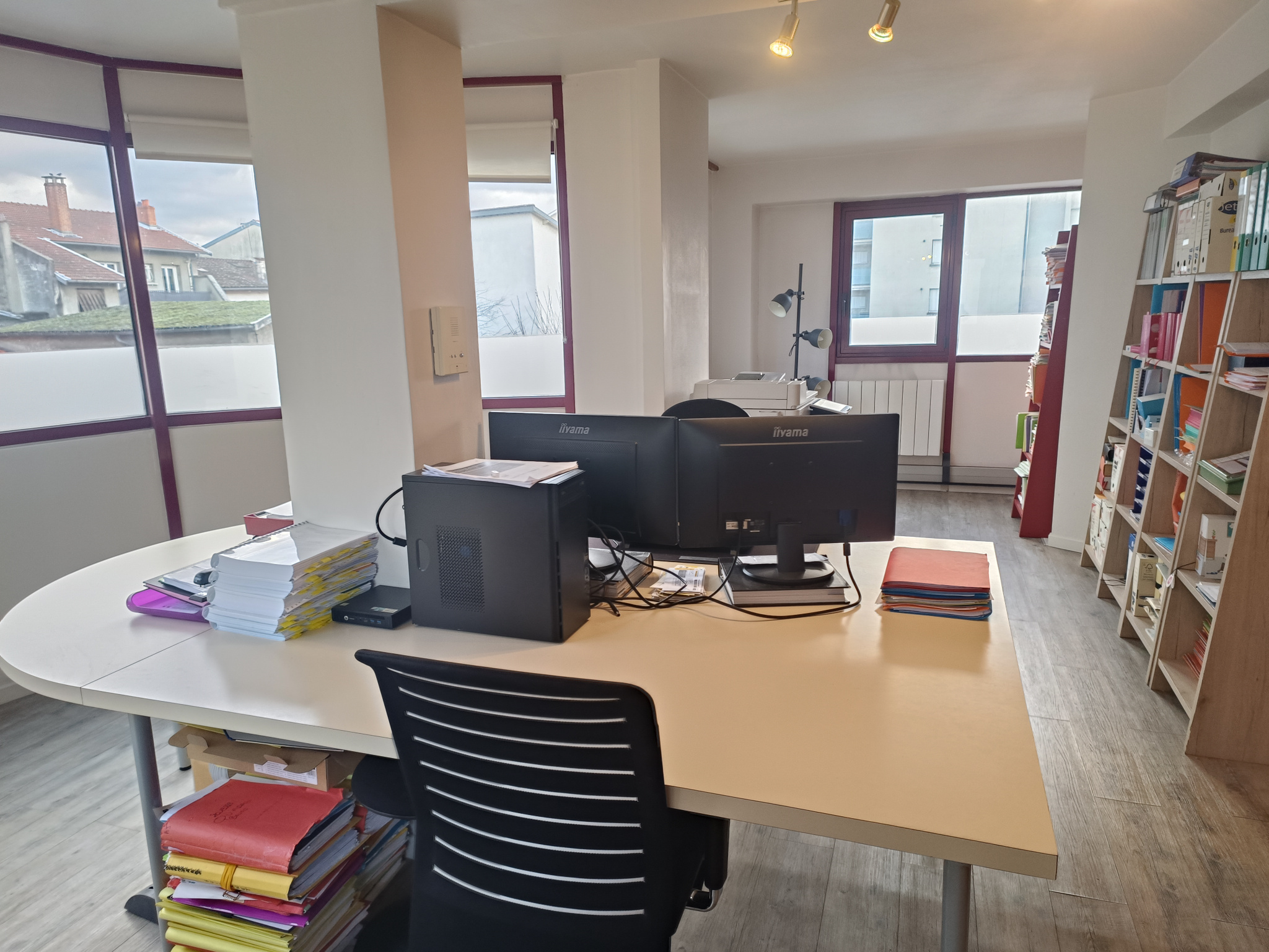 EXCLUSIVITE : LE PEAGE DE ROUSSILLON, dans résience sécurisée,bureaux professionnels 81m2, possibilité de réhabiliter en appartement, très bon état, au 1er étage avec ascenseur, 4 pièces, wc, cuisine,