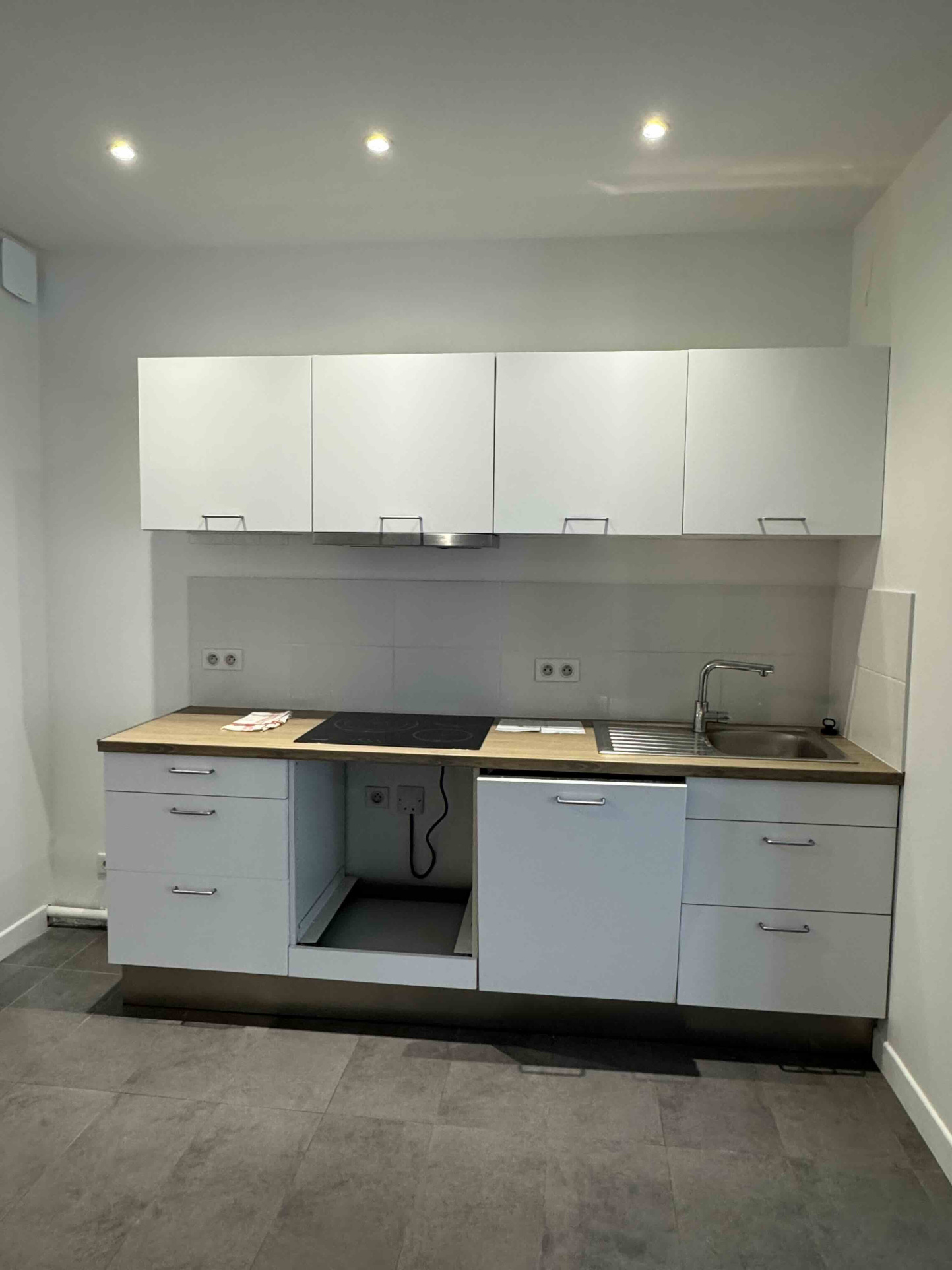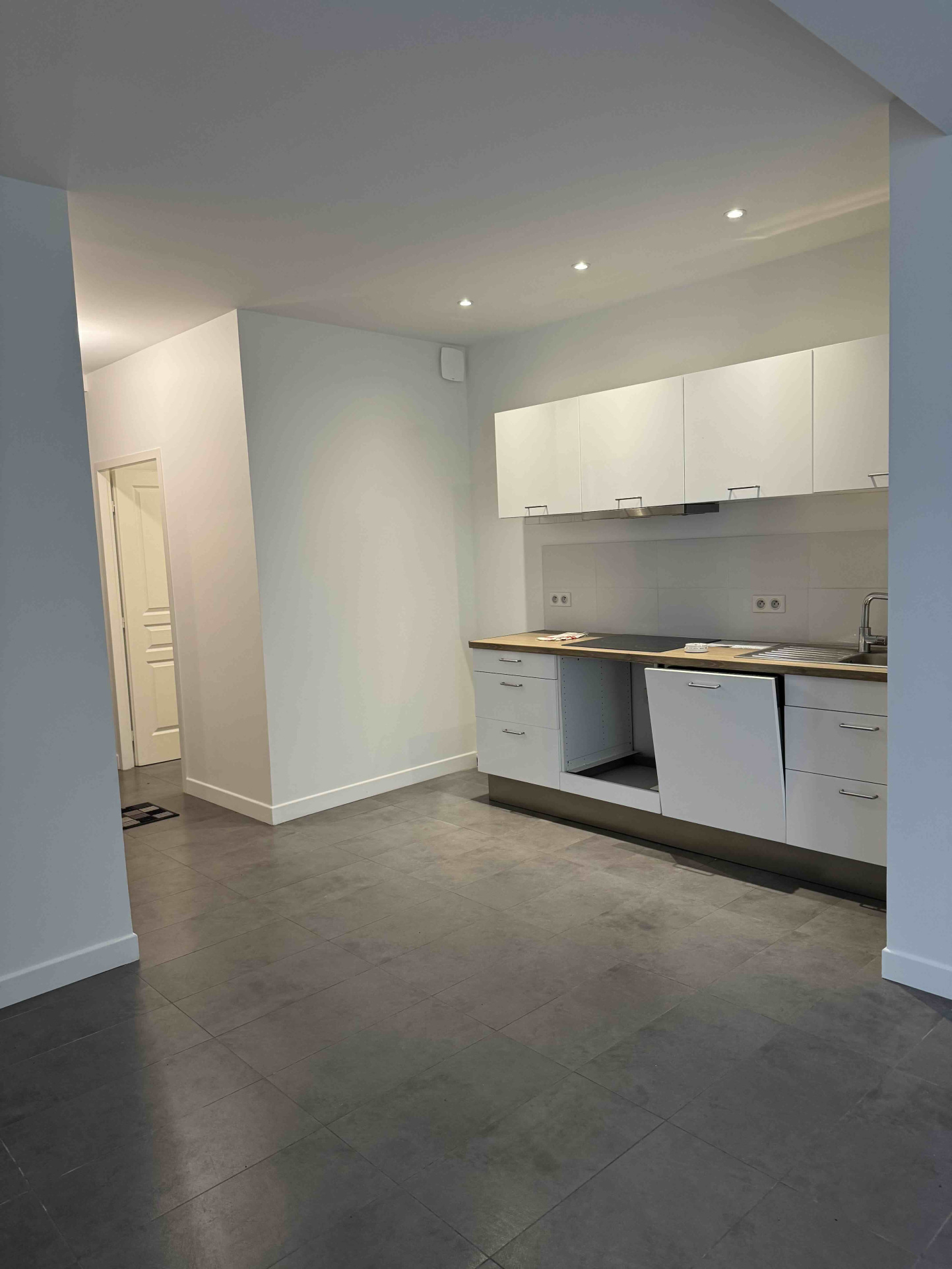 Ce bien en rez-de-chaussée, disponible actuellement à la location, est constitué d'une entrée, dun vaste salon/salle à manger, d'une cuisine ouverte meublée et partiellement équipée (hotte, plaque de cuisson), d'un cellier, d'une chambre et d'une salle d'eau avec WC.