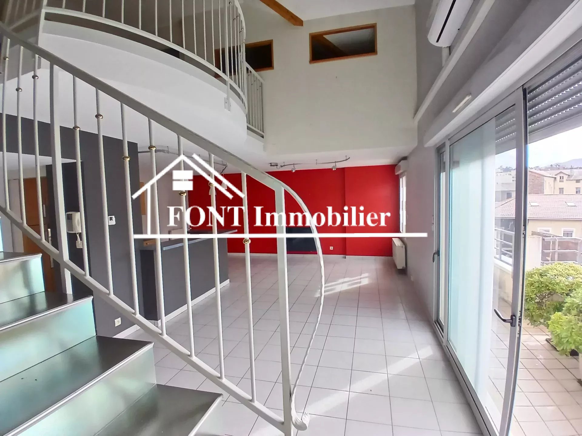 Saint-Chamond, centre ville, dans une COPROPRIÉTÉ RÉCENTE, SÉCURISÉE et BIEN ENTRETENUE, superbe appartement en duplex de 113 M² offrant au premier niveau une lumineuse pièce de vie donnant sur balcon avec cuisine équipée, une chambre, toilettes et salle de bains.