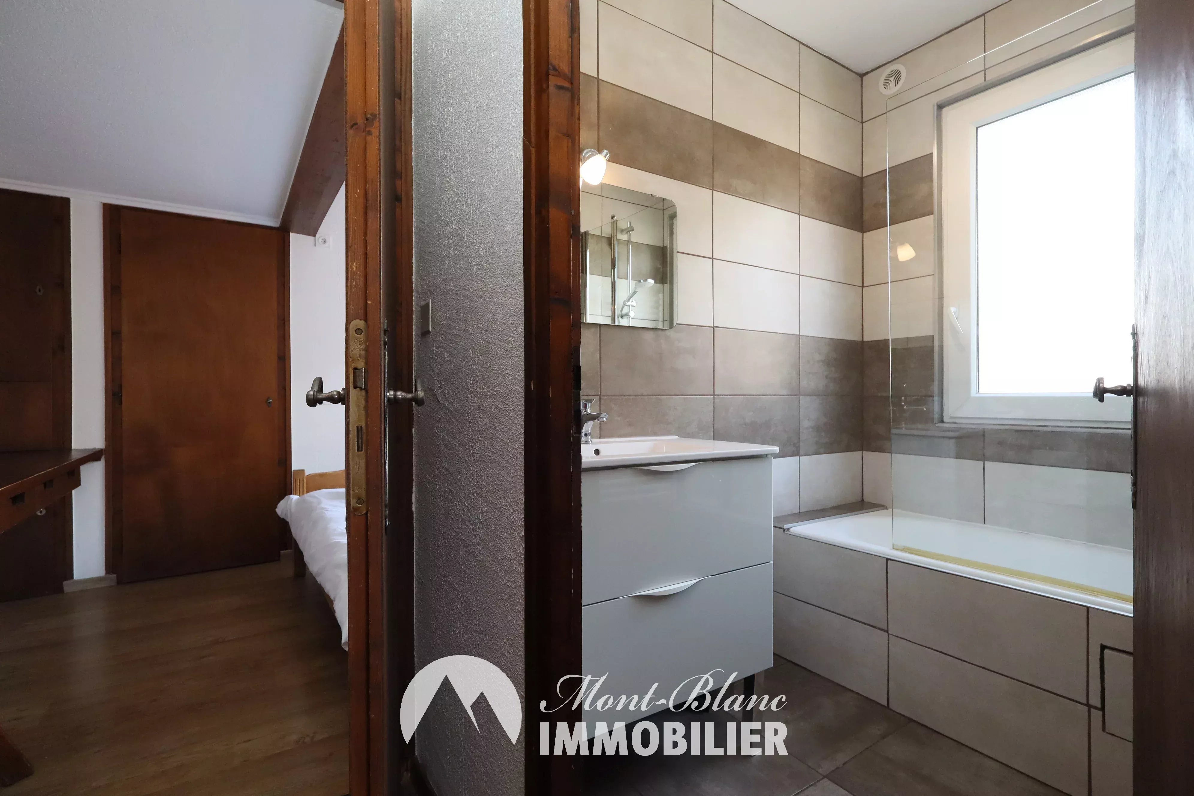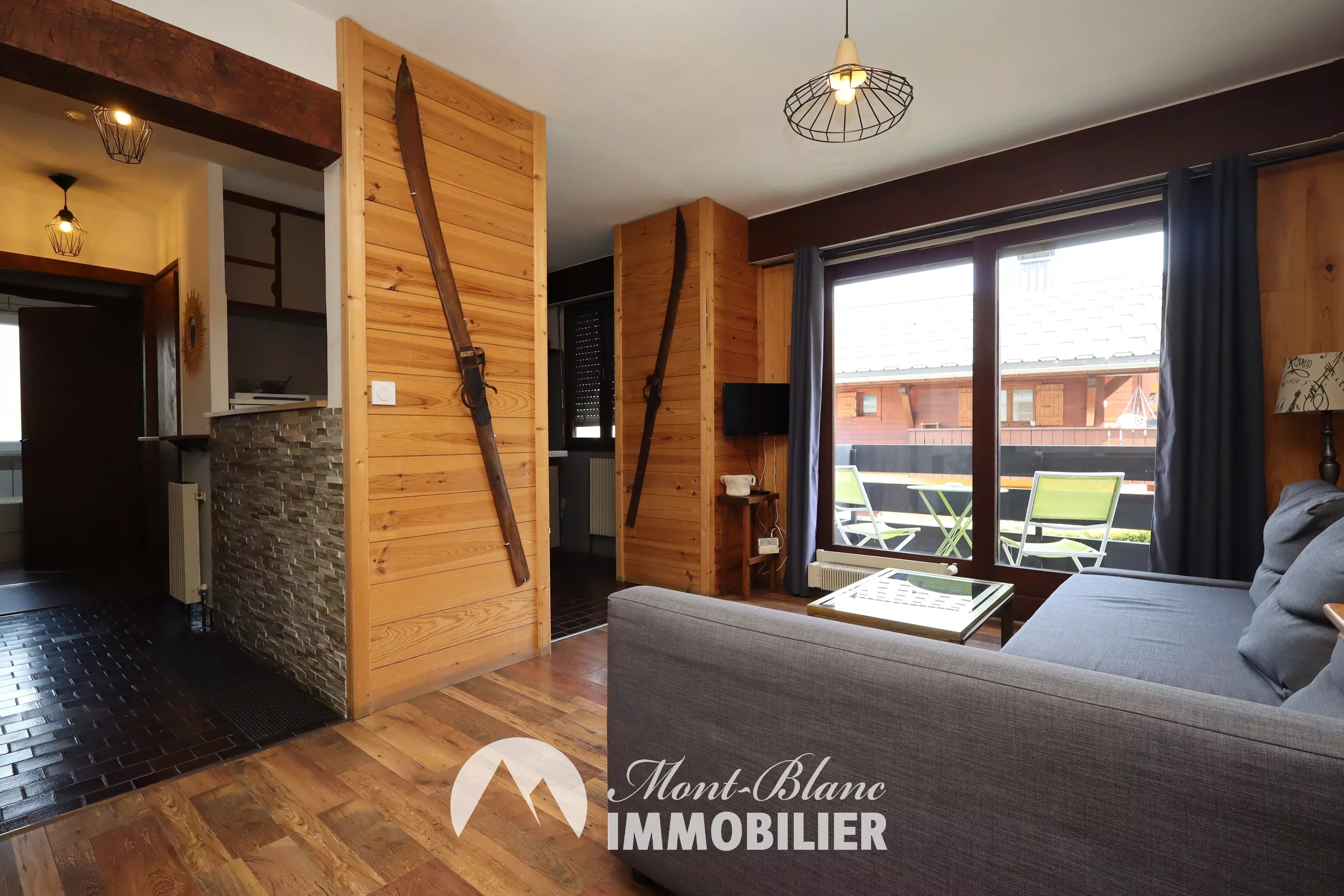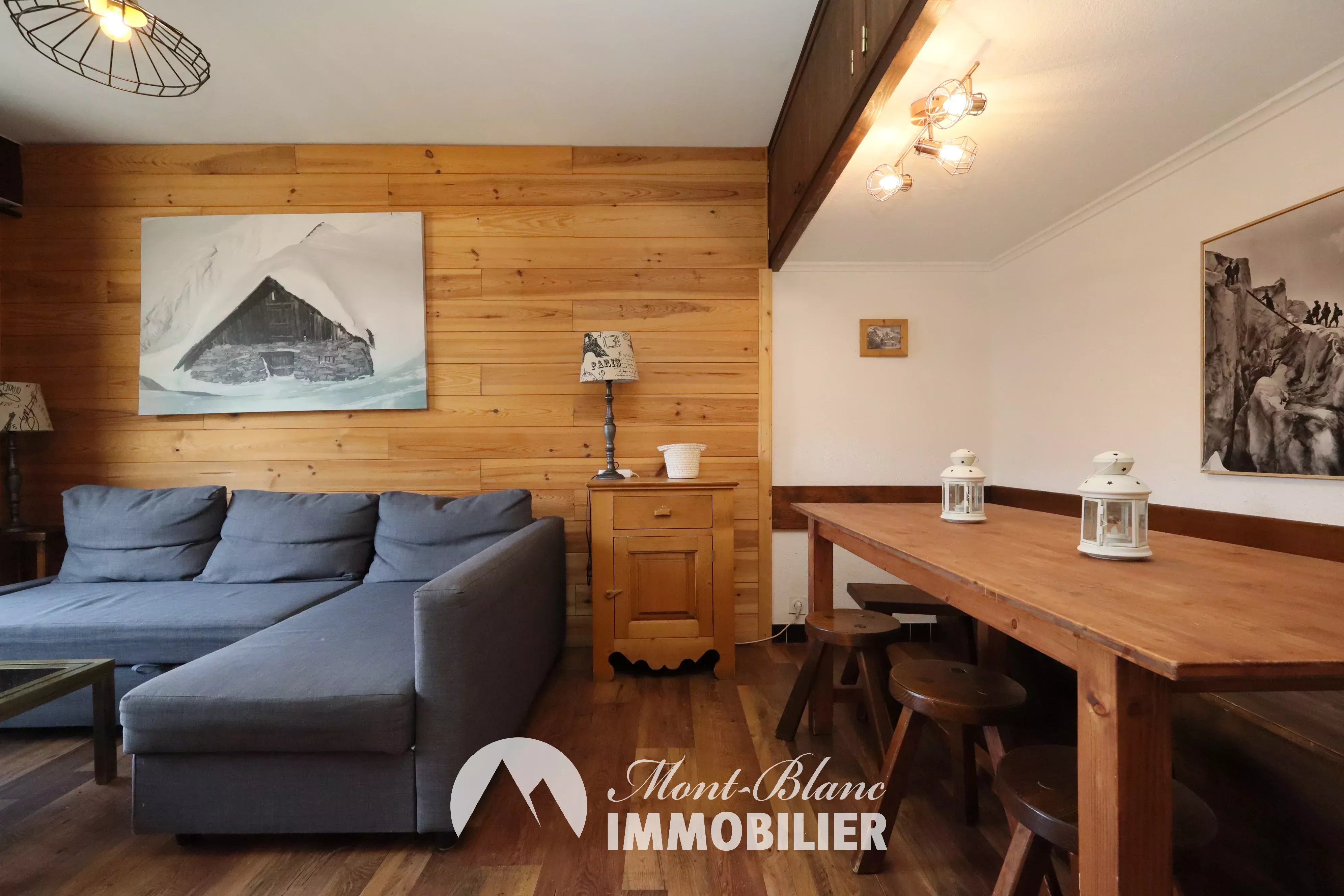 Les Houches: Appartement 3 pièces de 50 m², situé à deux pas du Téléphérique de Bellevue et du centre du village, ainsi composé: Un dégagement/couloir avec placard dessert une grande pièce de vie comprenant un séjour, une salle à manger et un coin cuisine semi-ouvert. Le séjour donne accès à un grand balcon orienté Est, offrant une belle vue sur l’Aiguille du Midi. Les deux chambres doubles disposent de placards intégrés et d’un balcon : l’un orienté Est avec vue sur les Aiguilles de Chamonix, l’autre sur l’Aiguillette des Houches. L'appartement est vendu avec un double garage de 33 m², une cave et un casier à skis pour un confort de stockage optimal au quotidien. A noter : L'eau froide, l'eau chaude et le chauffage sont inclus dans les charges. Jouissance du parking extérieur de la résidence.