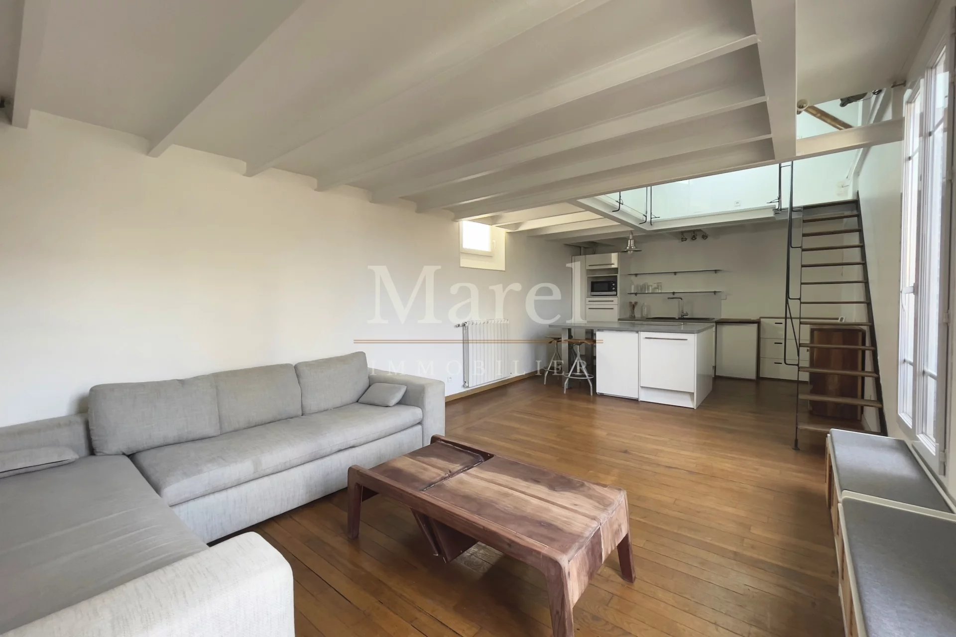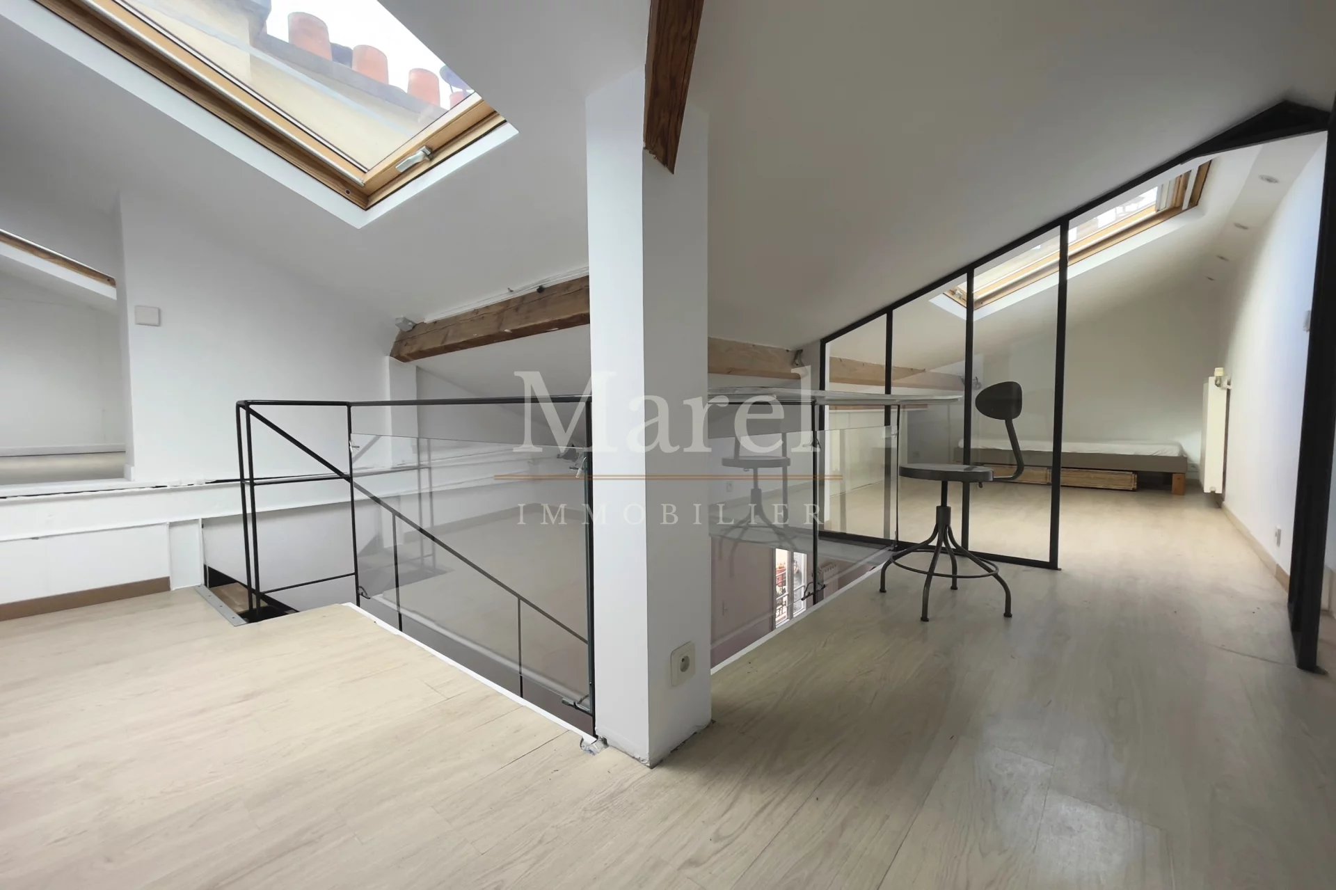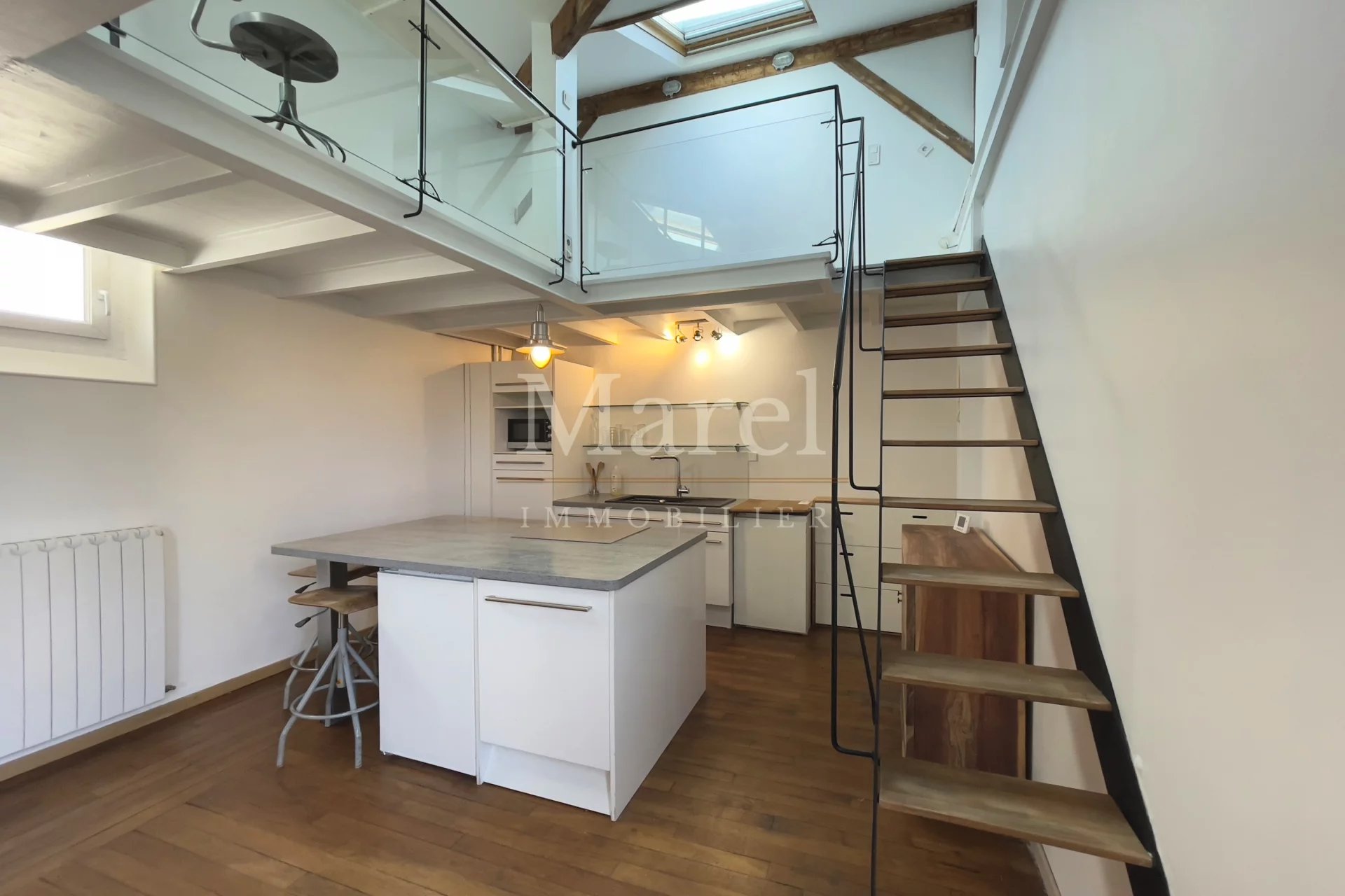 Exclusivité. Rue Godefroy. Au 5ème et dernier étage d’un immeuble des années 1930. Cet appartement en duplex est loué MEUBLÉ. Il comprend au 1er niveau un grand séjour avec cuisine ouverte, une chambre, une salle de douche et un WC séparé ; à l’étage une 2ème chambre et un bureau. Le chauffage et l'eau chaude sont individuels au gaz. Ce bien est disponible immédiatement. Dépôt de garantie : 2 mois de loyer hors charges pour une location meublée. Honoraires locataire pour une location en résidence principale : 15,13 €/m² (dont 12,10 €/m² pour la visite, la constitution du dossier et la rédaction du bail, et 3,03 €/m² pour l’état des lieux). Honoraires locataire pour une location en bail Code civil : 1 mois de loyer hors charges. Les informations sur les risques auxquels ce bien est exposé sont disponibles sur le site Géorisques www.georisques.gouv.fr