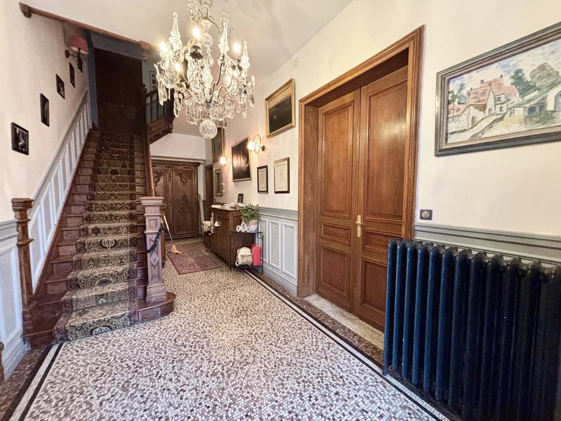 Sublime Demeure en Plein Cœur de Cambrai Découvrez cette propriété exceptionnelle située dans un écrin de verdure au centre de Cambrai, offrant un cadre de vie unique, où charme, raffinement et confort moderne se mêlent harmonieusement. Caractéristiques remarquables : • Terrain : environ 2400 m² soigneusement aménagé, comprenant un jardin luxuriant, une mare, un terrain de pétanque, un chalet et un espace de rangement pour bois. • Surface habitable : 380 m² d’élégance et de volumes généreux. • Toiture : Ardoise révisée en 2015, assurant une qualité irréprochable. Un intérieur alliant charme et modernité : • Rez-de-chaussée : • Entrée (13 m² et 10 m²), dotée de mosaïques et d’un escalier en bois d’époque. • WC avec lave-mains. • Bureau lumineux de 18 m², parfait pour le télétravail ou une bibliothèque privée. • Salle à manger spacieuse de 30 m², idéale pour recevoir vos convives. • Cuisine fonctionnelle de 15,8 m², alliant modernité et charme. • Deux salons élégants : • Un salon intime de 26 m² avec cheminée à foyer ouvert. • Un salon entièrement rénové en 2024 de 31 m², baigné de lumière et offrant une ambiance chaleureuse. • Étage : • 9 chambres spacieuses, dont une suite parentale de 25 m² et d’autres chambres lumineuses avec de beaux espaces et salle d'eau privative. • Un toit-terrasse de 35 m² avec vue panoramique sur le domaine. • Un grenier aménageable pour donner vie à vos projets. • Puits de lumière offrant une luminosité naturelle exceptionnelle. Prestations haut de gamme : • Chauffage au gaz de ville et fioul avec une citerne de 5000L. • Fenêtres double vitrage changées en 2020 pour un confort thermique optimal. • Système de traitement d’eau. Extérieurs soignés et prestations rares : • Garage principal pouvant accueillir 3 voitures. • Garage supplémentaire de 70 m² pour 2 véhicules. • Terrain aménagé avec soin : terrain de pétanque, mare, chalet et espaces de détente. Une propriété exceptionnelle clé en main. Unique sur Cambrai. Pour découvrir cette perle rare, contactez Geoffroy Beauloye Eleven immobilier 06x84x75x35x64 Demeure unique, située dans un emplacement privilégié. Laissez-vous séduire par le charme de cette maison d’exception !