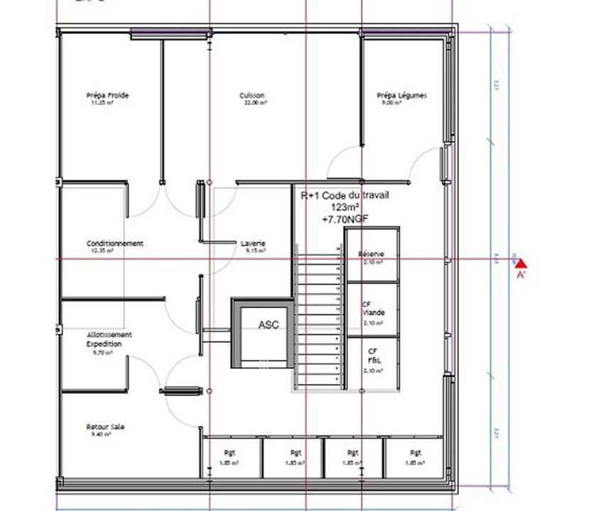 R+1 : laboratoire et chambres froides, accessibles par ascenseur et escalier