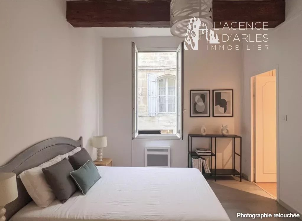 Situé au premier étage d'un immeuble de caractère, au calme dans le centre historique d'Arles, cet appartement de 51 m² séduit par ses volumes généreux et sa luminosité. Il se compose d'une grande pièce de vie d'environ 30 m², ouvrant sur une terrasse privative, rare en cœur de ville. Il comprend également une chambre de belle proportion, un espace cuisine, salle d'eau et wc séparé. Quelques travaux de rafraîchissement peuvent être envisagés. Ce logement se prête aussi bien à un usage de pied-à-terre qu'à une résidence principale, et conviendra parfaitement à un couple. Il offre également un bon potentiel locatif, en location à l'année comme en saisonnier. Exclusivité – L’Agence d’Arles Copropriété en cours de création – 10 lots, dont 7 à usage d'habitation.