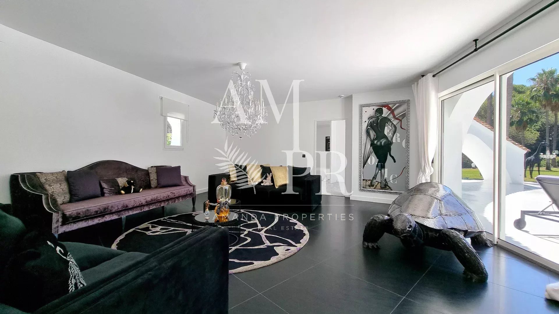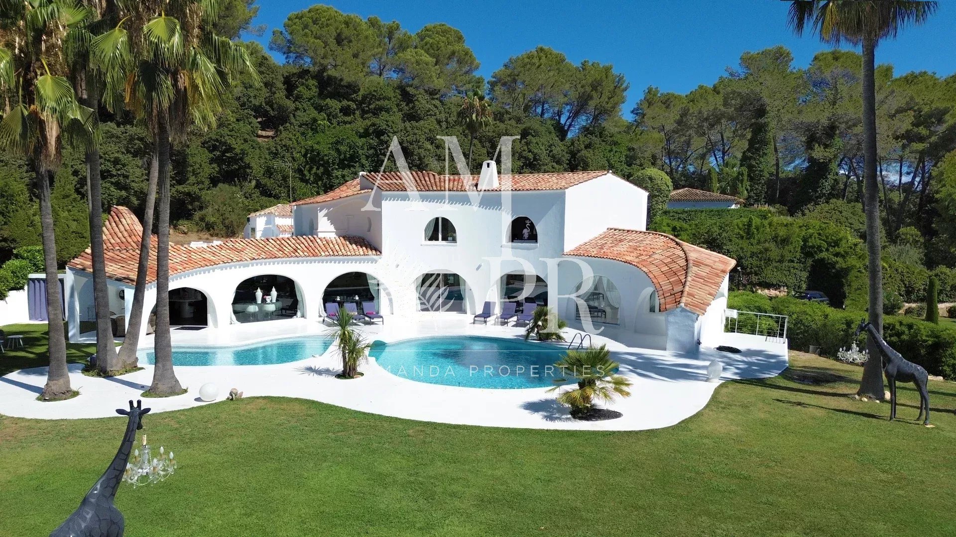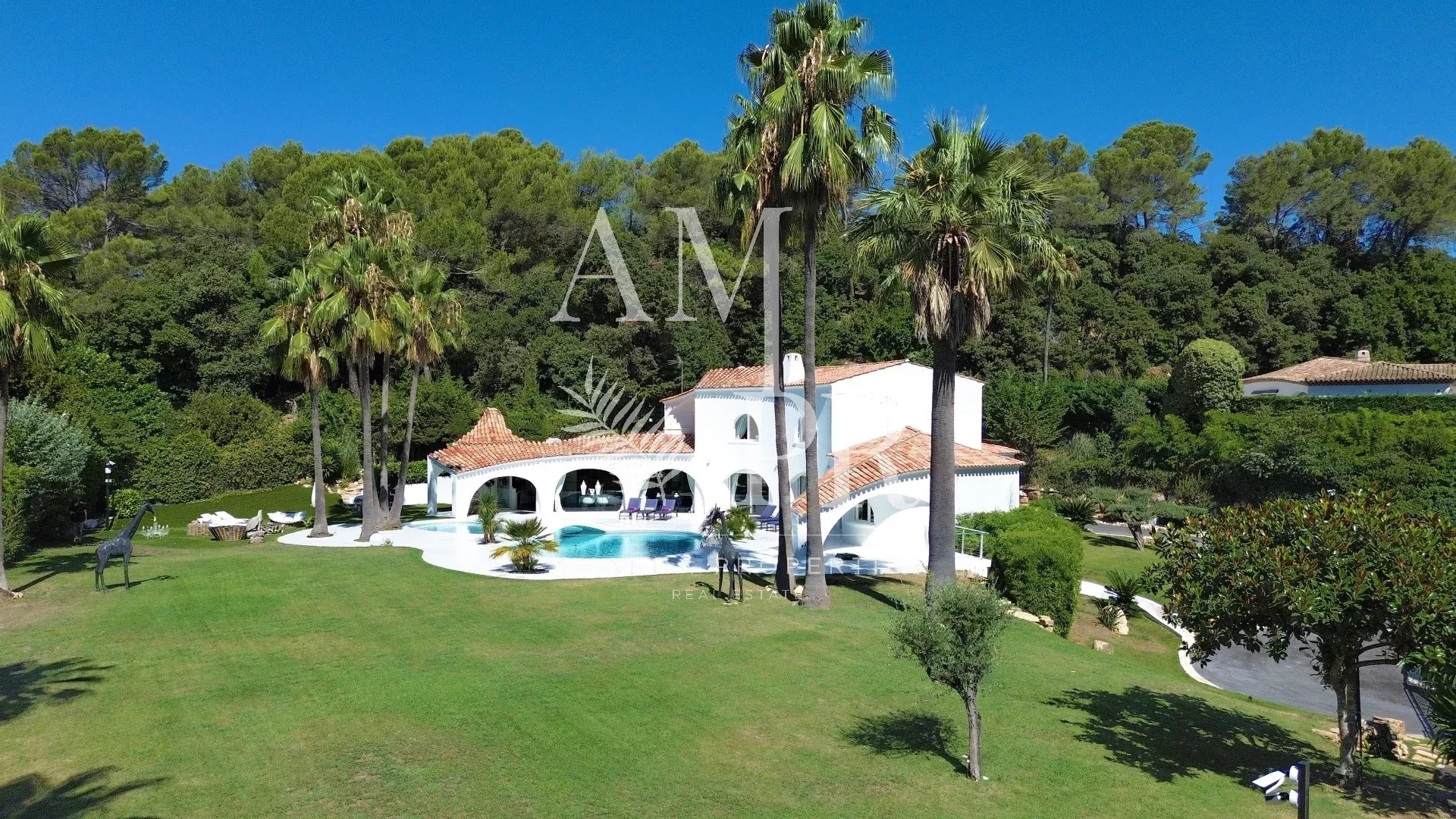 Au sein d’un des domaines les plus prestigieux et sécurisés de Mougins gardienné 24/24, cette villa signée Jacques Couelle, entièrement rénovée en 2025, incarne l’art de vivre sur la Côte d’Azur : un lieu rare, alliant architecture sculpturale, nature luxuriante et prestations haut de gamme. Exposée plein sud, sans vis-à-vis, la propriété s’étend sur un parc paysagé plat de 3 280 m², agrémenté d’essences rares et d’une spectaculaire piscine aux lignes organiques, typique du style Couelle. La villa principale développe environ 500 m² habitables, avec : Un séjour lumineux de 240 m², Une cuisine ouverte haut de gamme, 5 chambres en suite, Un bureau, Une salle de cinéma et un sauna. Une maison de gardien indépendante avec cuisine et salle d’eau offre une 6e chambre, idéale pour le personnel ou les invités. Équipements de qualité : chauffage pompe à chaleur sole et mural, domotique, alarme dernière génération, garage, local technique. Emplacement privilégié : à seulement 12 minutes de Cannes et de la Croisette, 4 minutes du Golf Country Club, 5 minutes de la célèbre école Internationale " Mougins School", et à proximité immédiate du village historique. Un bien rare et emblématique, à découvrir sans attendre.