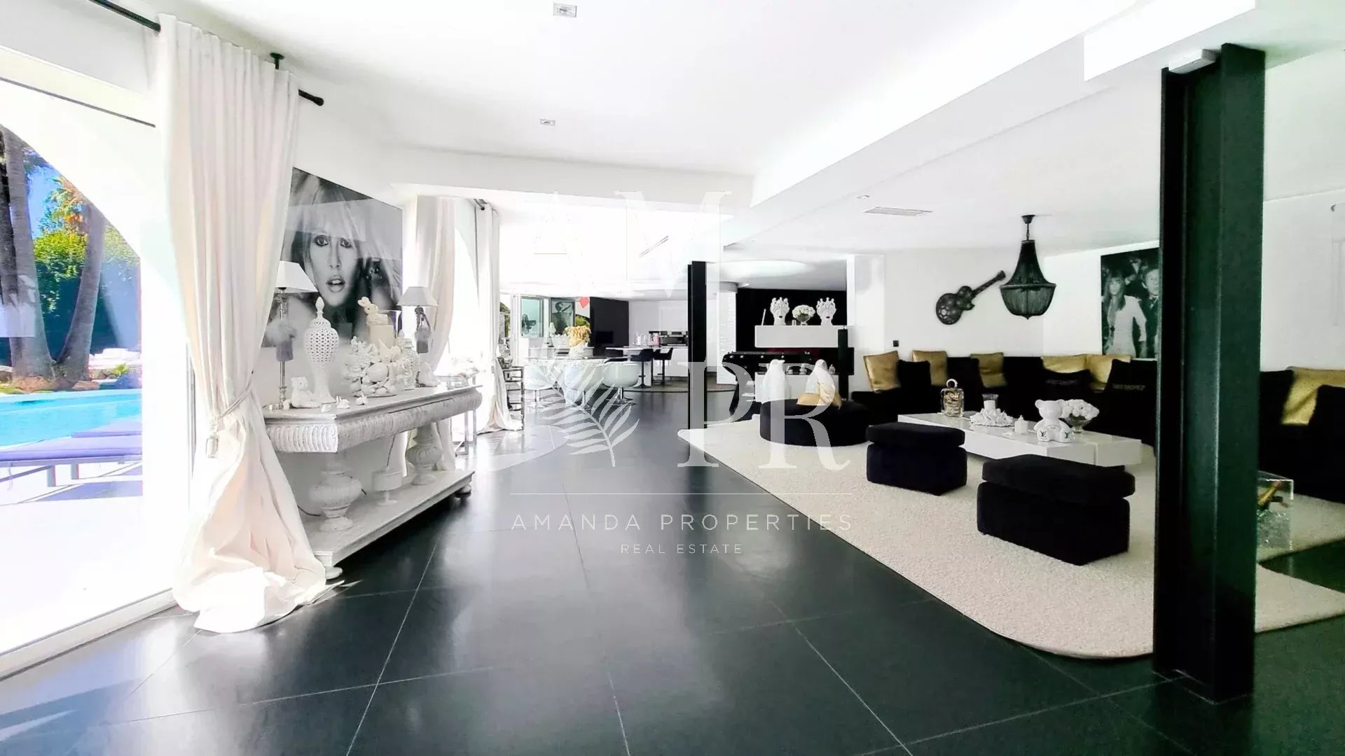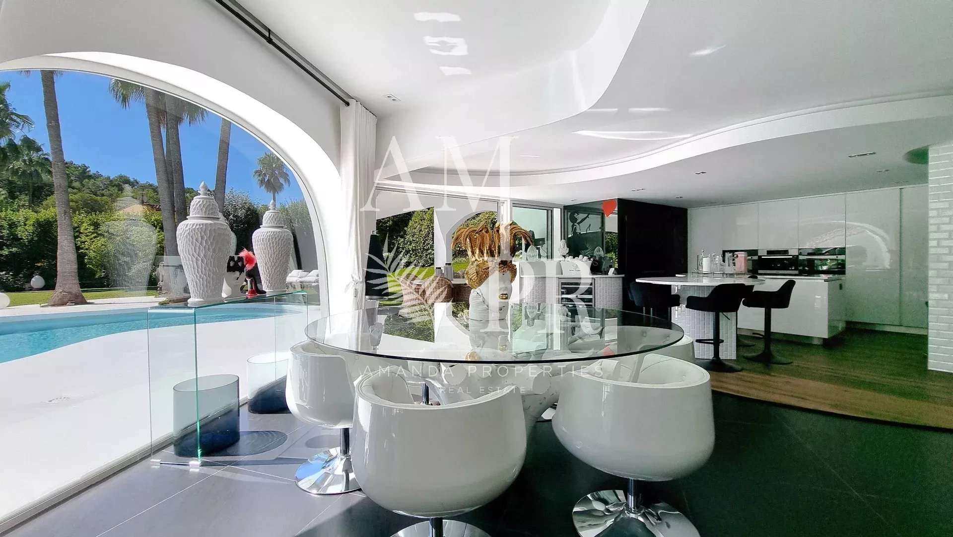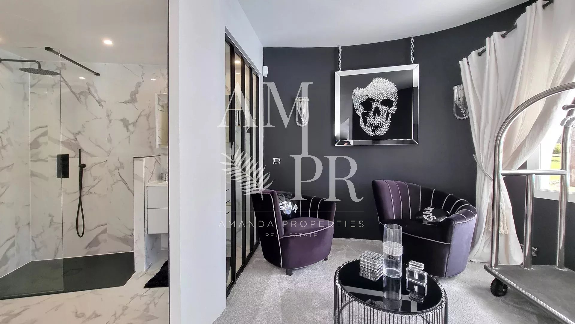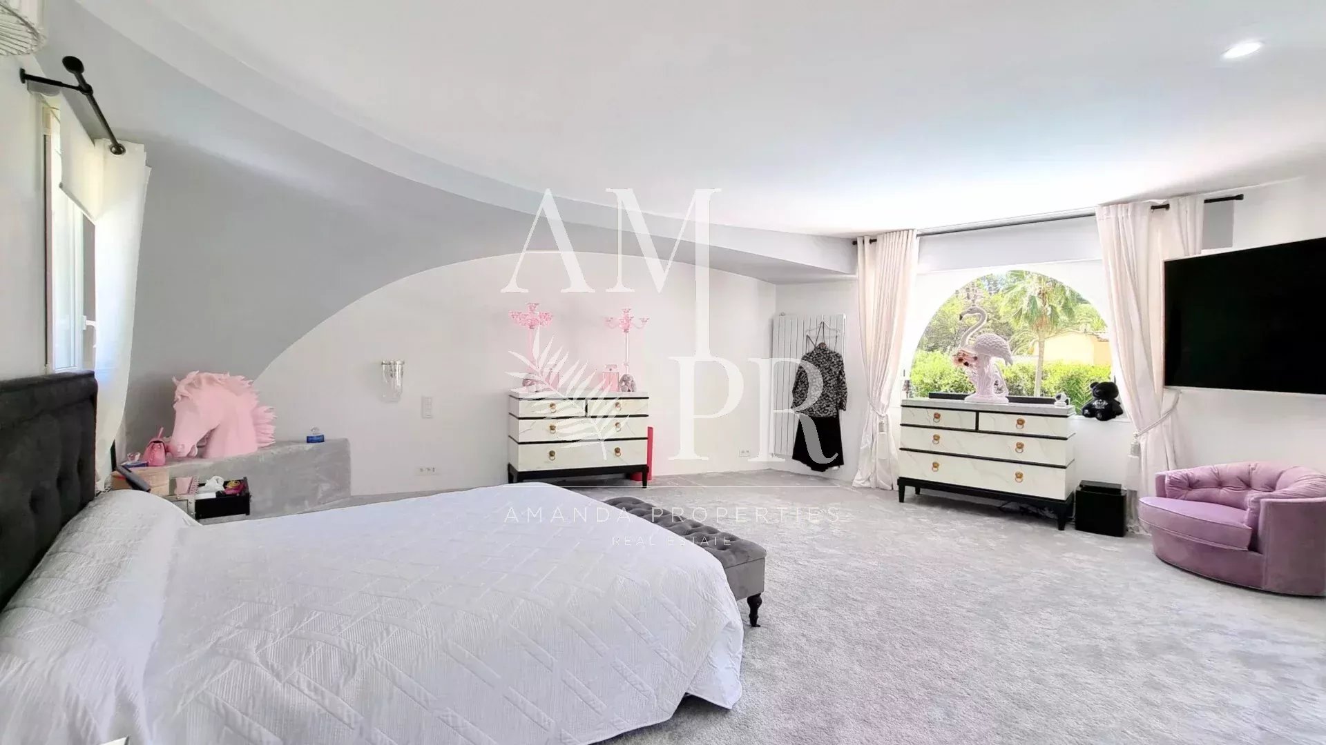Au sein d’un des domaines les plus prestigieux et sécurisés de Mougins gardienné 24/24, cette villa signée Jacques Couelle, entièrement rénovée en 2025, incarne l’art de vivre sur la Côte d’Azur : un lieu rare, alliant architecture sculpturale, nature luxuriante et prestations haut de gamme. Exposée plein sud, sans vis-à-vis, la propriété s’étend sur un parc paysagé plat de 3 280 m², agrémenté d’essences rares et d’une spectaculaire piscine aux lignes organiques, typique du style Couelle. La villa principale développe environ 500 m² habitables, avec : Un séjour lumineux de 240 m², Une cuisine ouverte haut de gamme, 5 chambres en suite, Un bureau, Une salle de cinéma et un sauna. Une maison de gardien indépendante avec cuisine et salle d’eau offre une 6e chambre, idéale pour le personnel ou les invités. Équipements de qualité : chauffage pompe à chaleur sole et mural, domotique, alarme dernière génération, garage, local technique. Emplacement privilégié : à seulement 12 minutes de Cannes et de la Croisette, 4 minutes du Golf Country Club, 5 minutes de la célèbre école Internationale " Mougins School", et à proximité immédiate du village historique. Un bien rare et emblématique, à découvrir sans attendre.