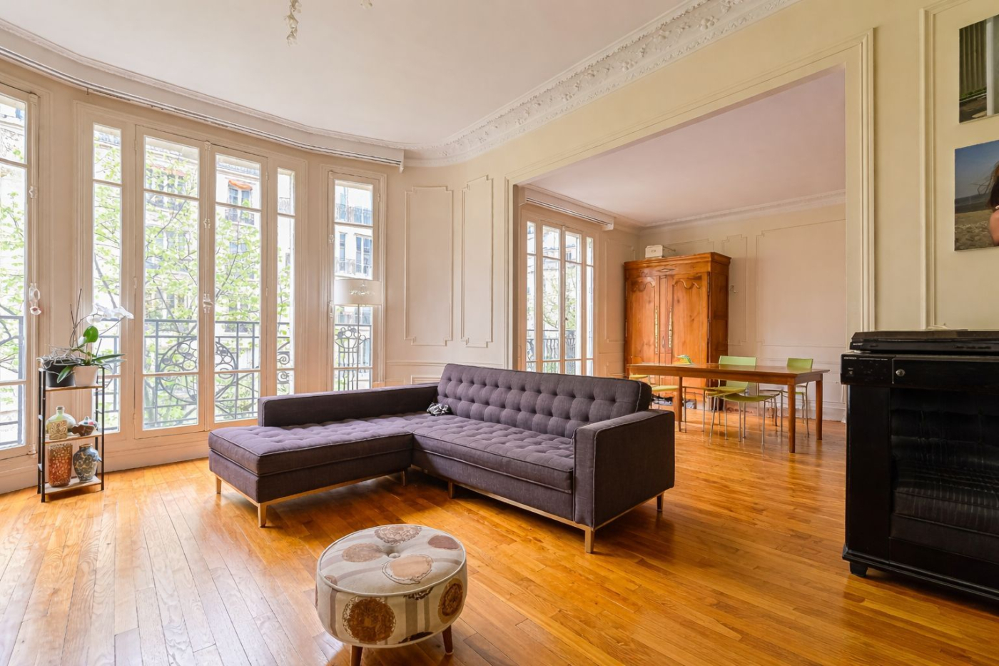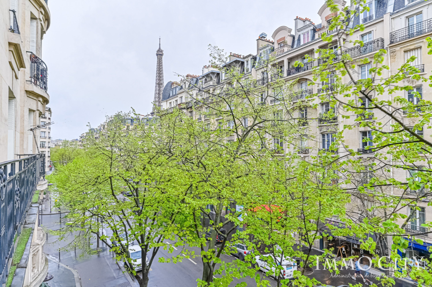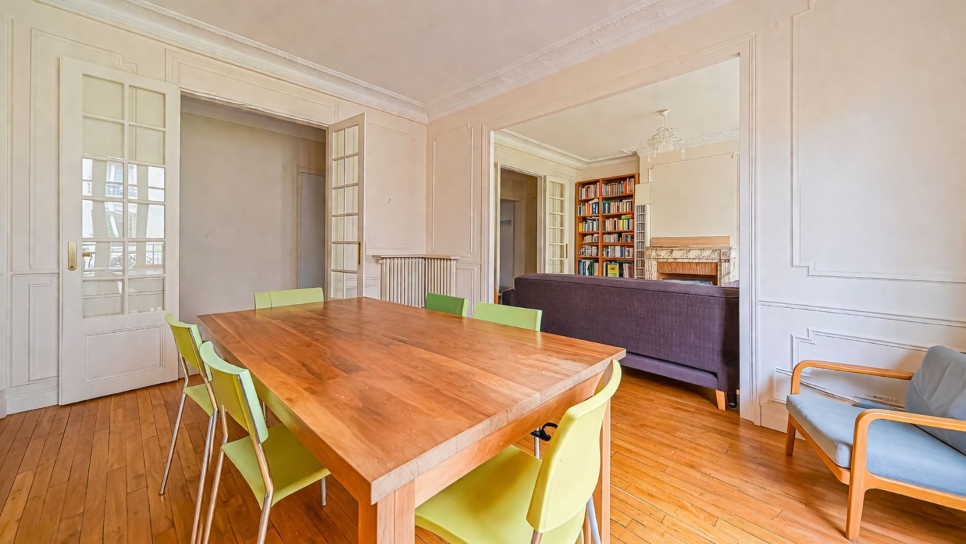 Une belle entrée galerie nous mène à un spacieux double séjour de 36m² avec salle à manger, balcon sur rue et vue Tour Eiffel !
