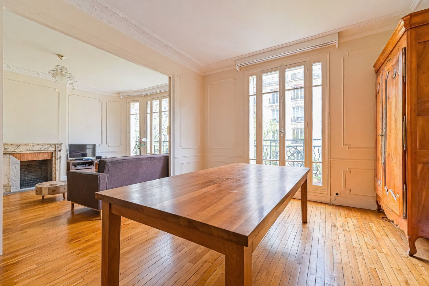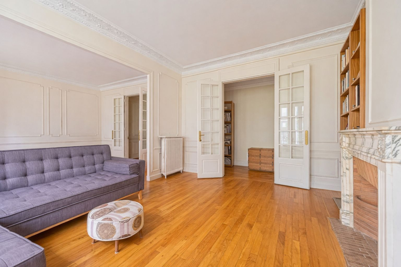 - Parquet, moulures, cheminée.