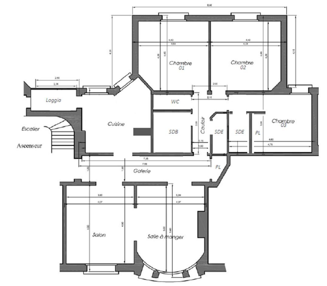 Il se situe au 3ème étage avec ascenseur et se compose ainsi: