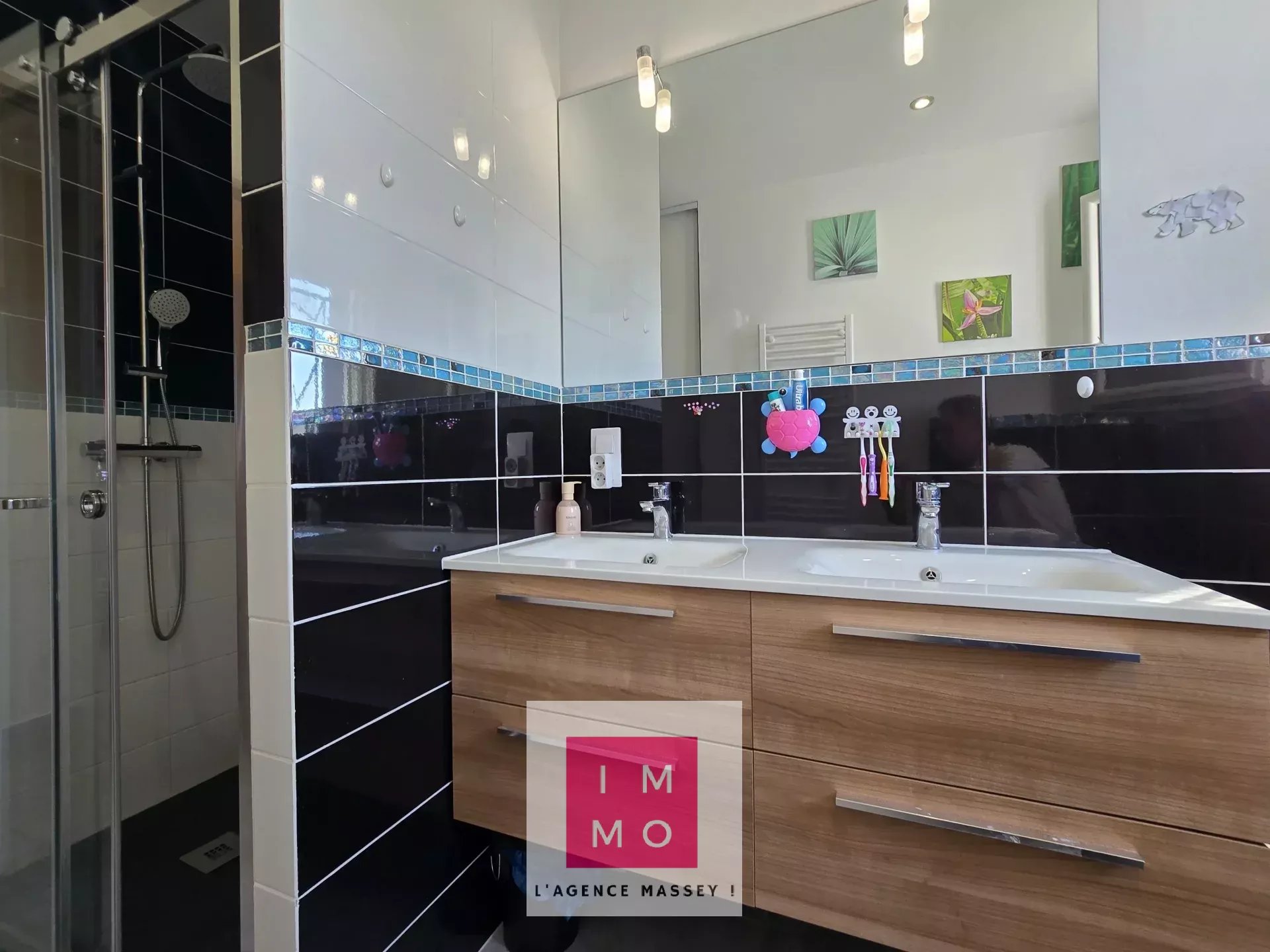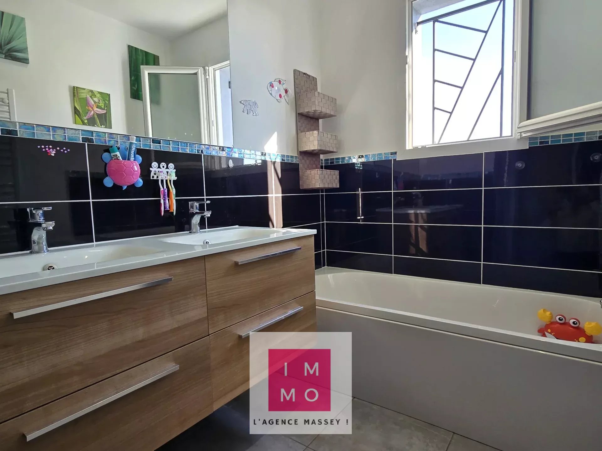 L'espace de nuit est bien séparé : vous aurez 4 chambres confortables avec placards, une salle de bain avec baignoire, douche à l'italienne et double vasque. Les toilettes sont séparées (fenêtre également).
