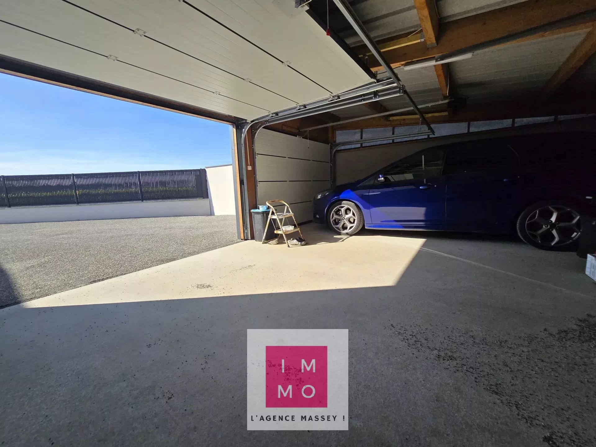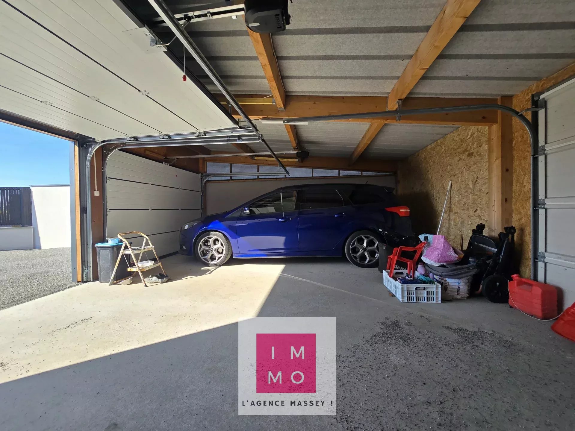 Le double garage est spacieux et équipé de deux portes sectionnelle motorisées. Une troisième porte basculante vous permettra d'accéder avec un véhicule à l'arrière de ce garage et à un abris couvert et fermé sur 3 côtés.