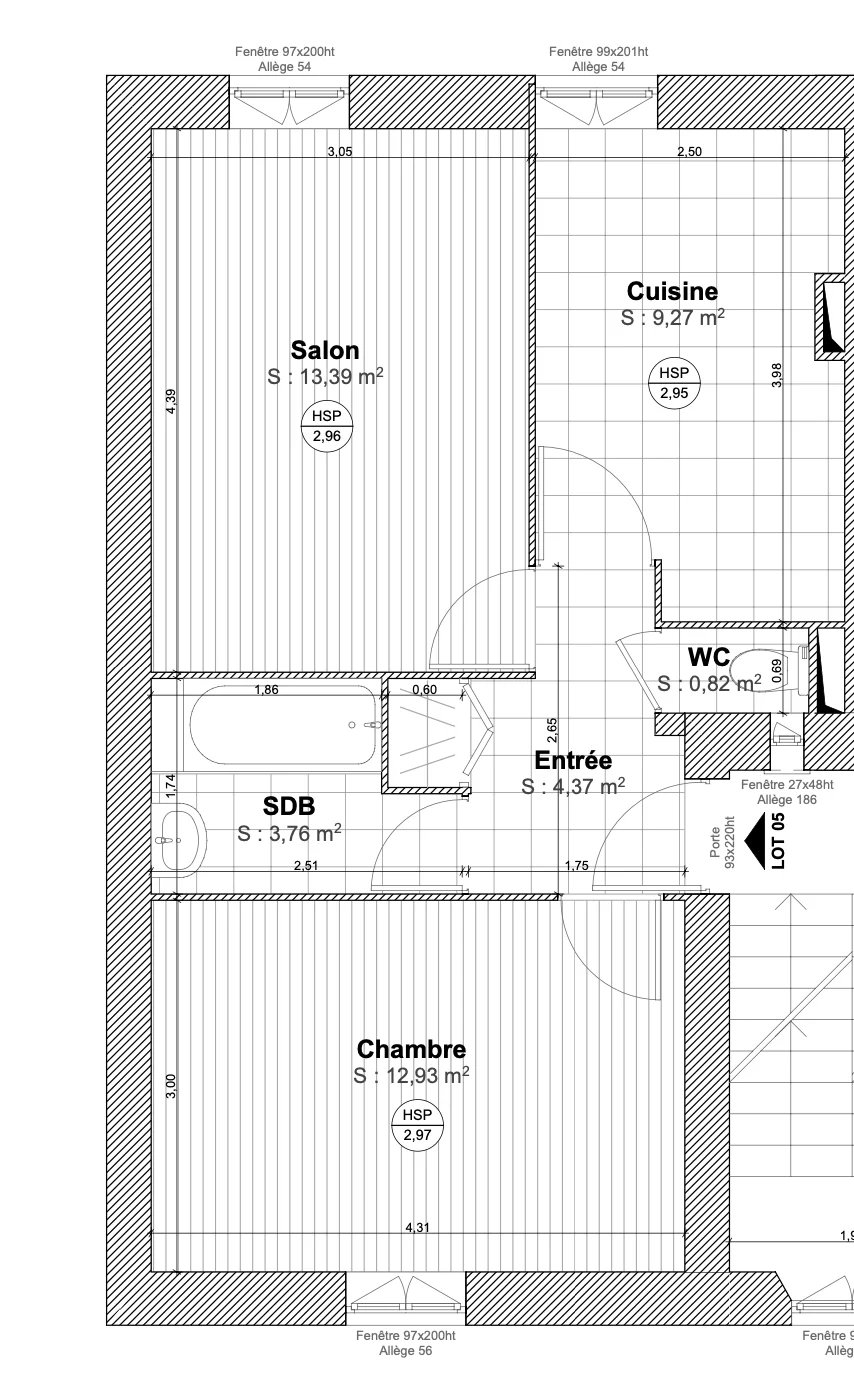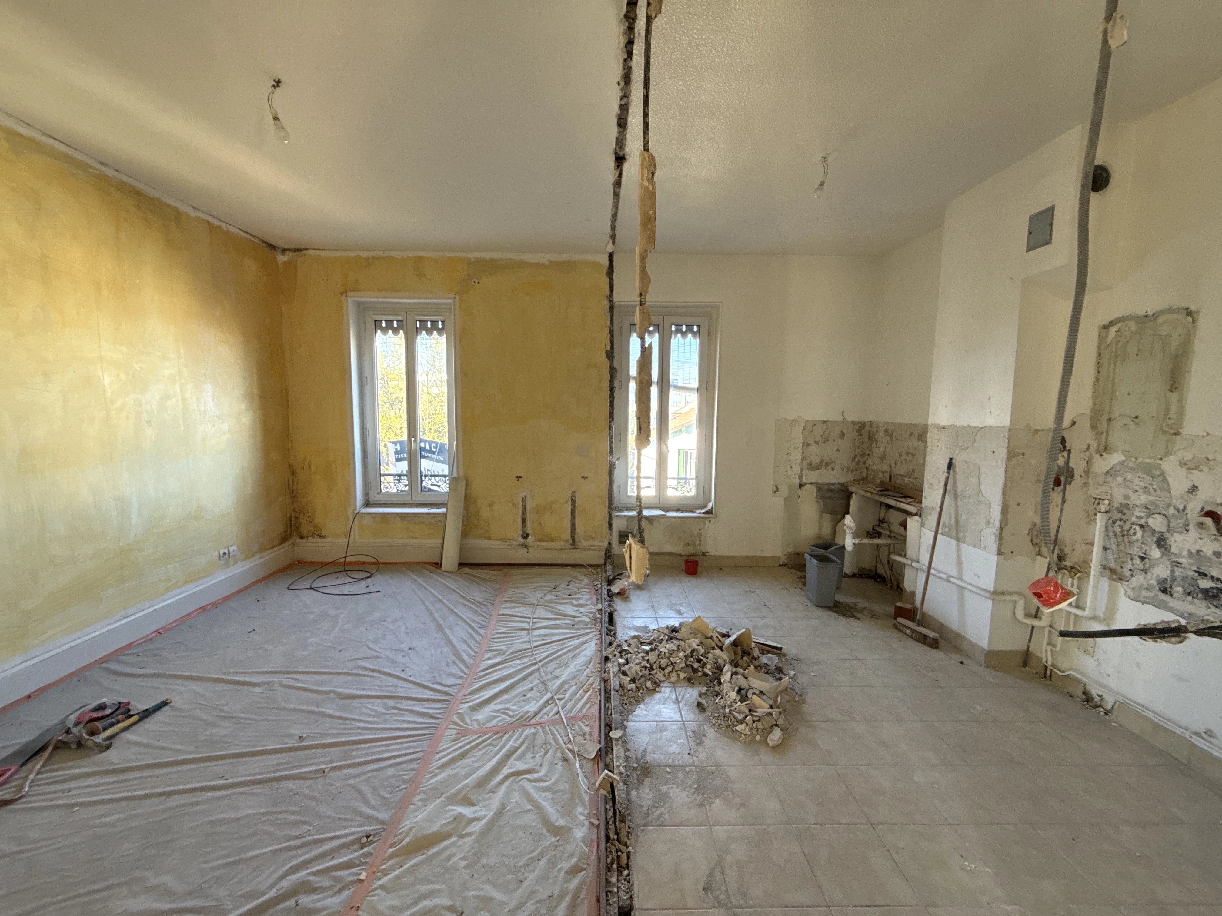 Situé au 2ème étage d'un petit immeuble de 2 étage, ce T2 de 44,52m² est en cours de travaux, il restera la cuisine à installer.