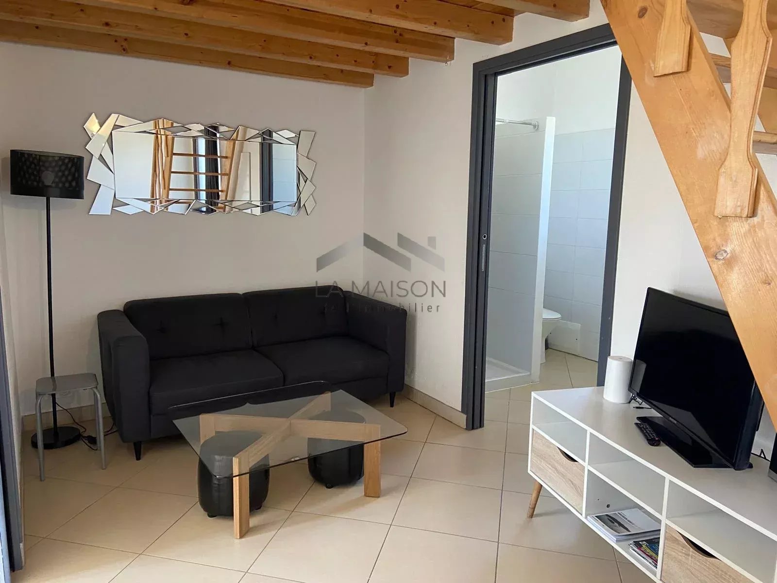 Appartement de type 2 situé au 1er étage d’une petite copropriété, accessible par un escalier extérieur sous lequel un local a été aménagé. Ce logement comprend une salle à manger avec cuisine équipée de 17,49 m², un espace salon de 6,30 m² depuis lequel un escalier en bois mène à une mezzanine de 5,95 m² pouvant servir d’espace nuit sous pente, une chambre indépendante de 9,19 m² et une salle d’eau avec WC de 4,59 m². Une place de stationnement est incluse avec ce logement. Ce bien est idéalement situé, proche du centre-ville, des commerces, des services et de la mer. Idéal pour une première acquisition en résidence principale, secondaire ou pour un investissement locatif.