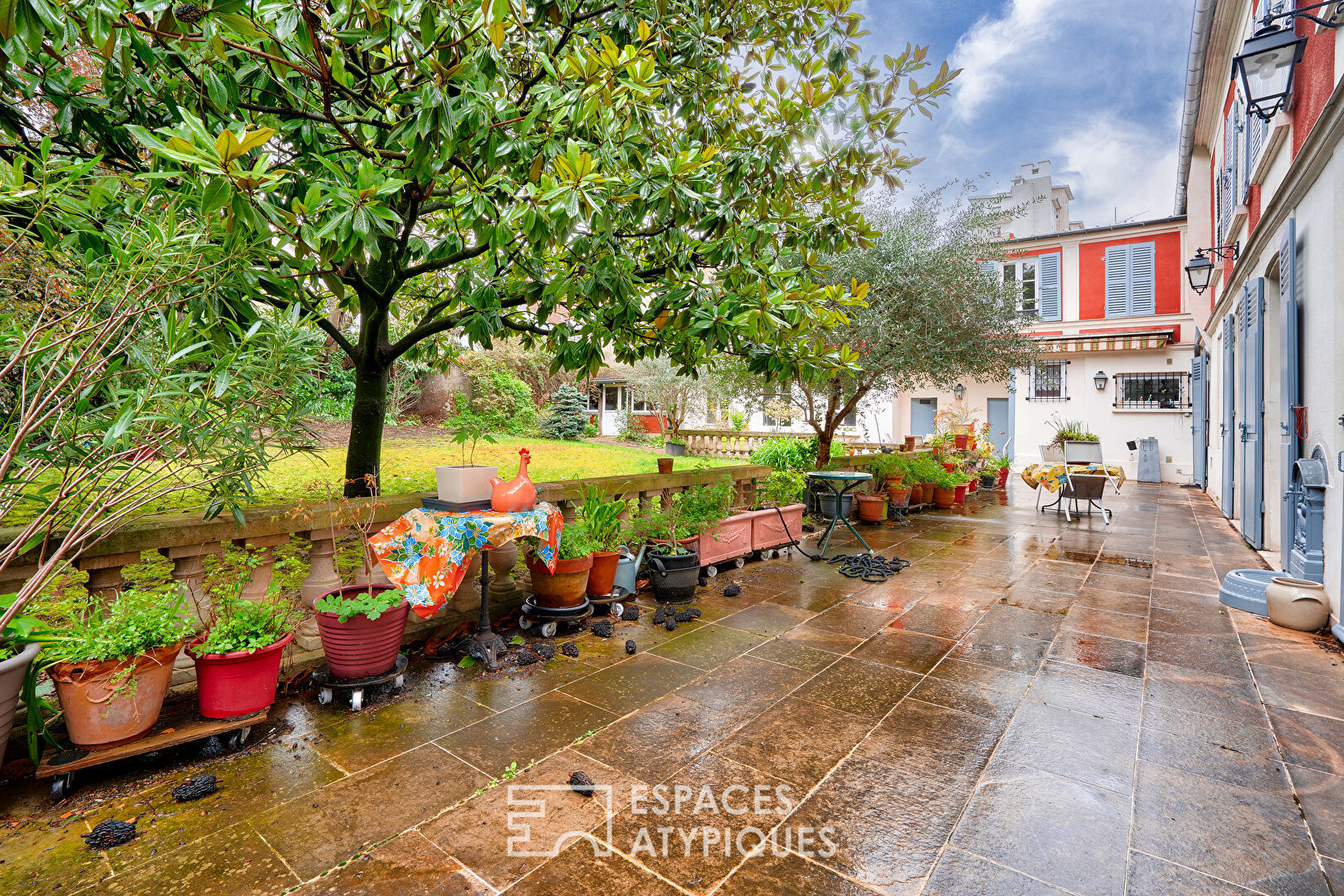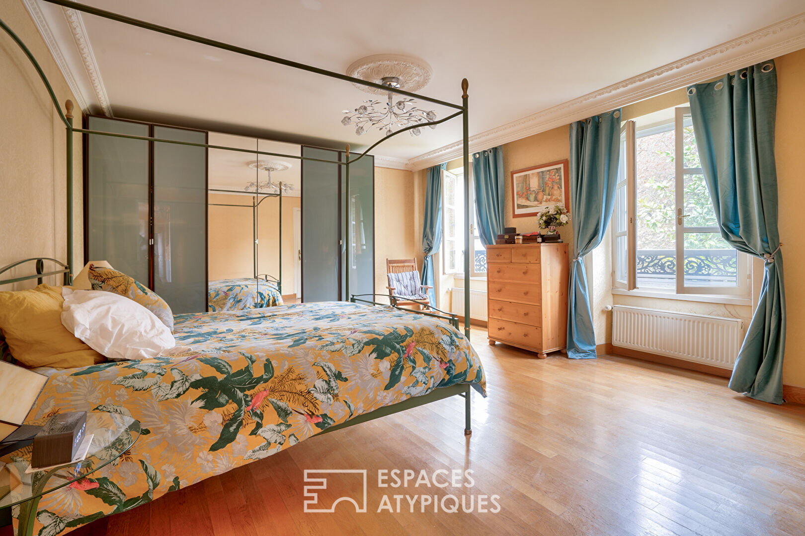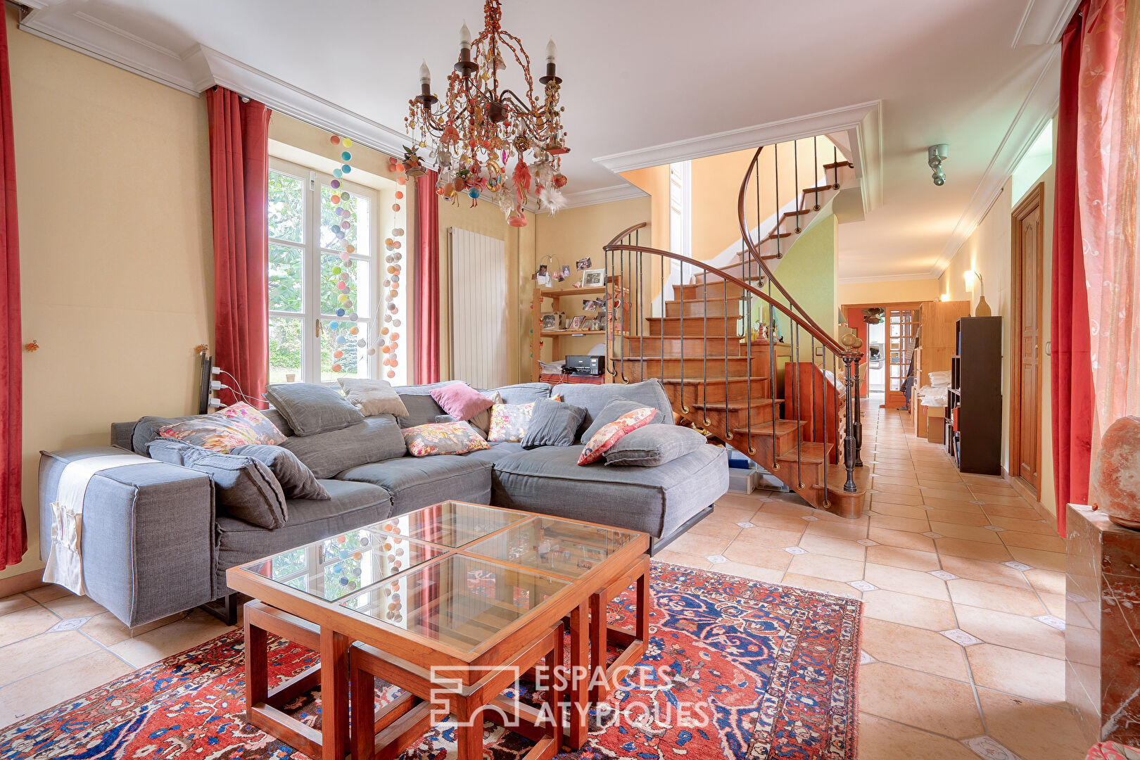 Située dans un secteur très recherché au sein du Centre Sud, cette propriété à part entière offre un accès facile aux transports, aux commerces et à toutes commodités assurant un mode de vie pratique et familial. Cette bâtisse exceptionnelle de 1860 déploie une surface totale de 266m² et de 223m² habitable. Parfaitement préservée et rénovée avec soin, elle offre un confort moderne dans un cadre historique. Au calme et à l'abri des regards, cette demeure si particulière est articulée en L autour d'une vaste cour ainsi qu'un beau jardin arboré. Ce bien témoigne de l'architecture du XIXème siècle de par ses façades en pierre de taille capturant le charme du passé dans un esprit urbain et contemporain. Une entrée dessert d'un côté une vaste cuisine indépendante entièrement aménagée et équipée, complétée d'un cellier. De l'autre, se situe une salle à manger puis un séjour avec cheminée donnant accès à la terrasse ainsi qu'au jardin. Un WC indépendant complète le rez-de-chaussée. L'étage se compose d'un long couloir possédant de nombreuses fenêtres et distribuant 5 chambres dont une avec salle d'eau attenante. Une salle de bains avec douche et baignoire complète ce niveau avec une buanderie et deux WC indépendants. Un deuxième étage prend place sous les toits comprenant des combles aménagés en chambres supplémentaires, bureaux, dressings, salle d'eau avec WC. Aussi, des annexes s'additionnent à cette propriété telles qu'un garage double permettant d'accéder directement au jardin, une dépendance idéale pour de la location, accueillir de la famille/amis ou profession libérale. A cela s'ajoutent, deux caves, un local technique, un WC ainsi qu'un abri de jardin. Ce bien de caractère orienté Est/Ouest saura ravir et charmer tous les passionnés d'histoire et d'architecture à travers ses belles hauteurs sous plafonds et son cachet incontestable. Gare RER C à 9 min à pied (Paris en 10 min) Tram T9 à 2 min à pied (Paris en 20 min) TVM à 1 min à pied Commerces : 5 min à pied CLASSE ÉNERGIE : D / CLASSE CLIMAT : C. Montant moyen estimé des dépenses annuelles d'énergie pour un usage standard, établi à partir des prix de l'énergie de l'année 2021 : entre 2 950 euros et 4 080 euros Les informations sur les risques auxquels ce bien est exposé sont disponibles sur le site Géorisques : https://www.georisques.gouv.fr Contact : Angélique PEREZ EI 06 81 39 98 26 - RSAC : 933 421 042 Créteil Angélique Perez (EI) Agent Commercial - Numéro RSAC : 933 421 042 - Créteil.