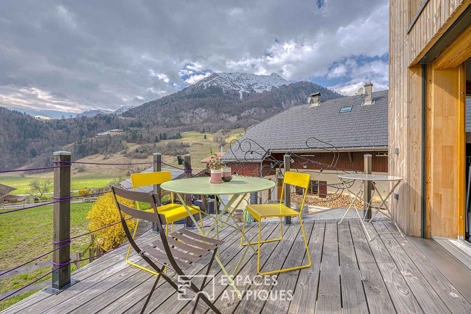 Située à Serraval, cette ancienne grange rénovée en partie propose une expérience de vie singulière, où le charme des matériaux bruts rencontre une écriture architecturale contemporaine. Développant 52 m² Carrez pour 96 m² au sol, ce bien rare s'inscrit parfaitement dans la lignée de l'immobilier atypique savoyard. Dès l'entrée, le volume et la belle hauteur sous plafond saisit par sa verticalité et sa luminosité. La pièce de vie, véritable coeur battant du bien, s'articule autour d'un salon chaleureux et d'une cuisine ouverte. De larges ouvertures cadrent avec précision le panorama montagneux, effaçant la frontière entre intérieur et extérieur. Un escalier épuré conduit à une mezzanine baignée de lumière. Cet espace nuit, complété par un coin bureau, offre une atmosphère de cocon sous une charpente apparente. Une seconde chambre et une salle d'eau complète ce bien au premier niveau. L'extérieur n'est pas en reste avec une terrasse en bois idéalement exposée, promesse de moments contemplatifs face au mont Charvin. Le bien se distingue également par ses annexes précieuses : une cave de 14 m² et un potentiel de 31 m² supplémentaire, idéal pour un projet d'appartement indépendant ou d'atelier (arrivées d'eau et d'électricité installées, espaces carrelés). Un garage situé à l'entrée et un carport viennent compléter les prestations de cette petite maison hors normes. A proximité immédiate des stations de ski des Aravis et d'Annecy, ce bien constitue un refuge idéal ou un investissement de caractère dans l'immobilier atypique. CLASSE ÉNERGIE : D / CLASSE CLIMAT : B. Montant moyen estimé des dépenses annuelles d'énergie pour un usage standard (2021, 2022 et 2023) : entre 970 euros et 1.350 euros. Les informations sur les risques auxquels ce bien est exposé sont disponibles sur le site Géorisques : www.georisques.gouv.fr. Contact : Laurence 06 61 02 84 42 Laurence ROMERO (EI) Agent Commercial - Numéro RSAC : 841 857 295 - Annecy.
