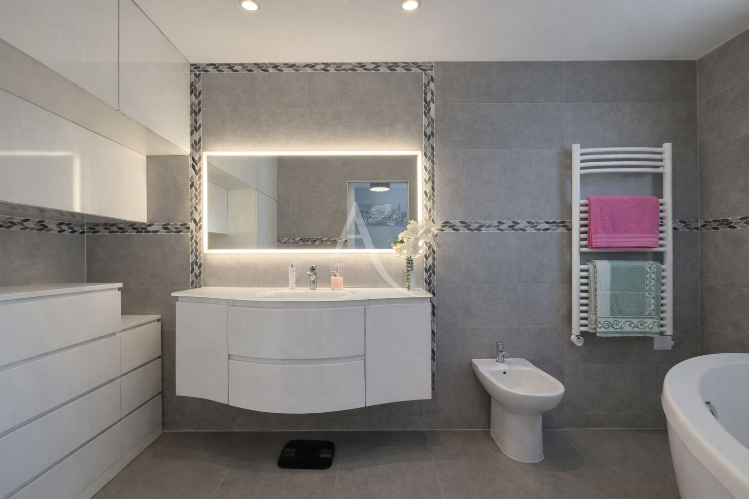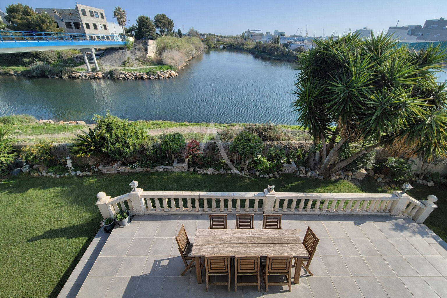 Dans un environnement privilégié, bénéficiant d'une vue imprenable sur le canal, découvrez cette somptueuse propriété construite en 2009, aux prestations de qualité. Elle se développe sur 257 m² habitables avec garage de 31m² et piscine sur une parcelle de 869 m². La propriété, actuellement organisée en deux espaces de vie distincts (rez-de-chaussée et étage), peut être utilisée comme une grande maison familiale ou comme deux appartements indépendants, tout en étant aujourd'hui communicante sans travaux. A l'extérieur, vous serez immédiatement séduit par un jardin avec terrasse et accès direct sur le canal, une piscine avec jacuzzi, une cuisine d'été conviviale, ainsi que deux garages. Au rez-de-chaussée de 125 m², un spacieux appartement offrant : - Une vaste pièce de vie avec cuisine américaine entièrement équipée - Un salon/séjour sublimé par de belles colonnes architecturales - Une grande terrasse parfaitement exposée face au canal - Deux chambres confortables - Une salle d'eau complète avec baignoire et douche - Un WC indépendant - Une buanderie fonctionnelle A l'étage de 132 m², un second espace de vie se composant : - Un double salon/séjour de 69m² avec cuisine américaine aménagée et équipée prolongée par une terrasse avec vue dégagée sur le Mont Saint-Clair. - Une suite parentale avec salle de bains privative - Une salle d'eau - Deux chambres Nombreux éléments de confort : climatisations, menuiseries double vitrage, poêle à granulés, volets roulants électriques et panneaux solaires. Possibilité de location d'un emplacement bateau avec ponton et anneau d'amarrage. Bien rare sur le secteur. Amandine MILLAN (EI) Agent Commercial - Numéro RSAC : - .