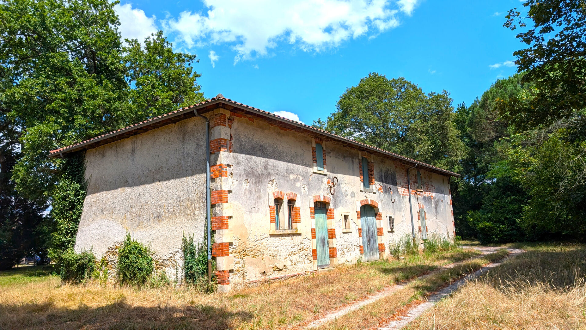 Rare opportunité à quelques minutes au nord de la ville ! Cette propriété comportant deux bâtisses se trouve dans un endroit hyper calme sans nuisances, un lieu tranquille sans être isolé. Ce cadre verdoyant consiste en un superbe airial landais où se côtoient les chênes centenaires et de la prairie parfaite pour recevoir des chevaux grâce à son sol sablonneux. Le tout représentant plus de 2.7 Ha. Cela en fait déjà un produit rare, et il sera à terme possible d'étendre tout cela. Le bâti consiste en une première construction, la maison d'habitation à rénover. Celle-ci présente une surface de de plain pied d'environ 93 m². Cette dernière pourra être doublée grâce aux combles aménageables de 120 m². Elle comporte actuellement un séjour, une cuisine, 3 grandes chambres, une salle d'eau, un WC et un cellier. Côté architecture une magnifique façade avec un auvent majestueux ouvre sur un garage qui pourra être utilisé pour agrandir le rez de chaussée de 30 m². Le second bâtiment est un magnifique édifice en pierre et brique rouge qui dégage un gros cachet notamment lui aussi par une façade principale de toute beauté. Elle pourra tout aussi bien être rénovée en logement principal ou accessoire (création de chambres d'hôtes ?) dans le cadre d'un projet professionnel, auquel cas les 165 m2 de combles aménageables seront un réel atout. Ou bien également être utilisée pour un usage technique, agricole, ou équin. Comportant une grande pièce à usage de garage, une écurie avec stales, atelier, etc... Chaque profil pourra lui rendre sa superbe selon ses besoins. Les couvertures, charpentes et toitures des deux bâtiments sont en bon état. Mais il faudra prévoir un budget rénovation néanmoins pour rendre tout cela habitable. C'est dont plus de 530 m2 au total qui pourront faire le bonheur du futur acquéreur de ce produit dont les caractéristiques font qu'il relève de la rareté !! Et si c'était vous ? On en parle !? Dpe : Non concerné Réf: 2976