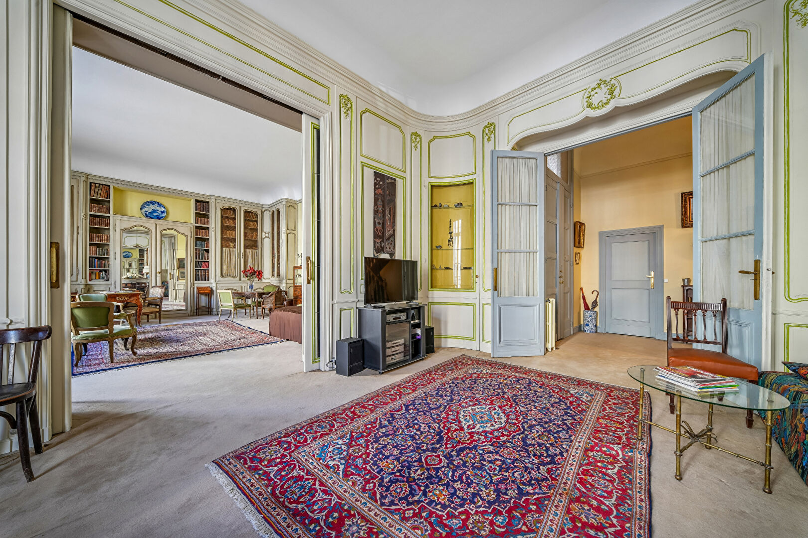 Situé au sein d'un élégant immeuble des années 1940 avec gardien et ascenseur, cet appartement rare développe une surface d'environ 133 m² habitables (109,48 m² loi Carrez et 128,74 m2 au sens de la loi Carrez) et se distingue par des volumes exceptionnels, sublimés par une hauteur sous plafond de 4 mètres. L'appartement s'articule autour d'un spectaculaire séjour de réception de plus de 74 m², offrant une sensation d'espace remarquable. Il comprend également une cuisine indépendante, deux chambres, deux salles d'eau et deux toilettes. Une cave complète ce bien. Adresse recherchée à proximité immédiate de la place d'Iéna, des commerces de l'avenue Kléber et à quelques minutes du Trocadéro. Un appartement aux volumes particulièrement rares dans ce secteur prisé, idéal pour une résidence principale élégante, un pied-à-terre parisien ou un investissement patrimonial de qualité. (5.26 % honoraires TTC à la charge de l'acquéreur.) Copropriété de 29 lots - dont 23 lots habitation.