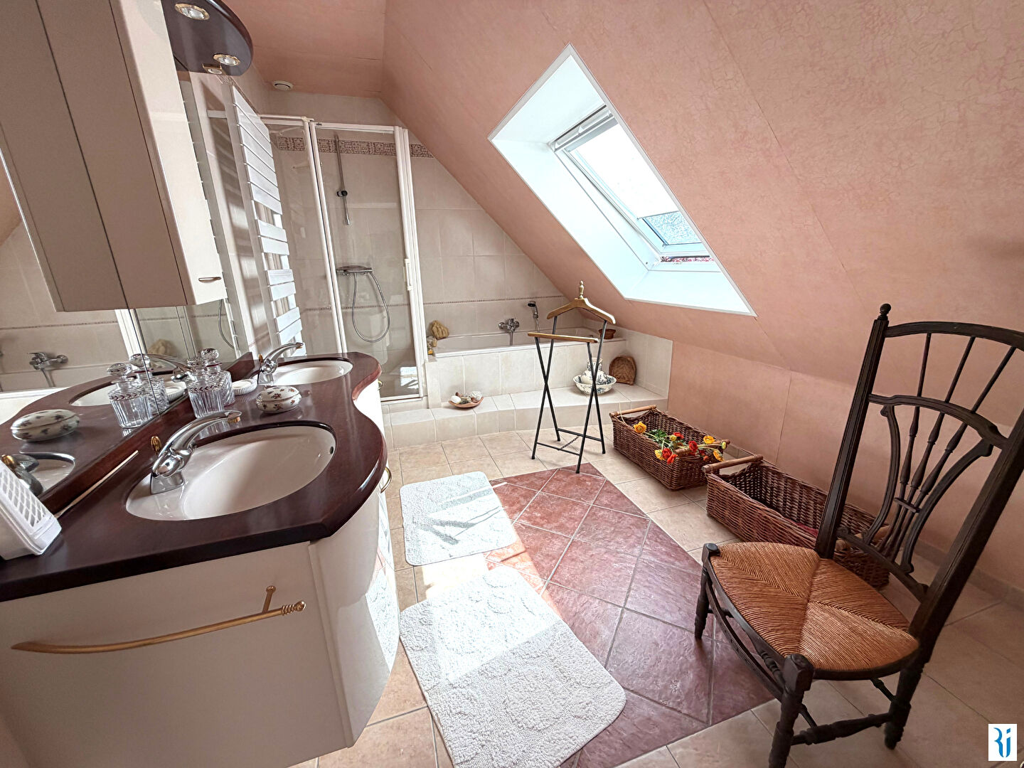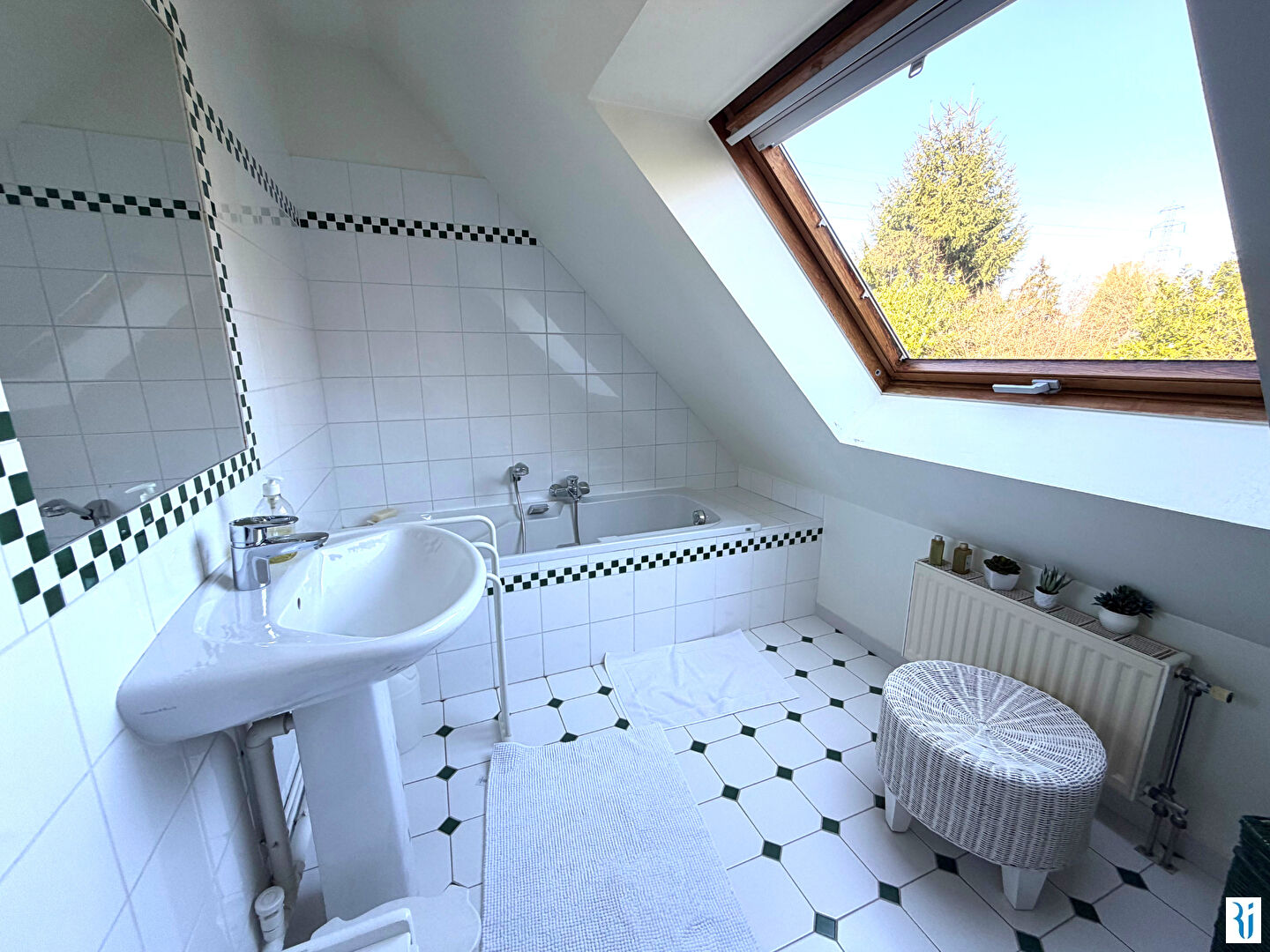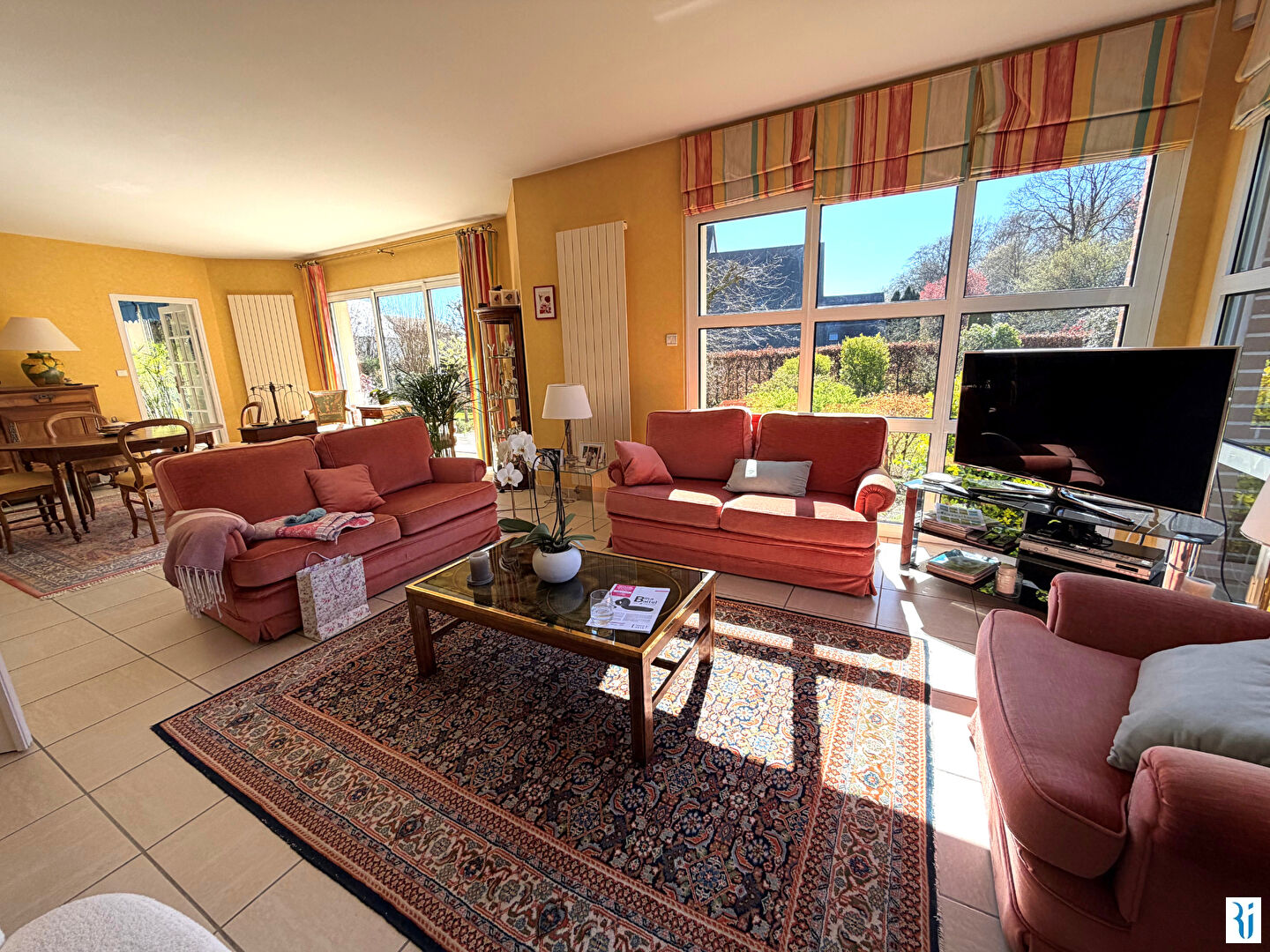 La cabinet SAUVAGE TRANSACION vous propose sur la charmante commune de MONTIGNY cette maison de 1996 de 215m² au sol, parfaitement entretenue sur un terrain de 1100m² sans vis à vis et avec double garage. La maison possède une grande entrée avec rangements, un vaste séjour de 50m² avec cheminée le tout donnant sur une terrasse exposée sud-ouest, possibilité de faire une chambre en RDC dans une partie du séjour qui est sur un côté), une cuisine aménagée et équipée, une buanderie, une salle de douche avec wc puis à l'étage un grand palier dessert 4 chambres, 2 autres salles de bains, wc et rangement. Vous trouverez également un double box de garage et une très beau jardin paysagé. La commune possède quelques commerces et le bus pour ROUEN - accès à ROUEN en 10 min PRECISIONS: possibilité d'avoir une chambre et une SDB au RDC - l'environnement est très agréable, verdoyant et calme - à 10 min de ROUEN NOTRE INSTINCT IMMOBILIER VOUS LE CONSEILLE POUR : son très bon état, ses surfaces, son environnement (4.55 % honoraires TTC à la charge de l'acquéreur.)