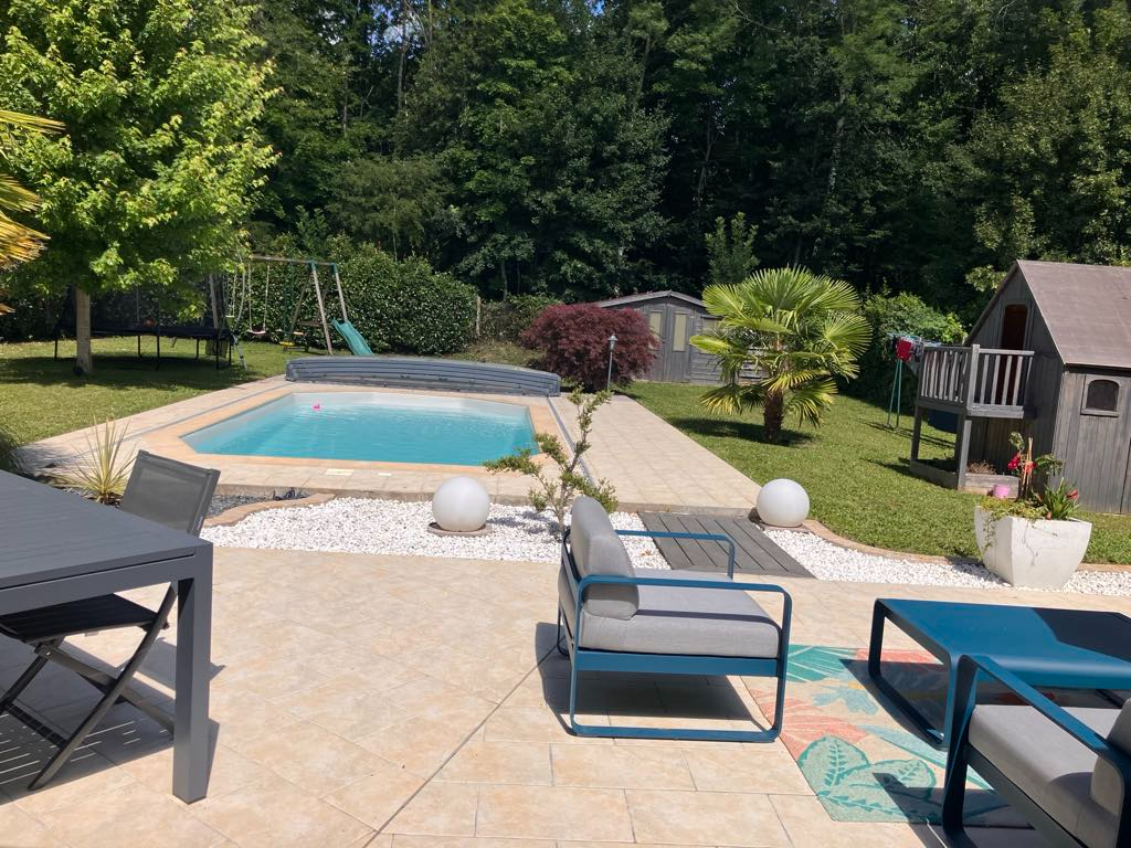 Venez découvrir cette maison récente de 2009 en parfait état et comprenant : entrée, cuisine aménagée ouverte sur séjour salle à manger avec poêle à bois, salon, chambre, salle de bains avec douche et baignoire, bureau, buanderie. A l'étage : Palier dégagement desservant 3 chambres, salle d'eau, toilettes. Vaste terrasse. Piscine chauffée. Pool house. Abri de jardin. Carport. Terrain clos et arboré de 990 m². De très belles prestations à découvrir. Secteur calme. Ecoles sur place.