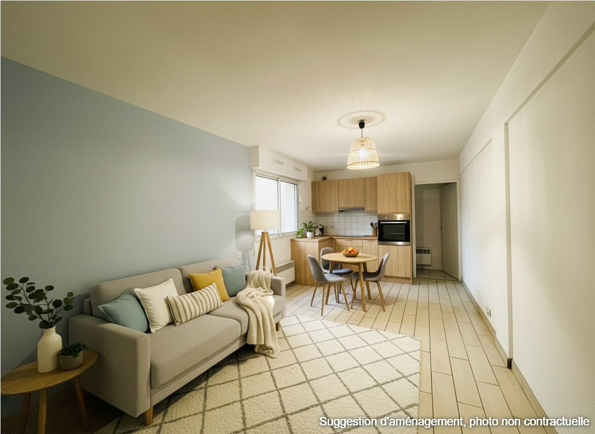 Idéalement situé dans une résidence recherchée et appréciée, au 1er étage avec ascenseur, agréable studio composé : d'une entrée, un coin cuisine ouverte sur la pièce principale avec placard, salle d'eau avec wc. Proches de toutes commodités. Copropriété de 23 lots - dont 12 lots habitation. Charges annuelles : 406 euros.