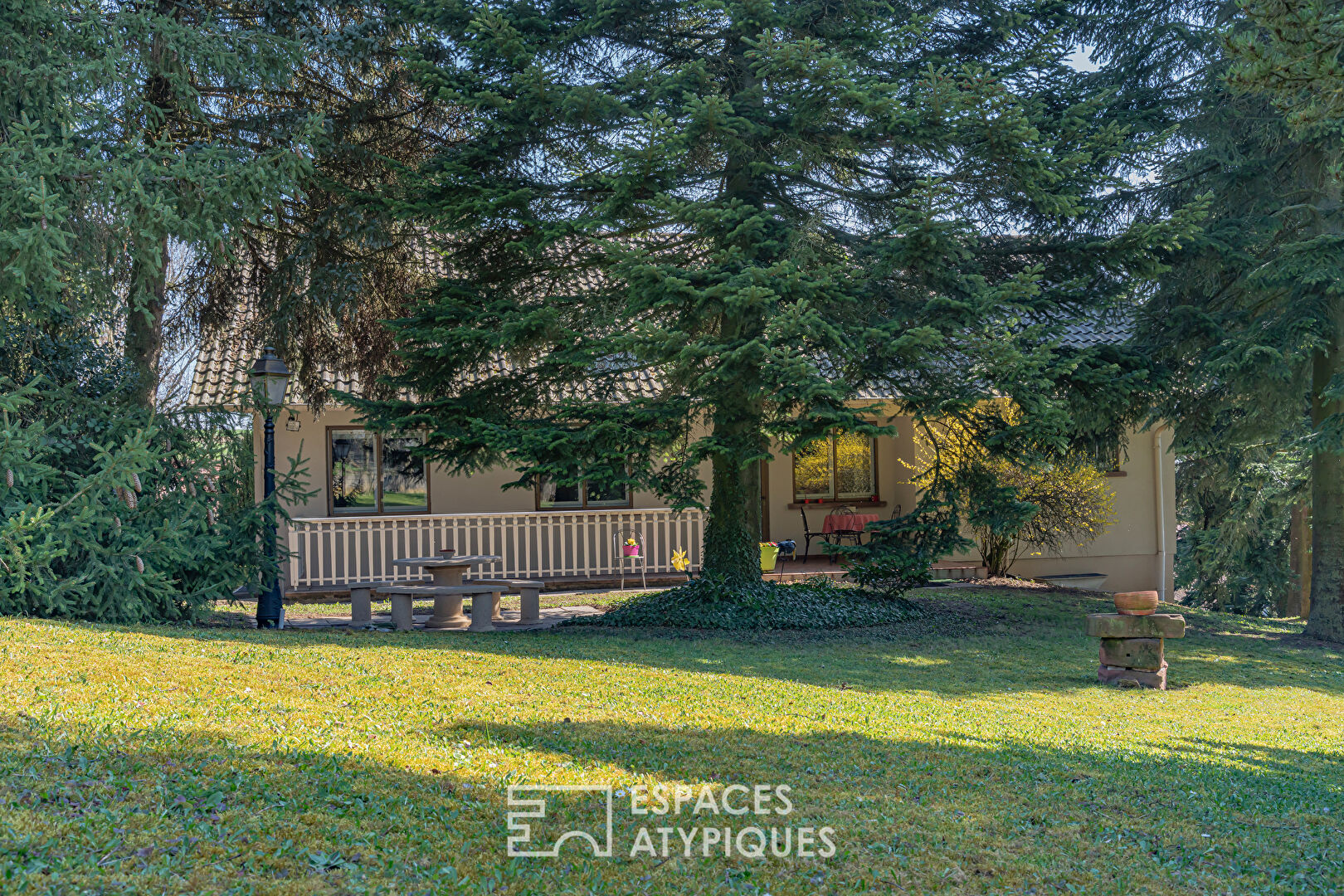 Située dans un environnement privilégié et préservé, cette maison d'architecte édifiée en 1977 déploie 140 m² de surface habitable. L'extérieur se présente comme une véritable ode à la sérénité avec son parc arboré de 42 ares offrant une intimité totale et un cadre de vie bucolique. Cette propriété rare se distingue par son architecture élégante, sa luminosité naturelle et un potentiel de développement foncier remarquable grâce à sa vaste parcelle constructible. Le rez-de-chaussée s'ouvre sur une entrée accueillante qui distribue avec fluidité les différents espaces de vie. Le vaste salon-séjour, baigné de lumière, constitue le coeur de la demeure et profite de larges ouvertures vitrées donnant directement sur une terrasse en communion avec la nature environnante. La cuisine indépendante, aménagée et équipée, est complétée par un espace repas fonctionnel. La partie nuit de ce niveau propose deux chambres confortables ainsi qu'une salle de bains disposant d'un accès direct à la chambre parentale. Le sous-sol total offre des fonctionnalités appréciables avec un dégagement desservant un bureau propice au calme, une buanderie équipée d'une salle d'eau et une cuisine d'appoint. Deux grandes caves et un garage triple capable d'abriter trois véhicules complètent les prestations intérieures de ce bien singulier. Idéalement implantée, la propriété bénéficie d'une situation géographique stratégique permettant de rejoindre Haguenau en 12 minutes et Brumath en 15 minutes, tandis que Strasbourg est accessible en une demi-heure via l'A4. Pour une mobilité facilitée, la gare de Pfaffenhoffen se trouve à moins de 5 minutes. Les infrastructures scolaires avec ramassage dédié ainsi que les commerces et services de la zone du Taubenhof sont ralliés en quelques instants seulement. L'harmonie entre cette architecture de caractère et les perspectives exceptionnelles offertes par le terrain font de cette propriété un coup de coeur. CLASSE ENERGIE : D / CLASSE CLIMAT : B Montant moyen estimé des dépenses annuelles d'énergie pour un usage standard, établi à partir des prix moyens des énergies indexés sur les années 2021, 2022, 2023 (abonnements compris) : entre 2 330 et 3 200 euros Contact : Cédric 06.78.54.01.95 Cédric RICCIO (EI) Agent Commercial - Numéro RSAC : 908744840 - Strasbourg.
