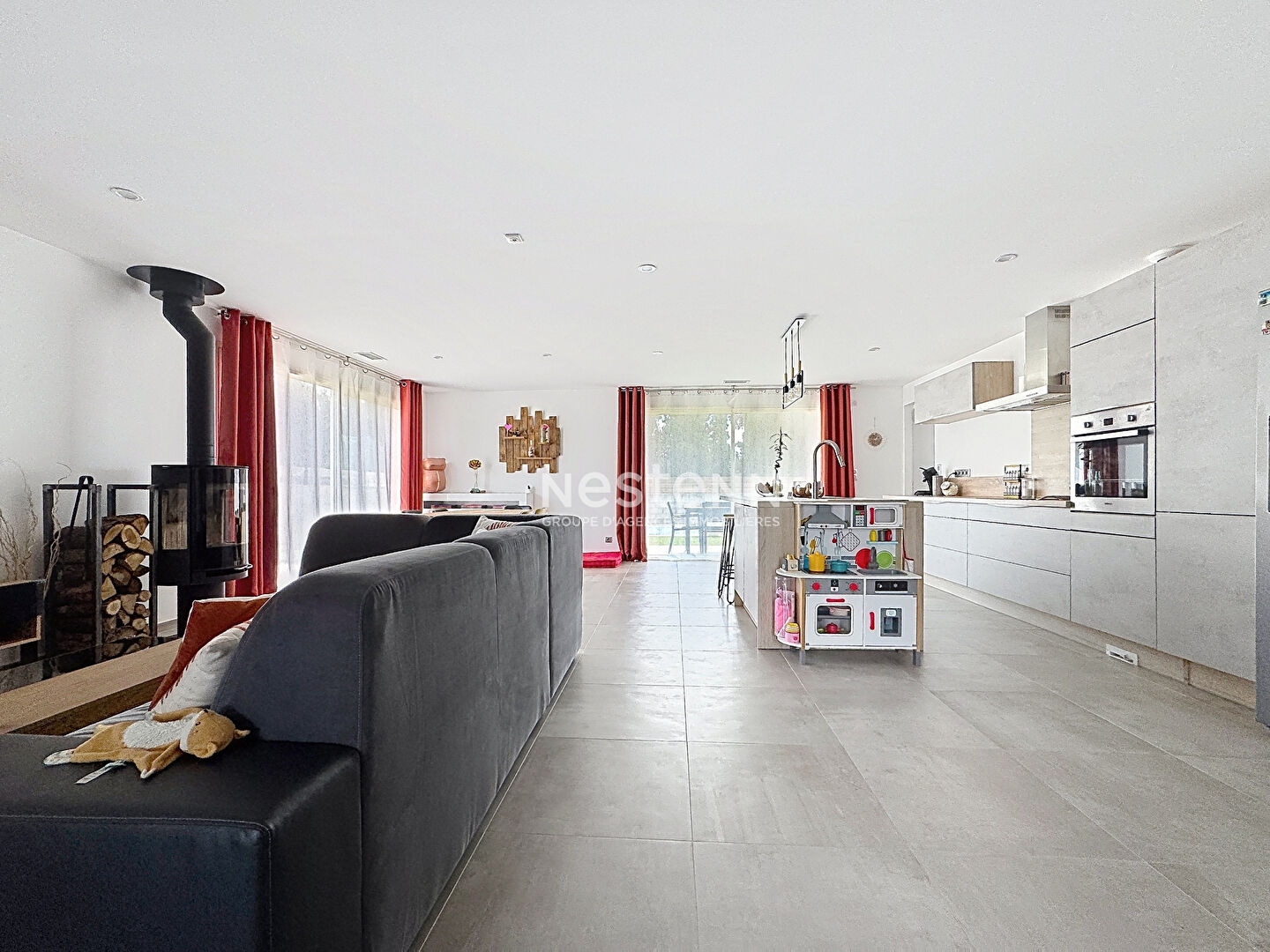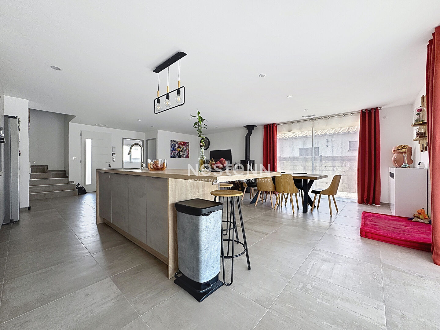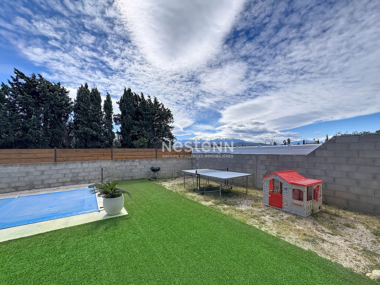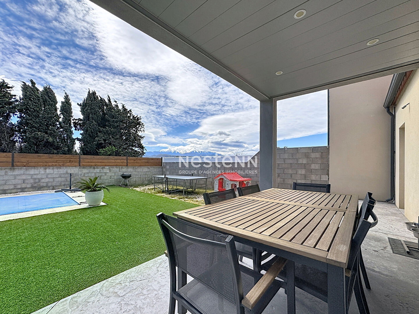 A SAISIR CHEZ NESTENN ! Sur la commune de Saint-Féliu-d'Avall, dans un lotissement récent, venez découvrir cette belle maison de 2016 élevée d'un étage sur une parcelle de près de 400m2. Au rez-de-chaussée, vous serez séduit par une spacieuse pièce de vie d'environ 60 m² avec son poêle à bois, lumineuse et ouverte sur la cuisine. Vous y trouverez également un WC indépendant ainsi qu'une pièce pouvant faire office de chambre ou de bureau. Une buanderie complète cet espace, ainsi qu'un garage de 22 m² doté d'une grande mezzanine, idéale pour le stockage. A l'étage, la maison propose trois chambres, dont une suite parentale avec dressing et salle d'eau. Une salle de bains ainsi qu'un WC indépendant viennent compléter ce niveau. Entièrement équipée d'une climatisation gainable, cette maison offre un confort optimal en toute saison. Bénéficiant d'une exposition plein sud, elle profite d'un ensoleillement exceptionnel tout au long de la journée, sublimant les volumes et apportant une luminosité naturelle rare. La pièce de vie et le jardin avec sa piscine de 4x2,5m deviennent ainsi de véritables espaces de vie chaleureux et agréables. En toile de fond, vous serez séduit par une vue imprenable et dégagée sur le majestueux Canigou, offrant un cadre de vie privilégié entre confort moderne et environnement naturel. Valentin SIMMAT (EI) Agent Commercial - Numéro RSAC : 947937389 - .