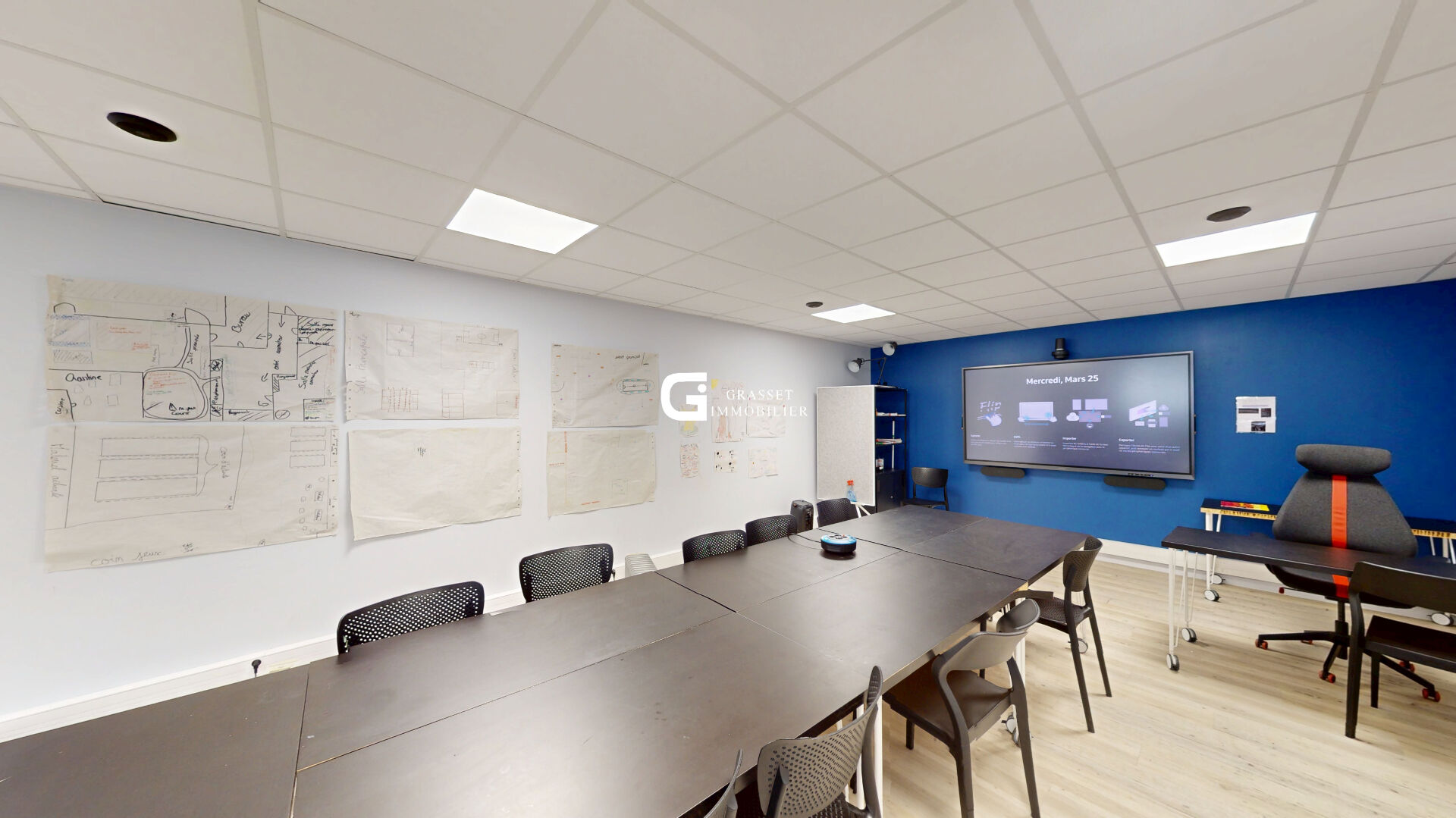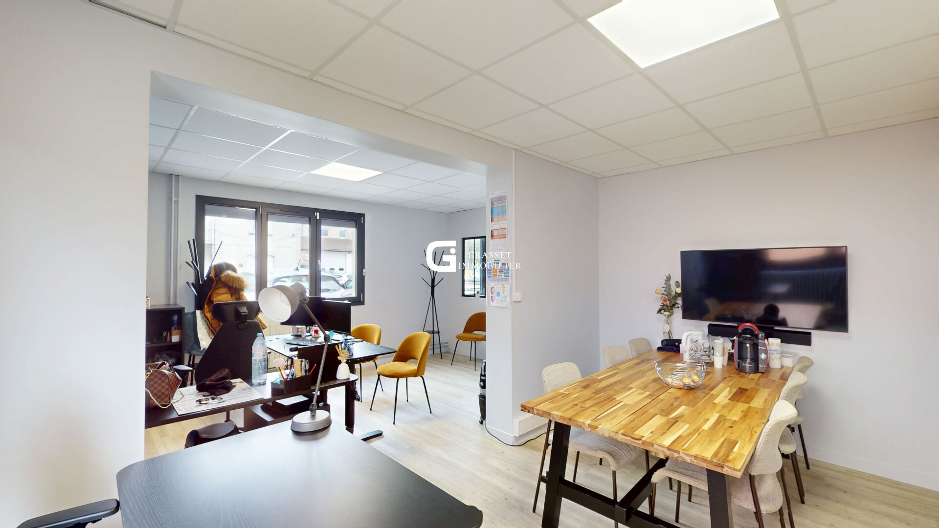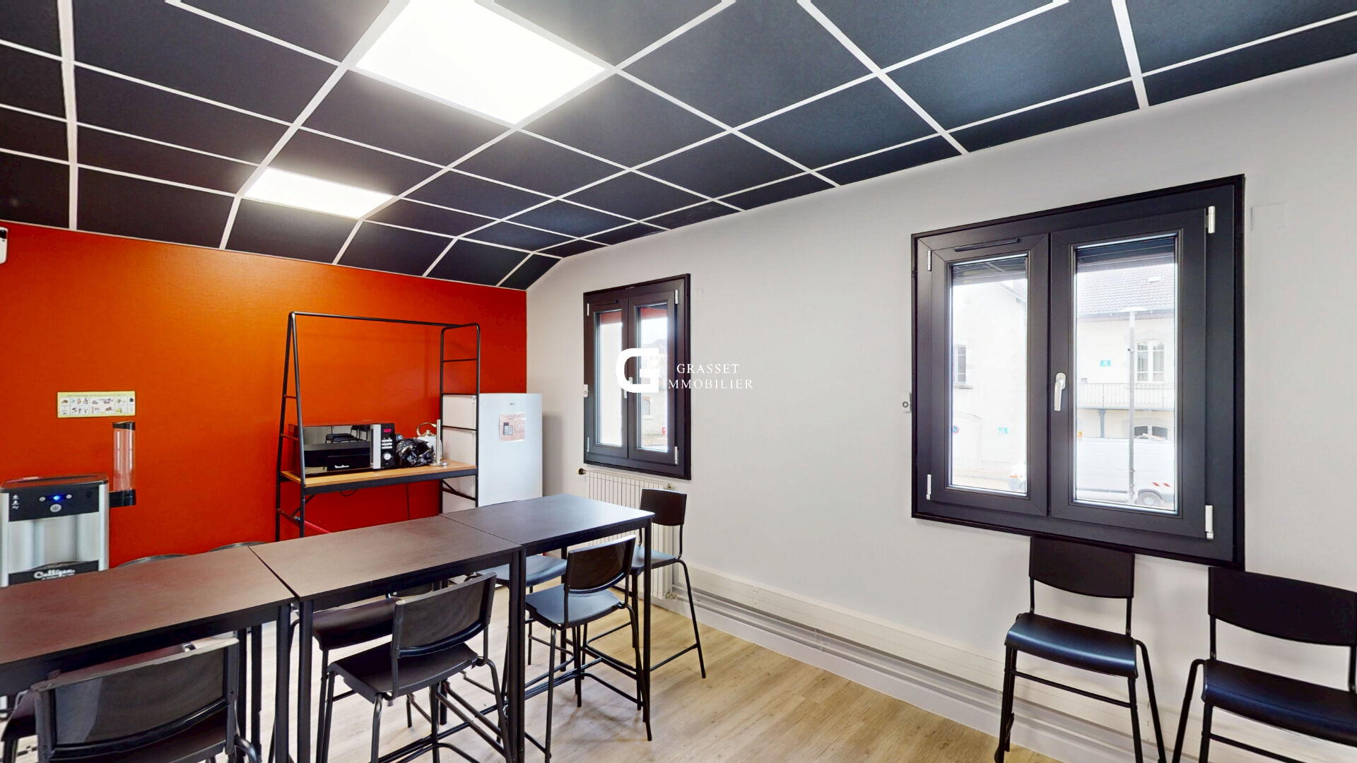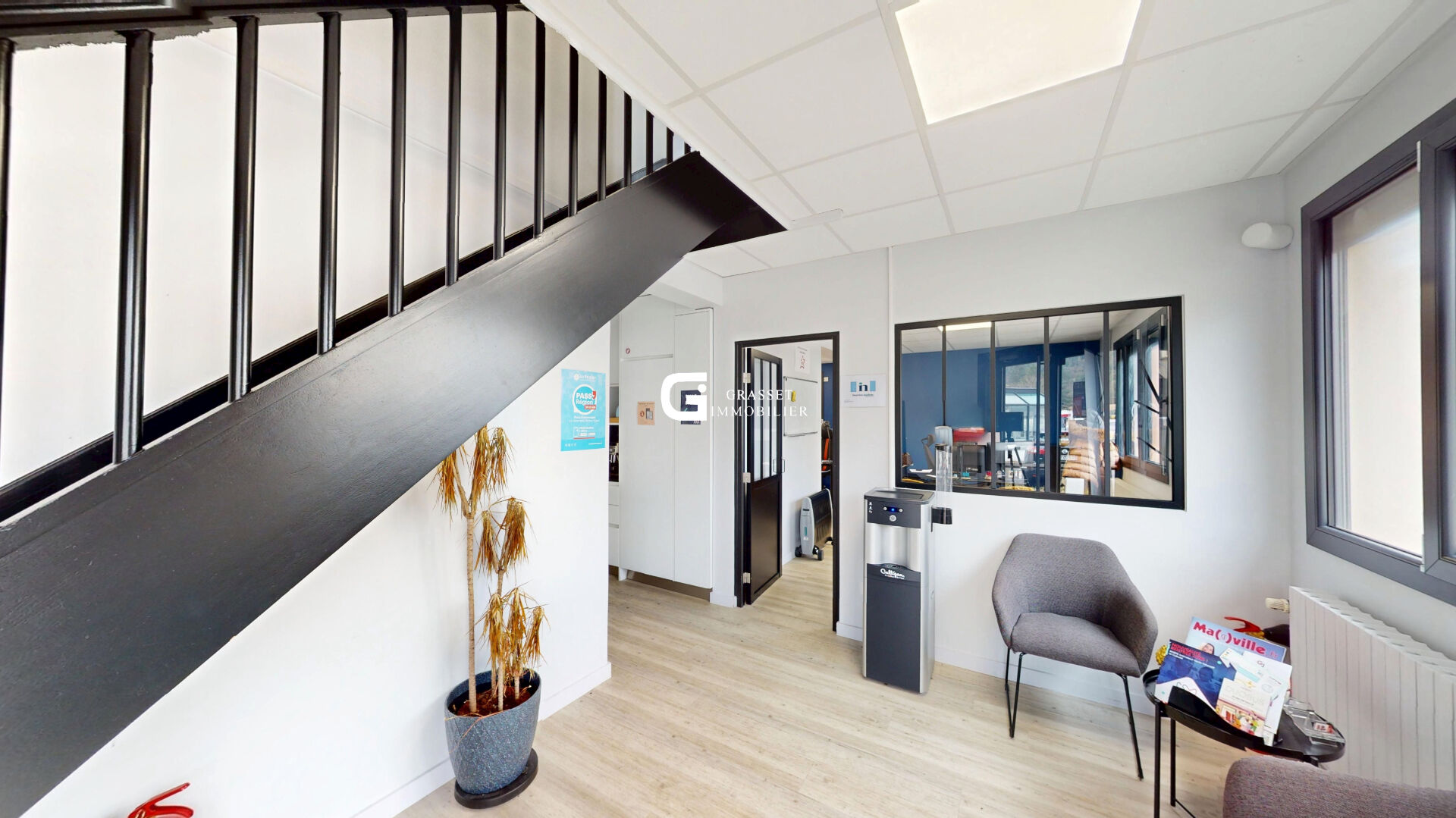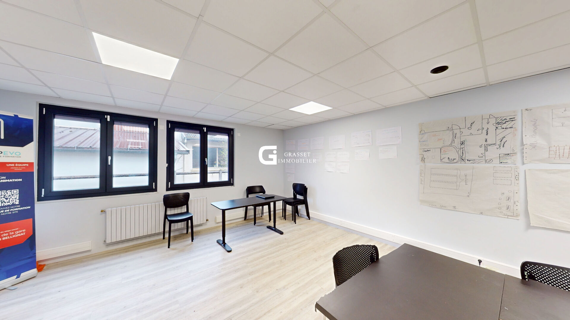 Idéal pour une activité professionnelle ou un investissement, cet immeuble indépendant offre de beaux volumes et de nombreuses possibilités dans un environnement facile d'accès avec du stationnement juste devant, ce qui est un vrai plus pour accueillir du public ou des collaborateurs. A l'intérieur, les espaces sont déjà bien aménagés et en très bon état, avec de grandes pièces lumineuses et une circulation fluide sur deux niveaux. Le rez-de-chaussée se compose d'une entrée, de plusieurs bureaux et d'une grande salle d'environ 50 m², parfaitement adaptée pour une activité de formation, des bureaux ou du coworking, avec des sanitaires à disposition ainsi qu'une petite kitchenette discrètement intégrée dans le couloir. A l'étage, vous retrouvez une seconde grande salle d'environ 47 m², un espace cuisine d'environ 20 m² ainsi qu'un bureau, permettant facilement de séparer les espaces ou d'envisager deux activités distinctes selon vos besoins. Le bien est confortable grâce au double vitrage PVC et aux volets roulants électriques déjà installés, ce qui limite fortement les travaux à prévoir. Seuls le système de chauffage et la toiture en fibro-ciment seront à anticiper pour une remise à niveau globale. C'est un bien fonctionnel, modulable et rapidement exploitable, idéal pour un professionnel souhaitant s'installer ou pour un investisseur à la recherche d'un projet rentable, une opportunité à visiter sans tarder.