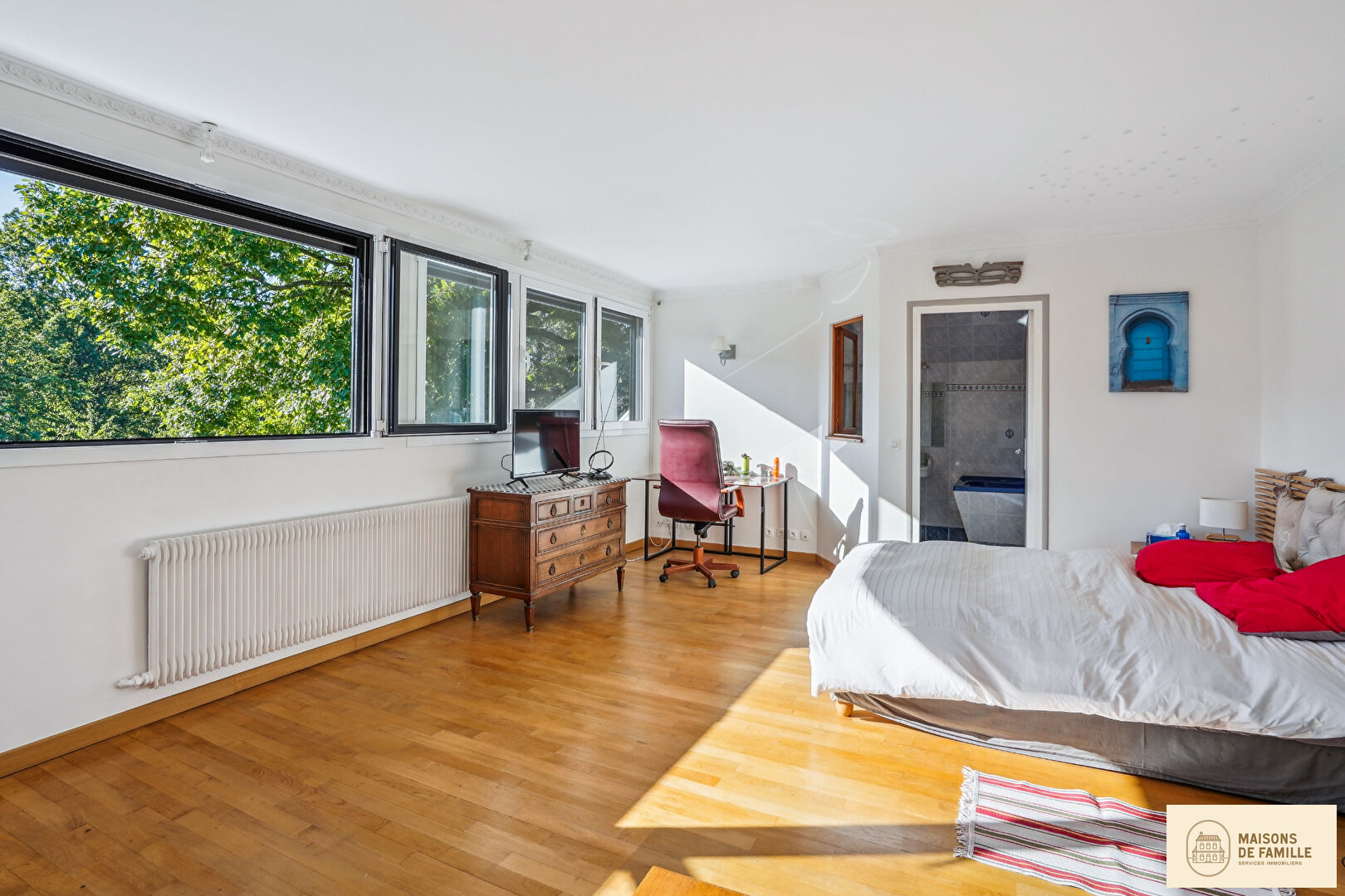 Maisons de Famille Immobilier, l'expert de la vente de Maisons dans l'ouest parisien. La Celle-Saint-Cloud - La Feuillaume. A deux pas des écoles et de la place du marché, nous vous présentons *Abby*, cette magnifique maison lumineuse située dans un quartier très recherché, au calme absolu. Construite sur un terrain de 779 m² et d'une surface habitable de 330 m², elle se compose de la manière suivante : Au rez-de-chaussée, une entrée, un séjour/salle à manger avec cuisine ouverte donnant directement sur le jardin, exposé plein ouest et sans vis-à-vis, une chambre avec dressings, une seconde chambre avec salle de douche et dressing et un WC séparé. Un grand garage de 40m2 complète ce niveau. Au 1er étage, un magnifique séjour de 56 m² avec balcon, une suite parentale avec salle de bains et dressings, une grande chambre avec dressing et possibilité d'y intégrer une salle d'eau, une buanderie et des WC séparés. Au 2ème étage, deux grandes chambres avec chacune sa salle d'eau. Et un WC. Un grand grenier complète le bien. Jardin plat et joliment arboré à l'abri des regards. Ravalement et isolation par l'extérieur en 2023, toiture refaite et isolée en 2023, climatisation avec pompe à chaleur réversible. Cette maison en très bon état général saura vous séduire par ses généreux volumes, sa luminosité et son environnement exceptionnel. Excellents établissements scolaires privés et internationaux a proximité. Pasteur : 5min à pied. Blanche de Castille, Passy Buzenval et Danielou : ramassage scolaire à proximité. IEB à quelques minutes. Marché de la Place Berthet et commerces de proximité à 5min à pied. Accès direct pour l'autoroute A86 et A13. Ligne L de La Celle-Saint-Cloud accessible à pieds et en bus. RER A de Rueil accessible en bus. Contact direct 7/7 avec Mickael Carre 0659129041 (2.86 % honoraires TTC à la charge de l'acquéreur.)