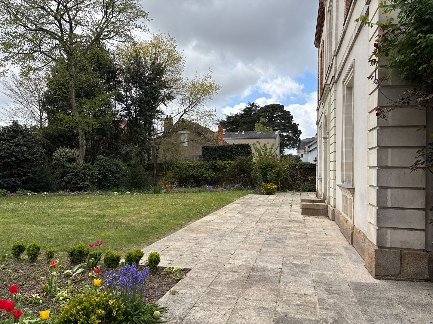 Nantes à proximité du centre ville - Belle demeure de caractère classée au patrimoine nantais sur une parcelle de 840 m² au calme d'une voie privée. Hall d'entrée desservant un séjour sur parquet Versailles avec cheminée, une salle à manger, une cuisine dinatoire aménagée équipée, un bureau bibliothèque (ou chambre) chacune des pièces donnant sur la terrasse et le jardin orientés Sud, une buanderie, une pièce rangement pouvant être transformée en salle de bain, un wc avec lave-mains. A l'étage une suite de 59 m² composée d'une chambre traversante avec cheminée, un dressing, une salle de bain (douche et baignoire), un wc, un dégagement desservant deux belles chambres de 20 m² chacune, une salle de bains avec wc. Au dernier étage un pallier desservant trois chambres dont deux mansardées, une salle de douche, un wc. Un beau jardin ensoleillé, un grand garage, un cellier avec cave à vins aménagée et un préau pour voiture, complètent ce bien. Bien rare au calme avec double accès, proche des écoles, des commerces et des transports Photos complémentaires sur demande (3.00 % honoraires TTC à la charge de l'acquéreur.)