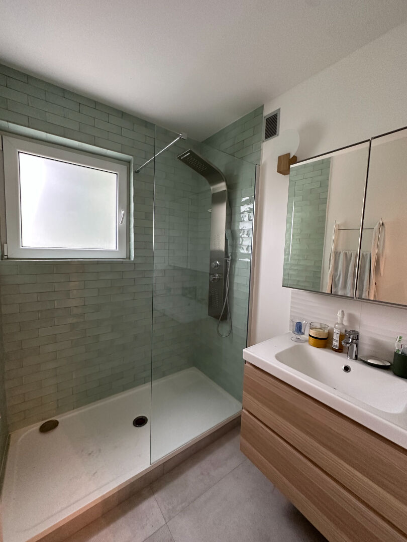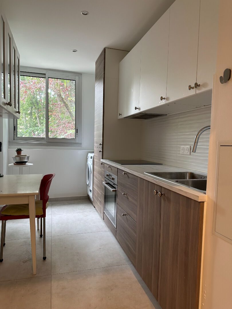 Au rez-de-chaussée, appartement de 78 m² entièrement refait à neuf avec entrée, double séjour avec bibliothèque sur mesure, cuisine équipée, cellier, 2 chambres, salle d'eau, wc séparés et balcon Chauffage et eau chaude compris dans les charges Emplacement de stationnement extérieur Disponible à partir du XX avril