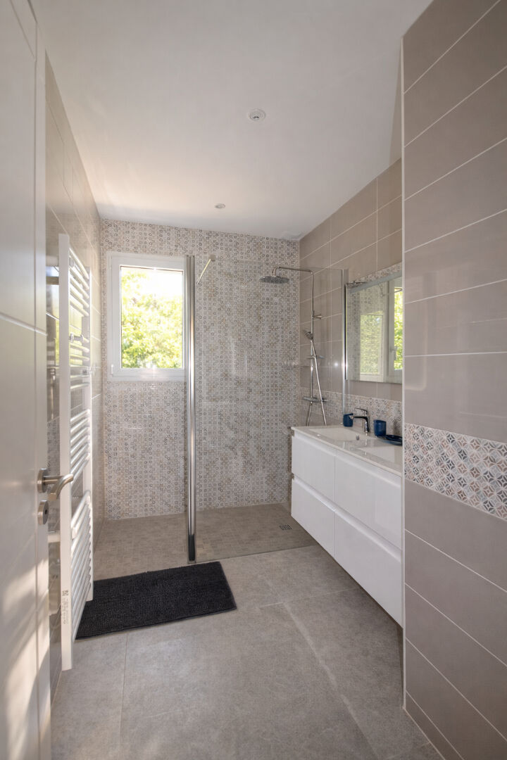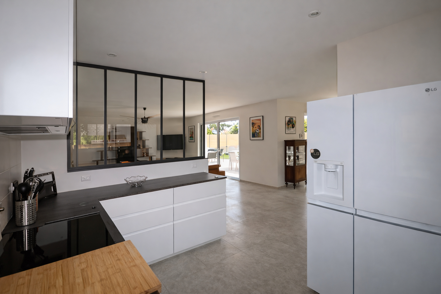 Sainte Marie Sur Mer, 400m de la plage des Sablons et 600m des commerces , située en impasse , belles prestations pour cette contemporaine édifiée en 2024 , d'une surface habitable de 158m² composée comme suit : Entrée avec placard, cuisine aménagée équipée ouverte sur un séjour salon donnant sur une terrasse de 46m² exposée Est- Sud -Ouest, dégagement desservant deux chambres avec placard, une salle d'eau et un wc . Second dégagement desservant une chambre avec placard et une salle d'eau, wc. Une suite parentale avec dressing, salle de bains avec baignoire et douche, wc . Cellier. Carport d'une surface de 26.52m² reliant la maison au garage d'une surface de 21.41m² , l'ensemble sur un jardin clos et arboré sans vis à vis de plus de 700m². (3.45 % honoraires TTC à la charge de l'acquéreur.)