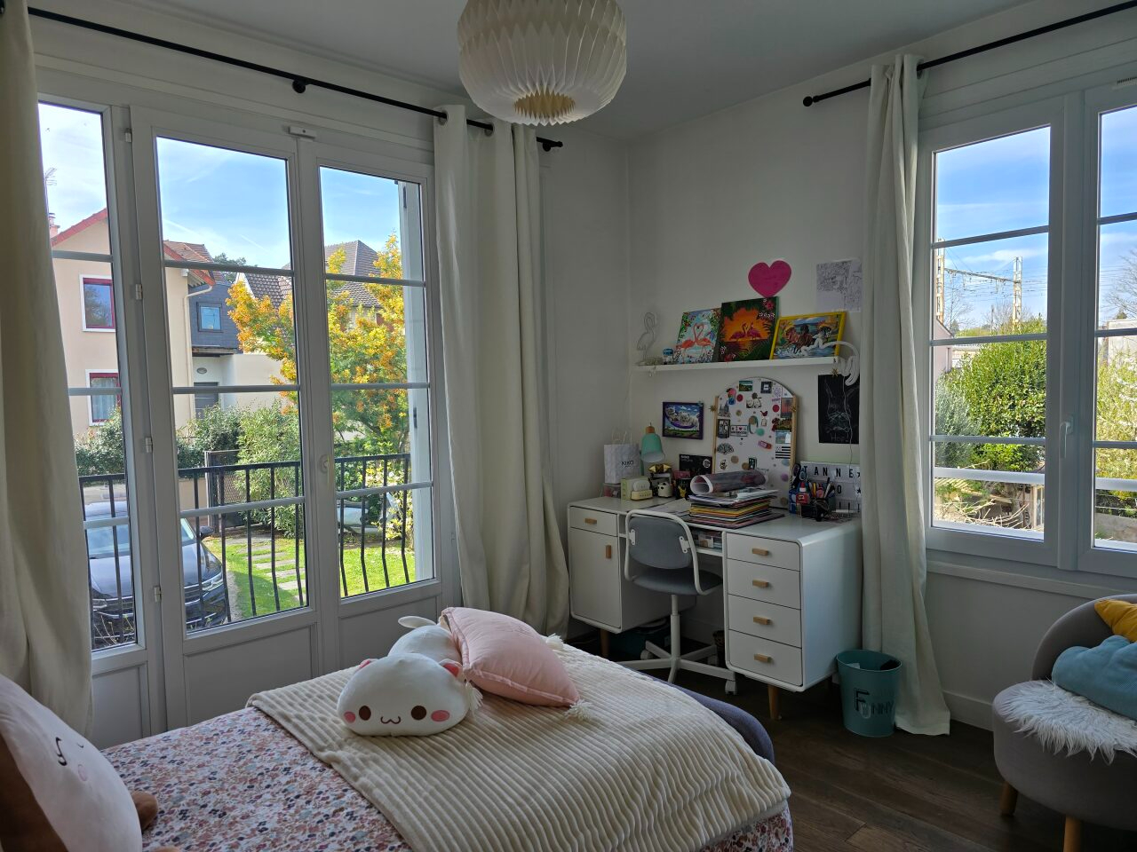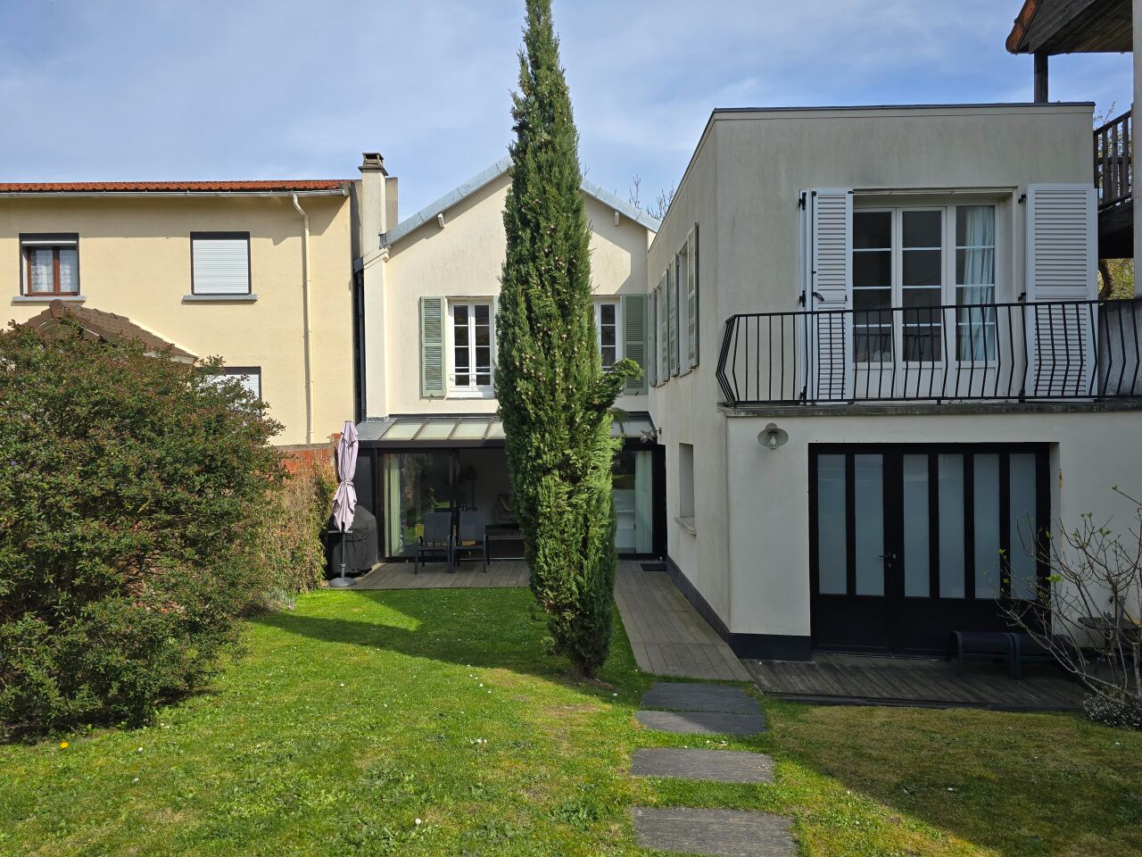 Quod et Associes vous propose une maison individuelle de 135m² édifiée sur un terrain arboré. Elle comprenant une entrée, un séjour double donnant accès à une terrasse en bois et un jardin de 253m², une cuisine ouverte aménagée et équipée, une salle à manger, un espace buanderie et wc. Au 1er étage, trois chambres dont une en version suite avec salle de bains privative, une seconde salle de bains, wc. Au 2eme étage, une chambre. Jardin avec terrasse en bois. Possibilité de garer un véhicule. Chauffage individuel au gaz par le sol et radiateur Disponibilité courant mai Honoraires Bail Loi ALUR : 15 euros/m² Honoraires Bail CODE CIVIL : 15% du loyer annuel