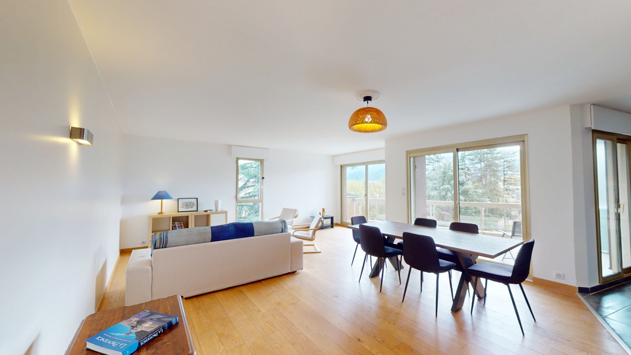 Situé dans une résidence de standing entièrement sécurisée, au coeur d'un environnement calme et verdoyant avec parc arboré et terrain de tennis, cet appartement T4 offre un cadre de vie privilégié sur la commune recherchée de Meylan. Au 3ème étage avec ascenseur, ce bien entièrement meublé et équipé se compose de : - Un vaste séjour double lumineux avec accès direct à une agréable terrasse - Une cuisine ouverte, aménagée et entièrement équipée - Trois chambres lumineuses - Deux salles de bain - Un WC indépendant - Un garage et une place de parking compris Les atouts du bien : - Résidence sécurisée avec prestations de qualité - Parc arboré et terrain de tennis au sein de la copropriété - Appartement entièrement meublé et prêt à vivre - Belle luminosité et volumes confortables - Étage élevé avec ascenseur Environnement : Situé dans un secteur résidentiel prisé de Meylan, à proximité des commerces, écoles et transports, permettant un accès rapide à Grenoble tout en profitant d'un cadre de vie paisible. Cet appartement est idéal pour une famille ou pour toute personne recherchant confort, tranquillité et prestations de qualité. Disponible immédiatement.