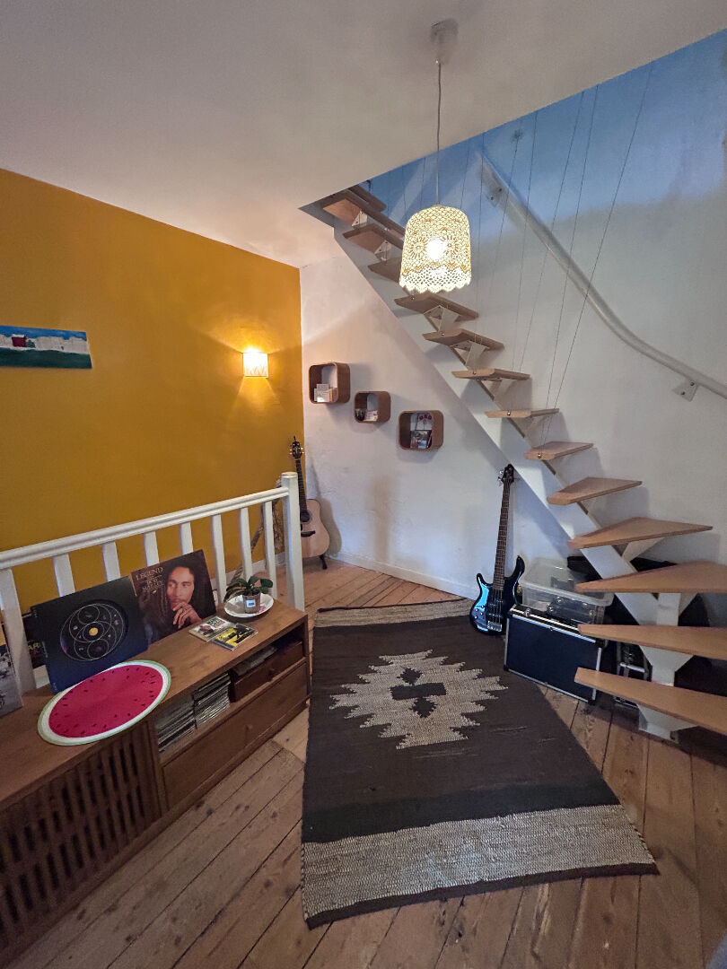 Située dans le charmant quartier de Trentemoult, à quelque pas de la Loire, cette maison typique vous séduira par sa chaleur Elle vous propose au rez-de-chaussée un grande pièce de vie exposée ouest et un wc spacieux qui sert aussi de rangement . Au premier, vous trouverez un palier de 17m2 , actuel bureau qui pourrait devenir une troisième chambre, une chambre et une salle d'eau Au deuxième, une très grande chambre de 35 m2 avec baignoire et lavabo profitant d'un déplafonné ajoutant à la sensation d'espace qui y règne (4.80 % honoraires TTC à la charge de l'acquéreur.)