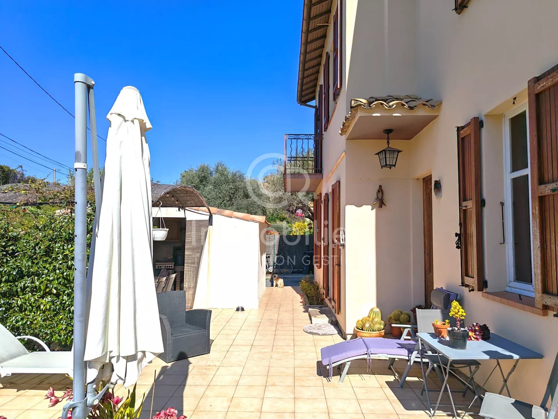 NOUVEAU QUARTIER PAVILLONNAIRE DU DEVENS BAS CROIX DES GARDES CANNES LA BOCCA SUD PROCHE CENTRE-VILLE ET COMMERCES ET ECOLE A PIEDS MAISON INDIVIDUELLE TYPE T5 DE 110M² SUR PARCELLE DE 987 M² EN EXPOSITION SUD AU CALME TERRAIN PLAT ARBORE AVEC POTAGER ET UN PUIT POUR L'ARROSAGE TERRASSE ET CUISINE D'ETE POSSIBILITE DE STATIONNER 3 VEHICULES SUR LA PARCELLE AVEC ACCES PORTAIL La maison a été construite dans les années 60 Elle est parfaitement saine et habitable tout de suite Composée de deux appartements complètement indépendants Un T3 de 55m² au rez-de-chaussée ainsi qu'un T2 de 55m² à l'étage Au rez-de-chaussée: Une pièce de vie climatisée et cuisine séparée Deux chambres ainsi qu'une salle d'eau et WC séparé A l'étage: Un séjour climatisé avec balcon vue dégagée Une grande cuisine séparée Une Chambre avec balcon ainsi qu'une salle d'eau et WC DOUBLE VITRAGE ET ELECTRICITE OK FACADE TOITURE ET STRUCTURE EN TRES BON ETAT TAXE FONCIERE 1209 EUROS Pour tous renseignements et visite nous sommes à votre disposition