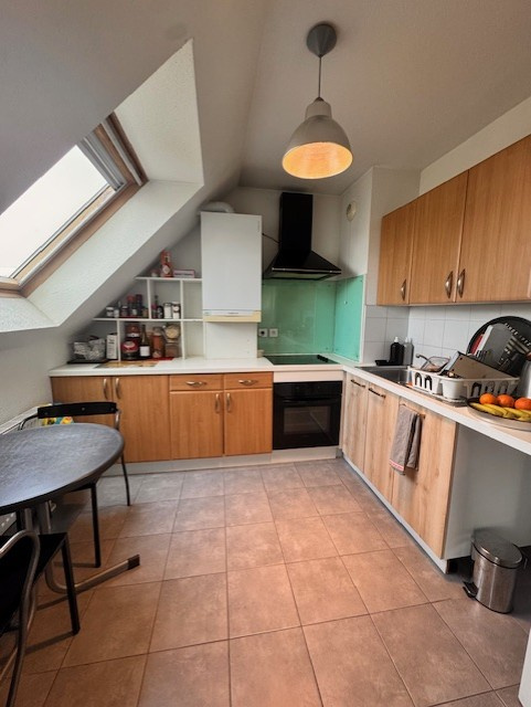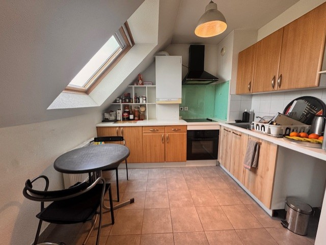 La cuisine, indépendante et entièrement équipée (four, plaque, hotte), allie fonctionnalité et confort, idéale pour cuisiner au quotidien en toute simplicité.