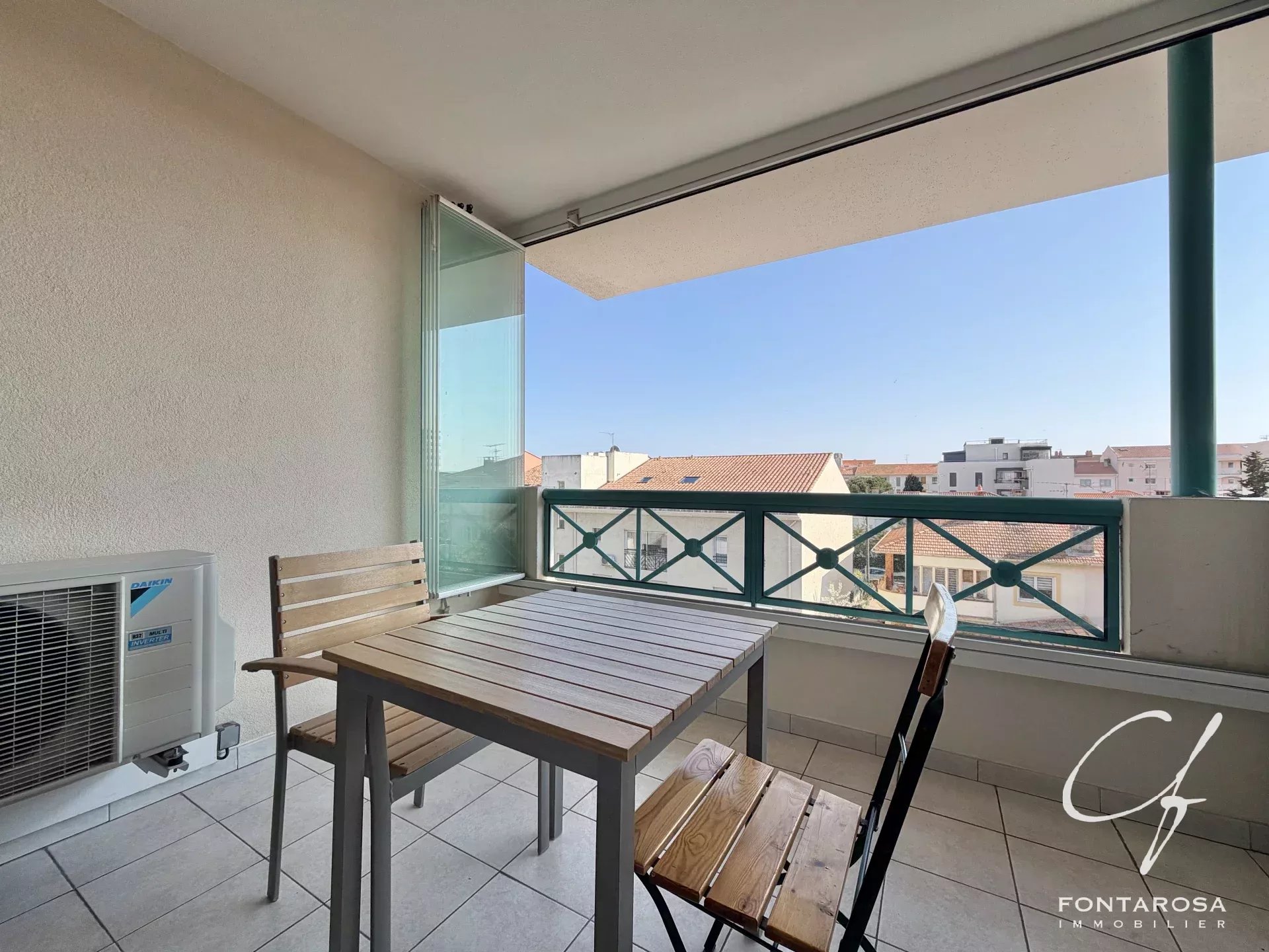 Godrete anche di una terrazza di 8 m² rivolta a sud, equipaggiata con pannelli vetrati modulabili, che permette di creare una vera stanza in più in inverno, mantenendo una apertura totale in estate.