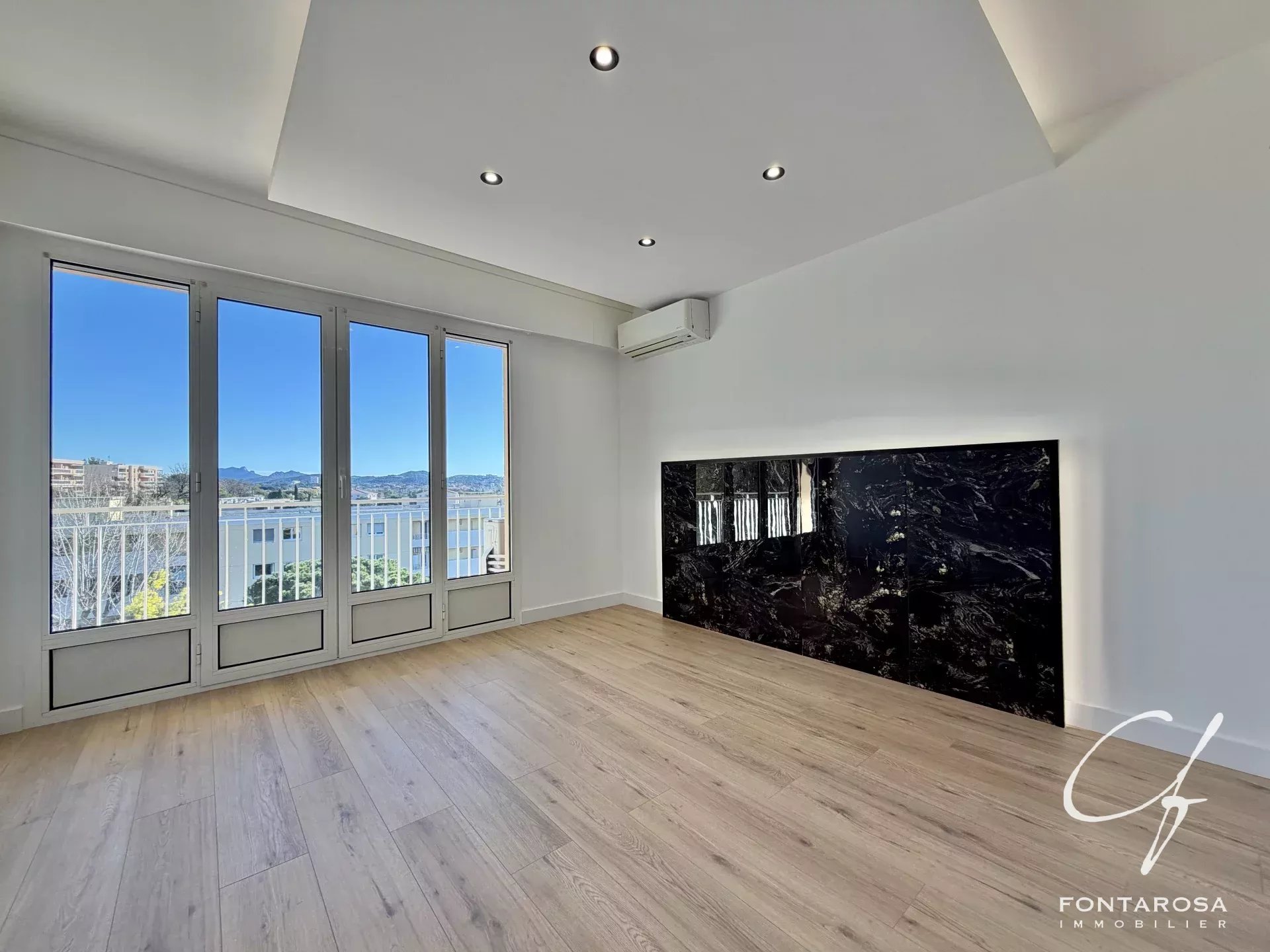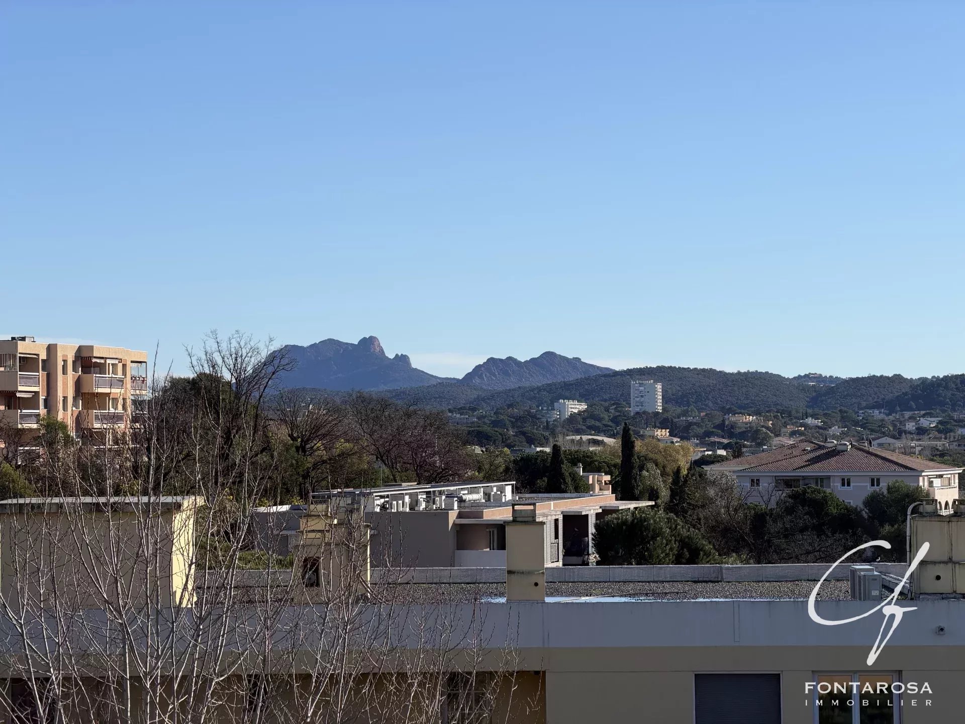 Situato in assoluta tranquillità alla fine di un vicolo cieco, questo appartamento all'ultimo piano, completamente ristrutturato e dotato di ascensore, offre un raro ambiente di vita con vista a 180° su L'Estérel e sulle città di Fréjus e Saint-Raphaël.