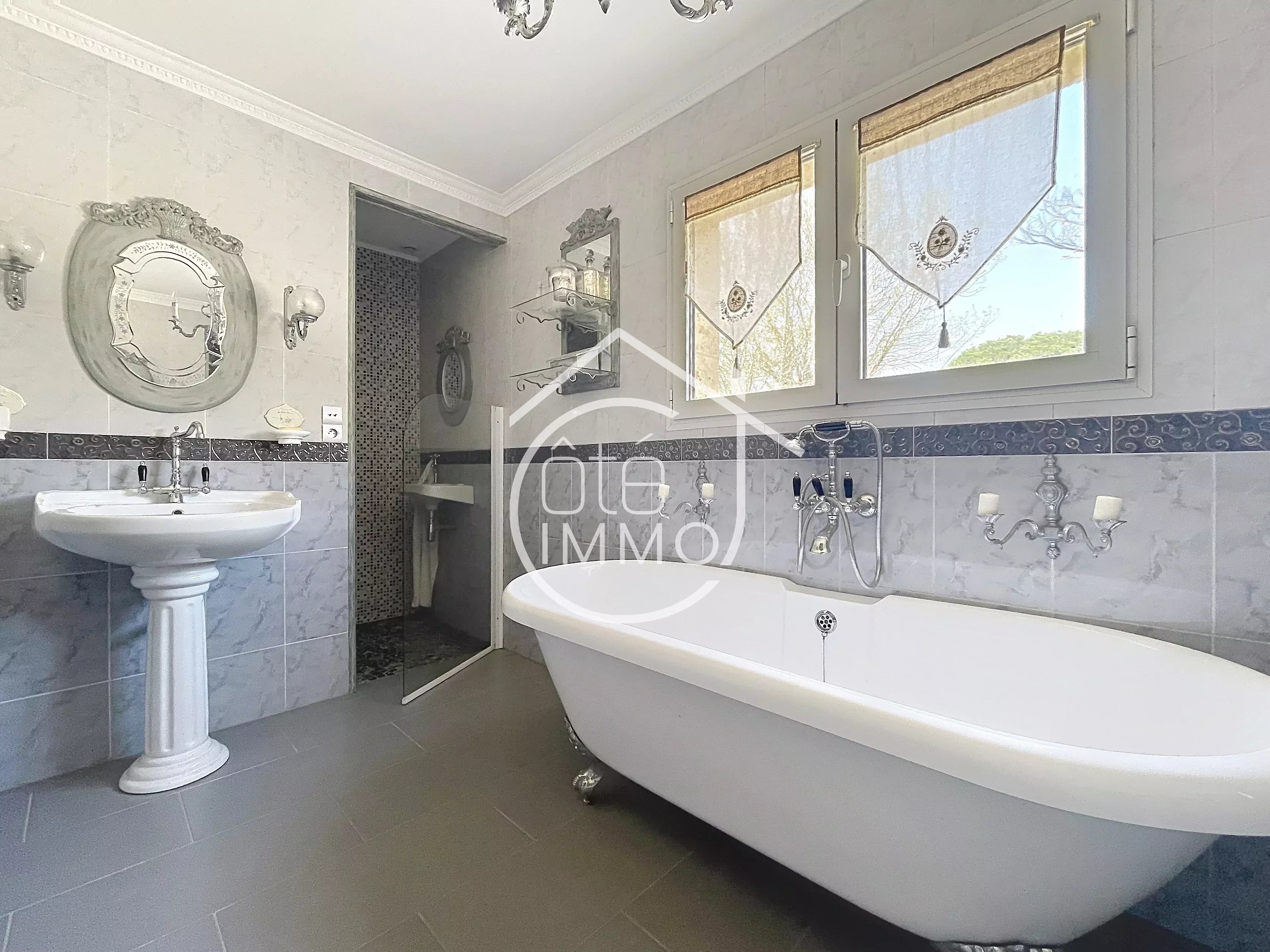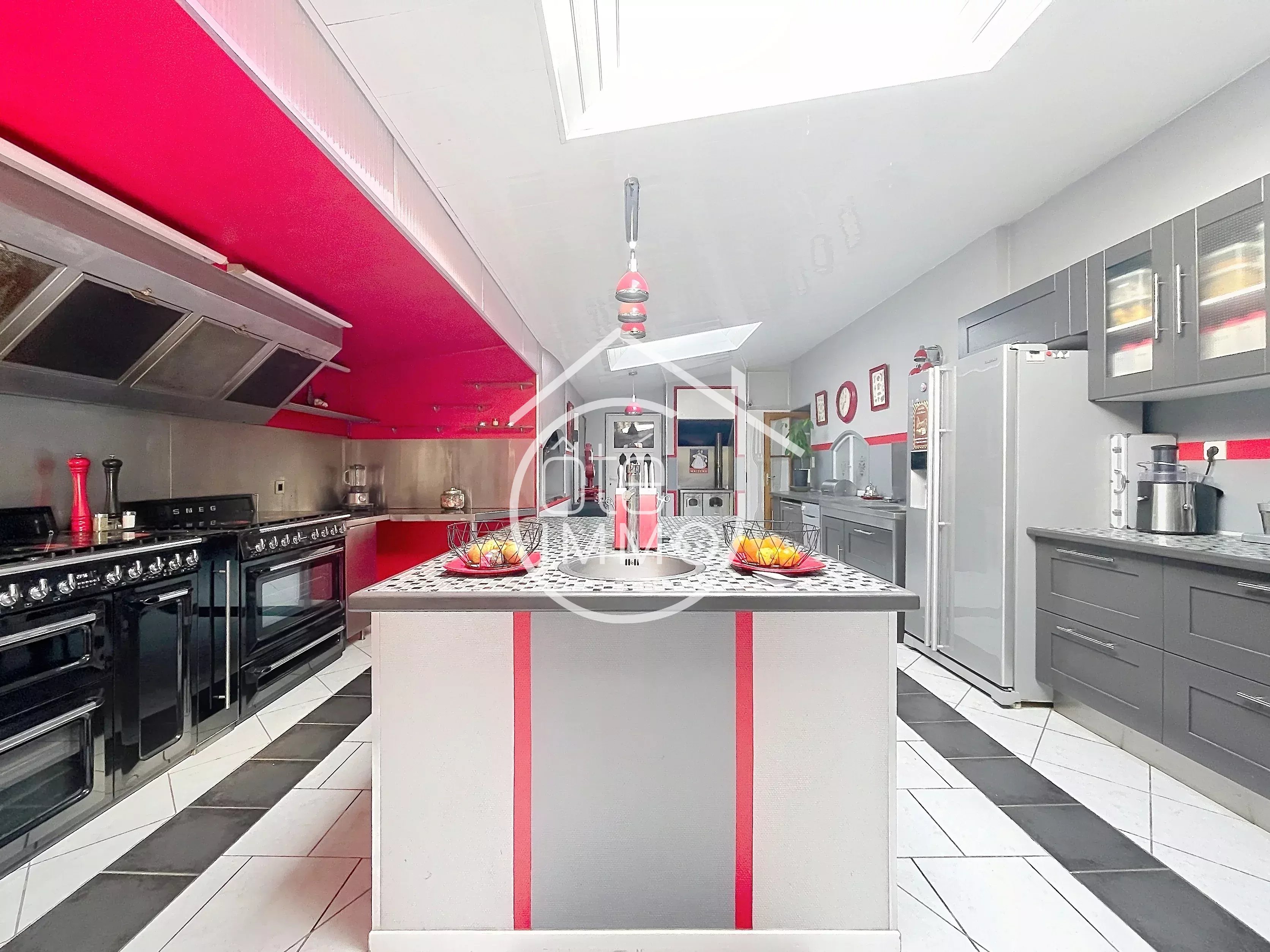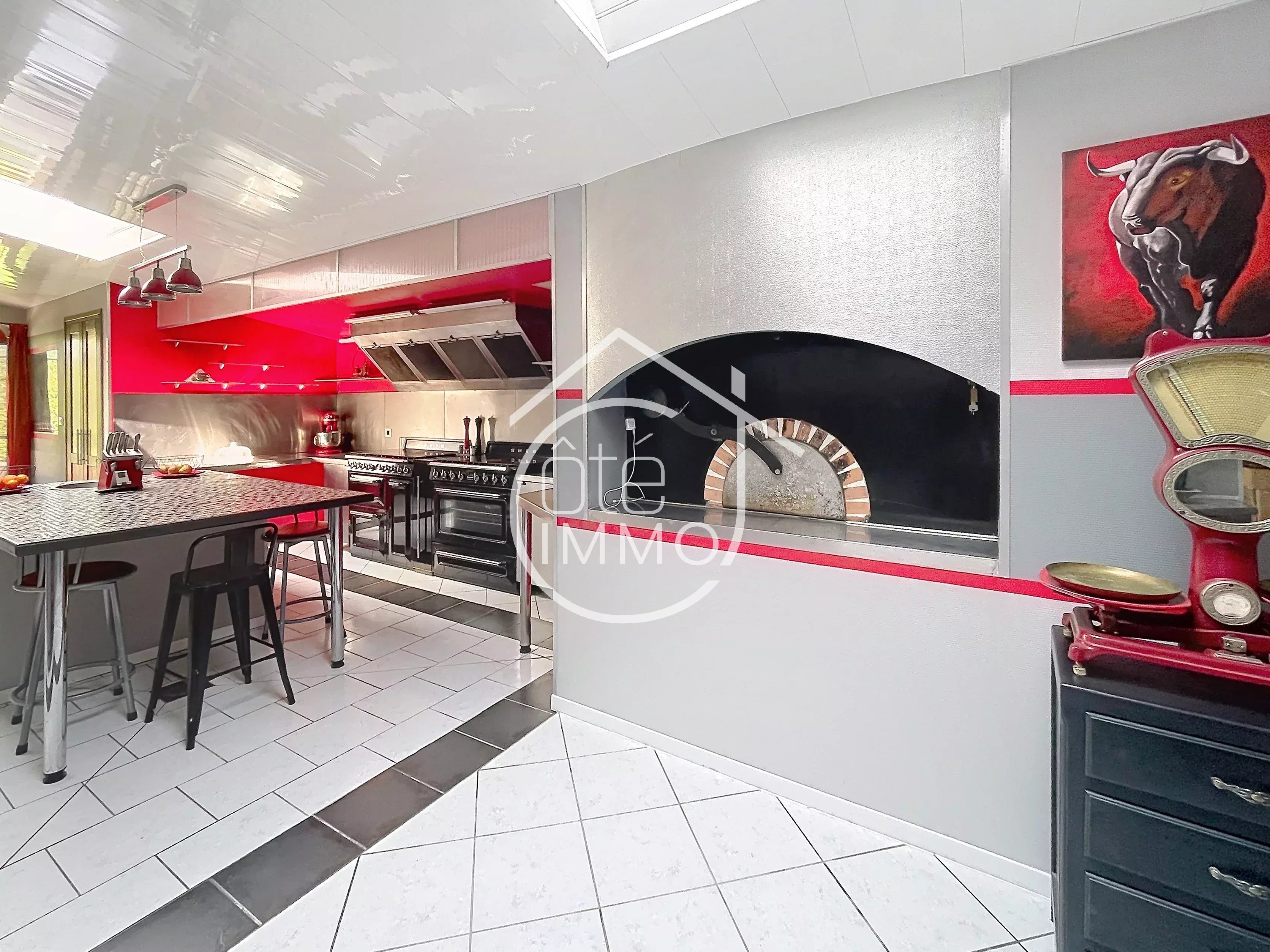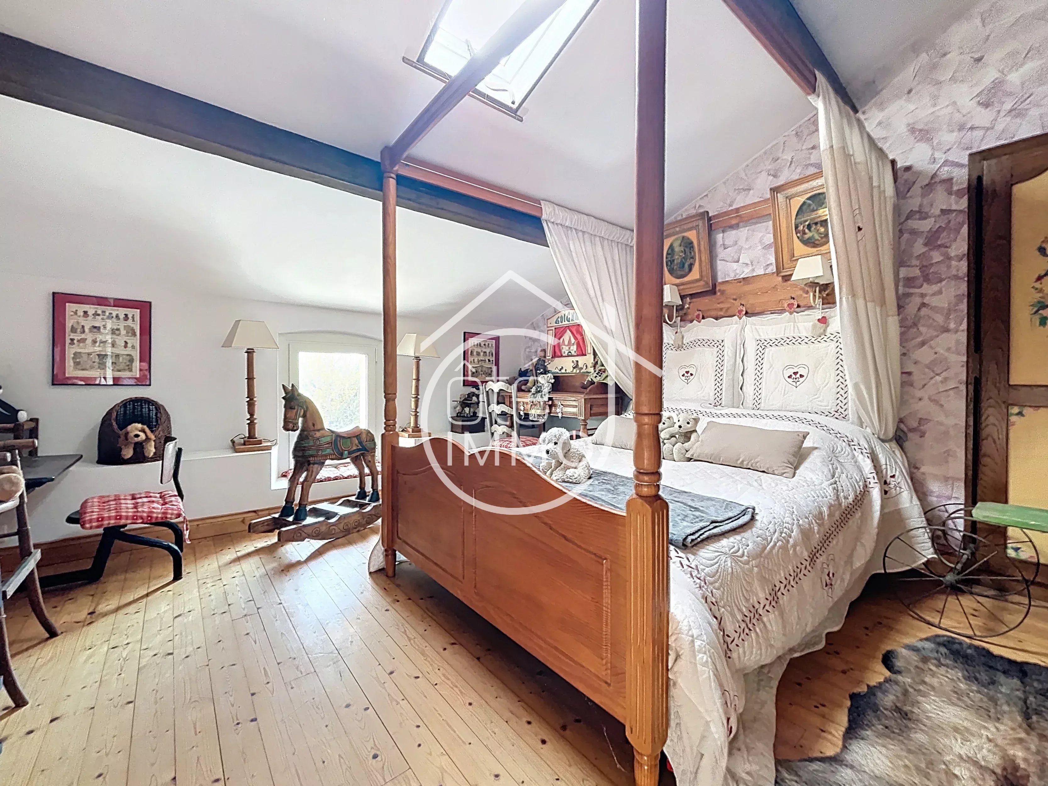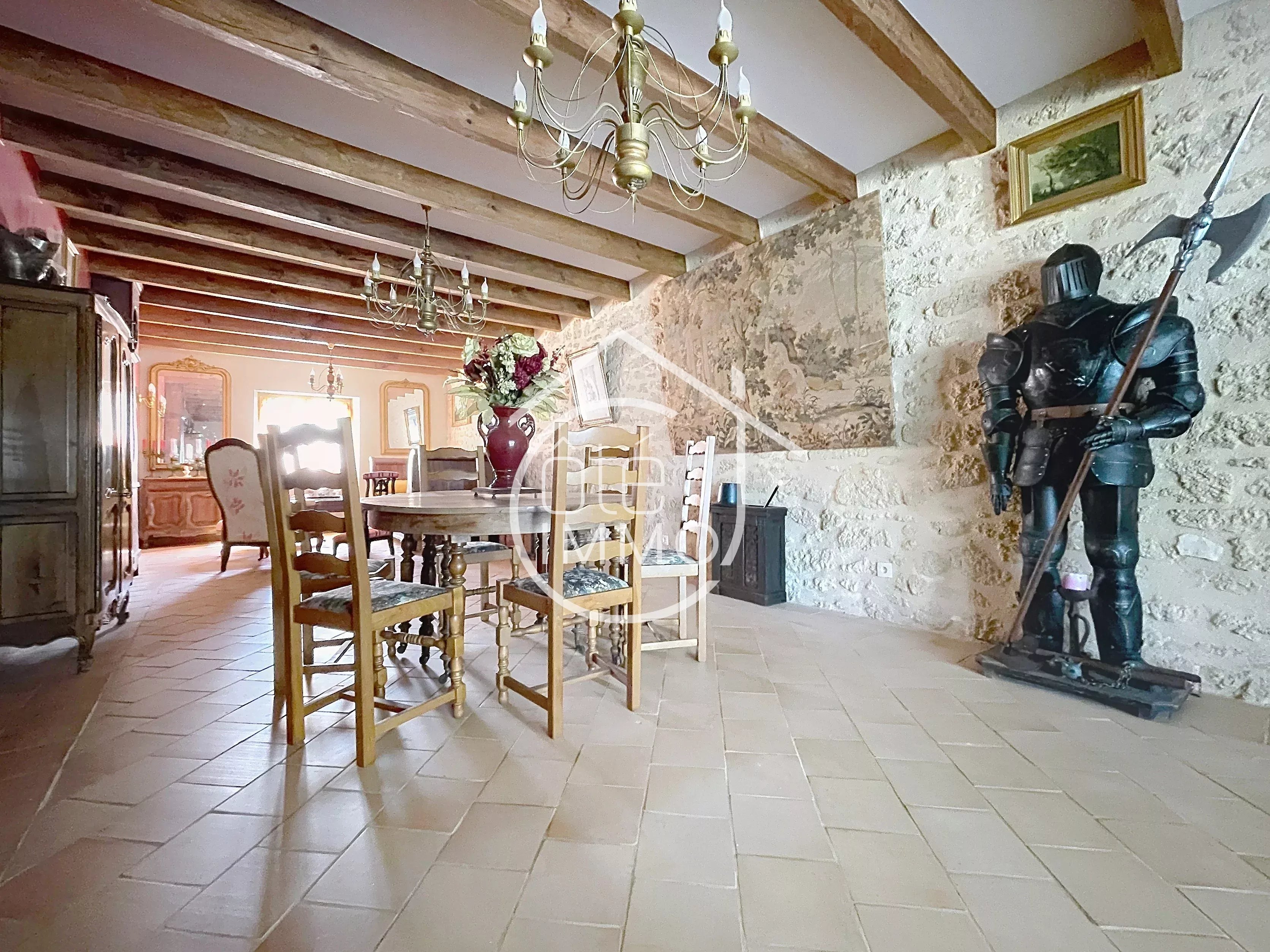 Grande propriété en pierre de 340 m² habitables avec piscine intérieure et parc arboré Amateurs d’authenticité et de volumes, venez découvrir cette superbe demeure en pierre apparente alliant le charme de l’ancien au confort moderne, implantée sur un terrain paysager de près de 2 500 m² entièrement entouré de haies et à l’abri de tout vis-à-vis. Offrant environ 340 m² habitables (surface chauffée) et plus de 450 m² d’espace pondéré en incluant les espaces annexes, cette propriété propose un cadre de vie remarquable et de nombreuses possibilités d’aménagement. Au rez-de-chaussée, une grande entrée mène à un salon chaleureux avec cheminée, un grand séjour/salle à manger d’environ 40 m², ainsi qu’à une cuisine moderne entièrement équipée avec îlot central, chambre froide, cellier et buanderie. À l'arrière de la maison, une vaste pièce avec de grandes baies vitrées court sur toute la longueur de la maison: un petit salon lumineux avec bar débouche sur une salle de bains complète (baignoire, douche, toilettes) et sur une salle de billard, laquelle ouvre sur une superbe piscine intérieure avec spa, dans un grand espace d’environ 90 m². À l’étage, la maison dispose d’une suite parentale avec salle d’eau privative et accès à un grand balcon dominant le parc. Trois autres chambres, une salle de bains supplémentaire et un dressing complètent cet étage. La cuisine communique avec un garage de plus de 30 m², déjà équipé pour l’aménagement éventuel d’une suite parentale en rez-de-chaussée. La maison est également équipée d'un vaste atelier d’environ 85 m² et d'une cave. À l’extérieur, le jardin paysager bénéficie d’un second atelier de plus de 40 m², d’une petite serre et d’un abri de jardin en bordure d'un étang — le tout dans un environnement intime et verdoyant, parfaitement entretenu. Équipements et prestations techniques : - Chauffage central au bois (radiateurs au rez-de-chaussée), complété par radiateurs électriques à l’étage. - Cheminée fonctionnelle. - Menuiseries double vitrage bois et aluminium. - Toiture refaite il y a une dizaine d’années environ. - Assainissement non conforme mais fonctionnel. - Portail électrique et carport - Puits Une propriété pleine de charme et de potentiel, idéale pour une grande famille, une activité de gîte ou un projet d’atelier d’artiste.