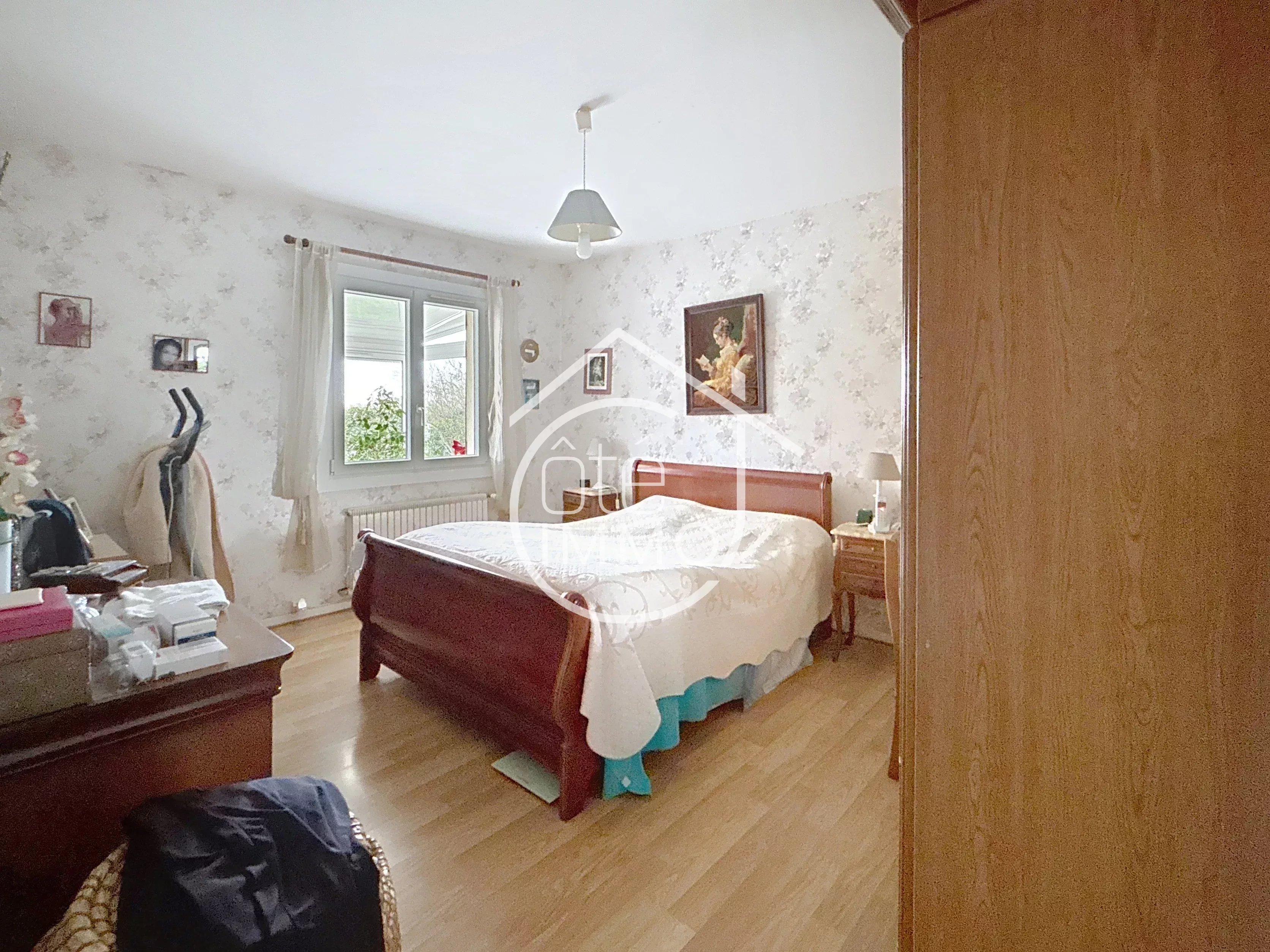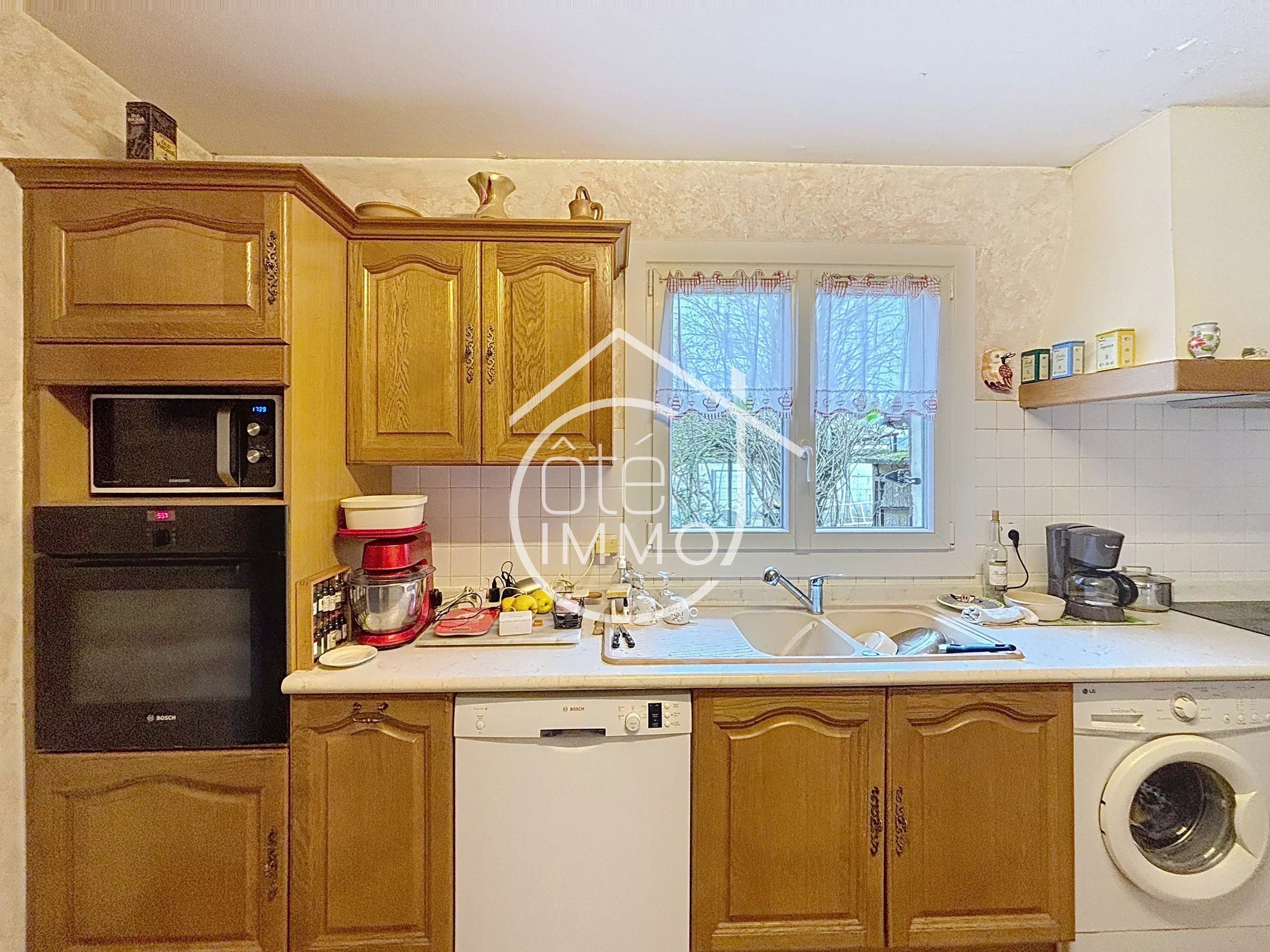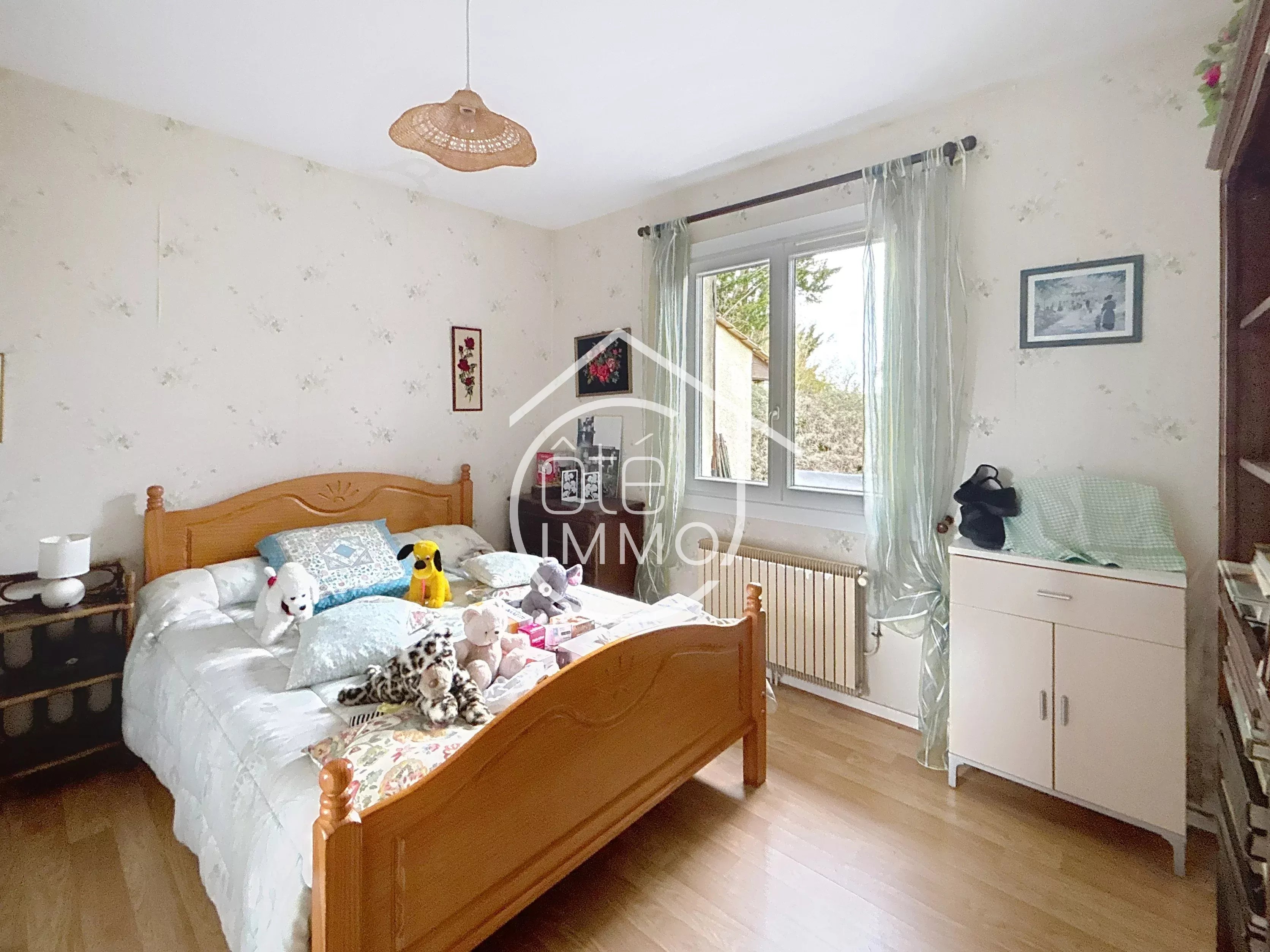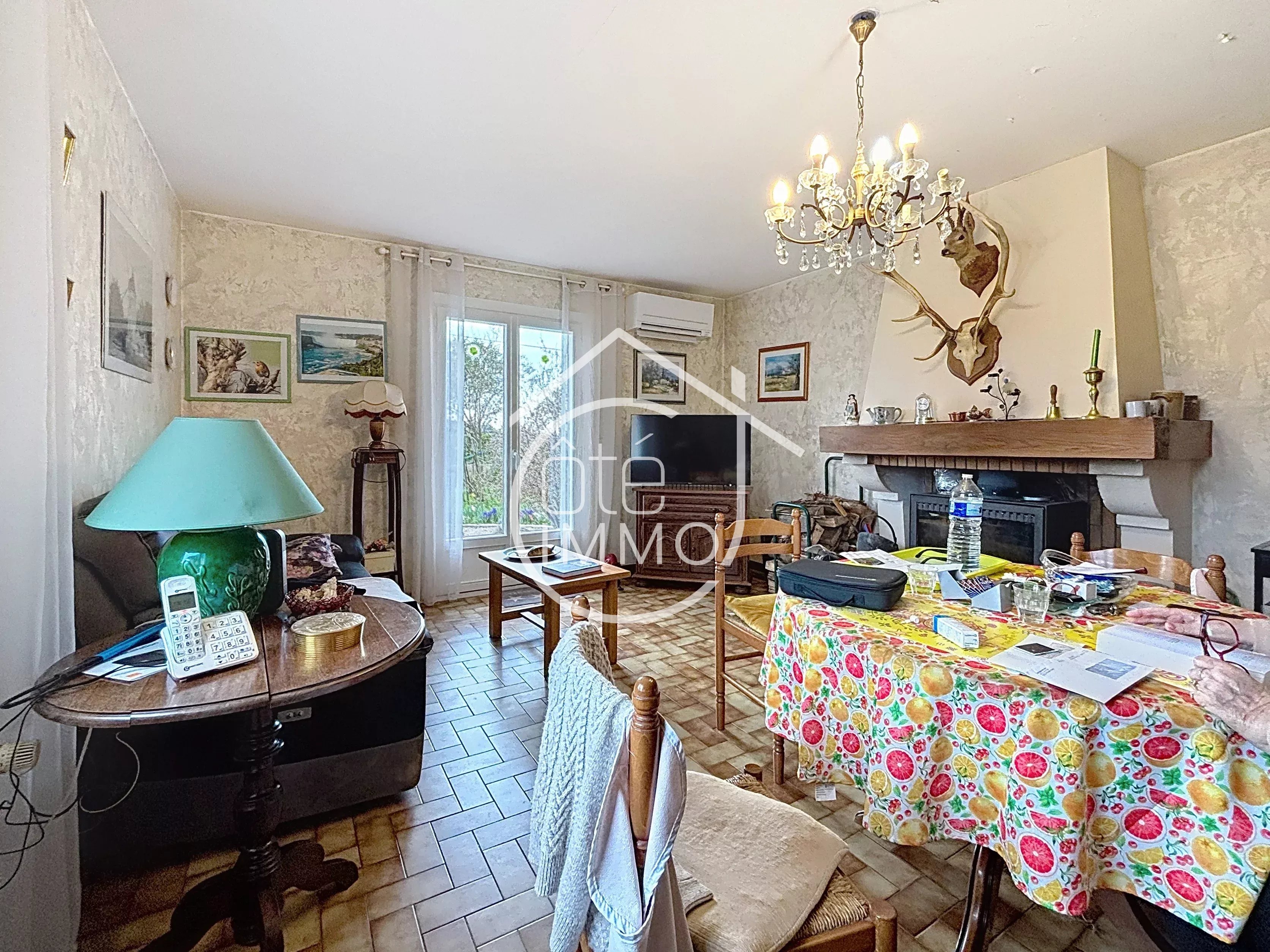 Située dans un environnement calme et privilégié, cette jolie maison de plain-pied de 4 pièces vous séduira par son cadre de vie agréable et son terrain de 2 000 m² entièrement clôturé avec portail electrique, garantissant intimité et sérénité. Dès l’entrée, vous apprécierez la séparation harmonieuse entre l’espace jour et l’espace nuit. Côté jour, le salon lumineux, agrémenté d’une cheminée avec insert, constitue un véritable cocon pour partager de chaleureux moments en famille. La cuisine indépendante, fonctionnelle et parfaitement agencée, dispose d’un cellier attenant offrant un bel espace de rangement. Depuis celui-ci, vous accédez directement au garage, un véritable atout au quotidien. Côté nuit, un couloir dessert deux chambres et un bureau pouvant être agrandi pour faire une 3 chambre. Une salle de douche récente et des toilettes indépendants complètent cet espace, assurant confort et praticité pour toute la famille. Une véranda lumineuse vient prolonger les espaces de vie, idéale pour profiter de la lumière naturelle tout au long de l’année, été comme hiver. La maison est équipée d’une pompe à chaleur, garantissant un confort thermique optimal et des économies d’énergie en toute saison. À l’extérieur, vous découvrirez un joli jardin propice à la détente, ainsi qu’un espace de stationnement facilitant l’accueil de vos véhicules. À l’arrière,deux garages offrent des espaces supplémentaires de stationnement ou de rangement. L’ensemble est entièrement sécurisé grâce à un portail et un interphone, assurant tranquillité et intimité. Un puits complète les prestations extérieures, véritable atout écologique et économique pour l’arrosage du jardin.