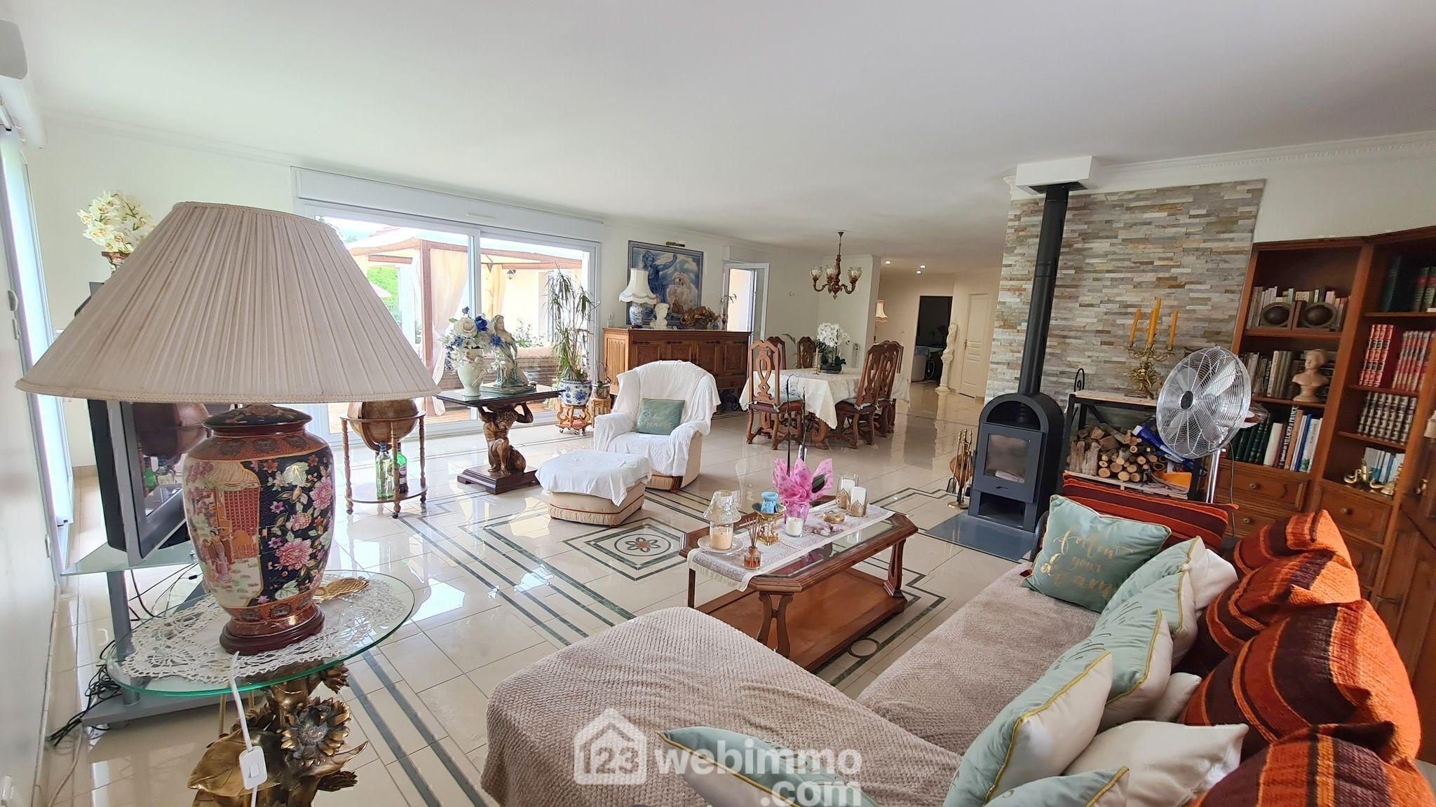 Votre agence 123webimmo vous présente : Plain-pied d'exception au coeur de la nature ? Volumes, calme et prestations rares. Laissez-vous séduire par cette superbe maison de plain-pied offrant 231 m² habitables, implantée dans un environnement privilégié, au coeur d'un écrin de verdure et au calme absolu, à proximité immédiate de la forêt. Un cadre rare, idéal pour conjuguer sérénité et confort de vie, sans renoncer à la proximité des commodités. Dès l'entrée, les volumes généreux et la qualité de l'agencement séduisent immédiatement. Vous découvrirez une vaste entrée ouvrant sur un triple séjour baigné de lumière de 53 m², agrémenté d'un poêle à bois, et prolongé par une salle à manger conviviale. La cuisine spacieuse et entièrement équipée de 17 m² ravira les amateurs de gastronomie et de moments partagés. La partie nuit propose cinq belles chambres lumineuses, allant de 16 à 21 m², dont une suite parentale à personnaliser selon vos envies (salle d'eau et / ou dressing), ainsi qu'un bureau parfaitement adapté au télétravail. À l'extérieur, le charme opère tout autant avec un terrain plat de 9 721 m², en partie non constructible, offrant calme, intimité et un fort potentiel, notamment pour l'aménagement d'une piscine. Une terrasse idéalement exposée, sans vis-à-vis, accueille un espace spa propice à la détente et aux moments de bien-être. Côté prestations, cette propriété dispose de nombreux atouts : double garage de 60 m², garage supplémentaire de 25 m², chalet aménagé, menuiseries PVC avec volets roulants électriques centralisés, le tout venant parfaire un ensemble rare sur le secteur. Une opportunité à ne pas manquer. Contactez-nous dès aujourd'hui pour organiser une visite et découvrir tout le potentiel de ce bien d'exception. Les informations sur les risques auxquels ce bien est exposé sont disponibles sur le site Géorisques.Informations LOI ALUR : Honoraires charge vendeur. (gedeon_26615_32973390)