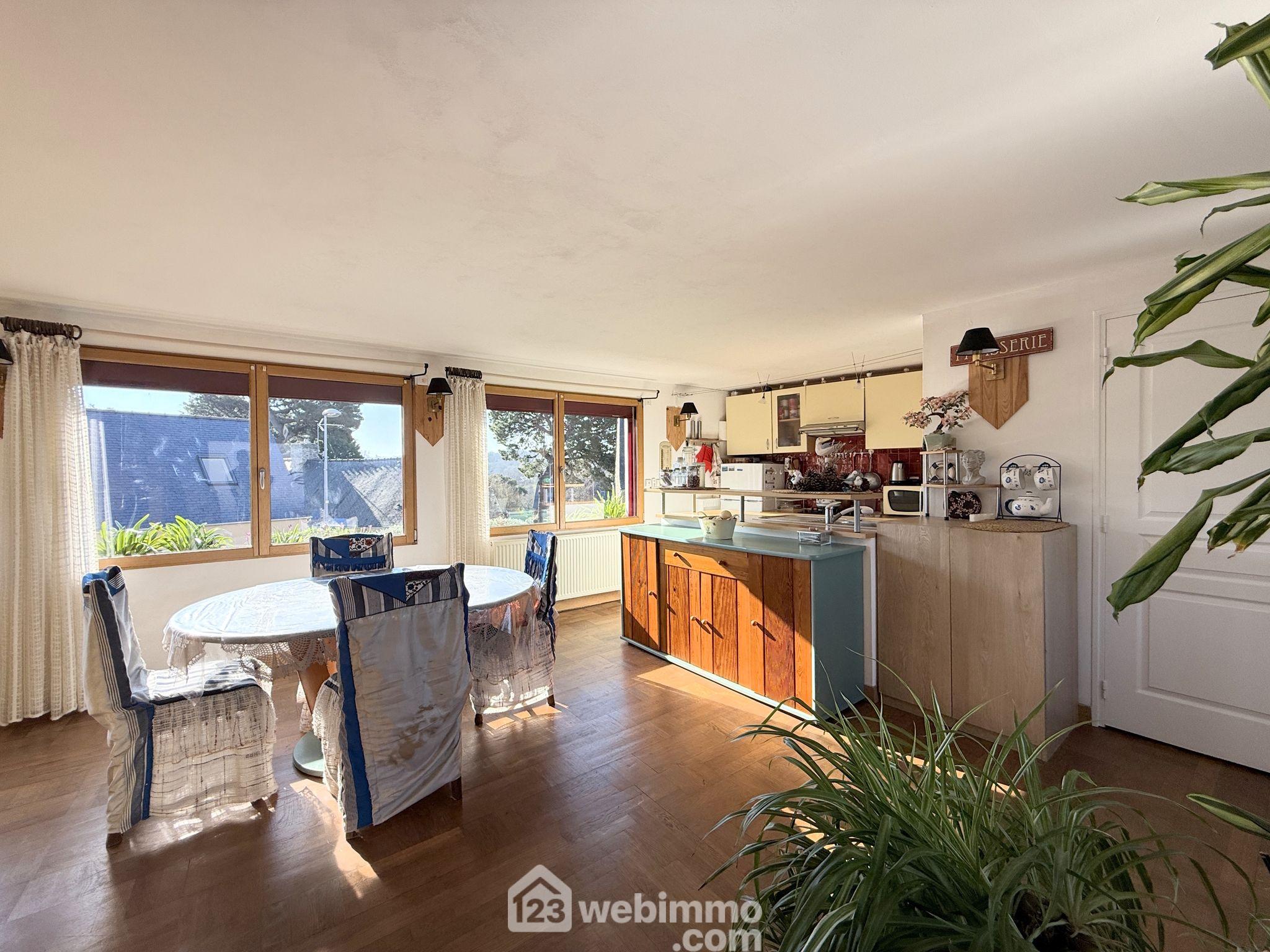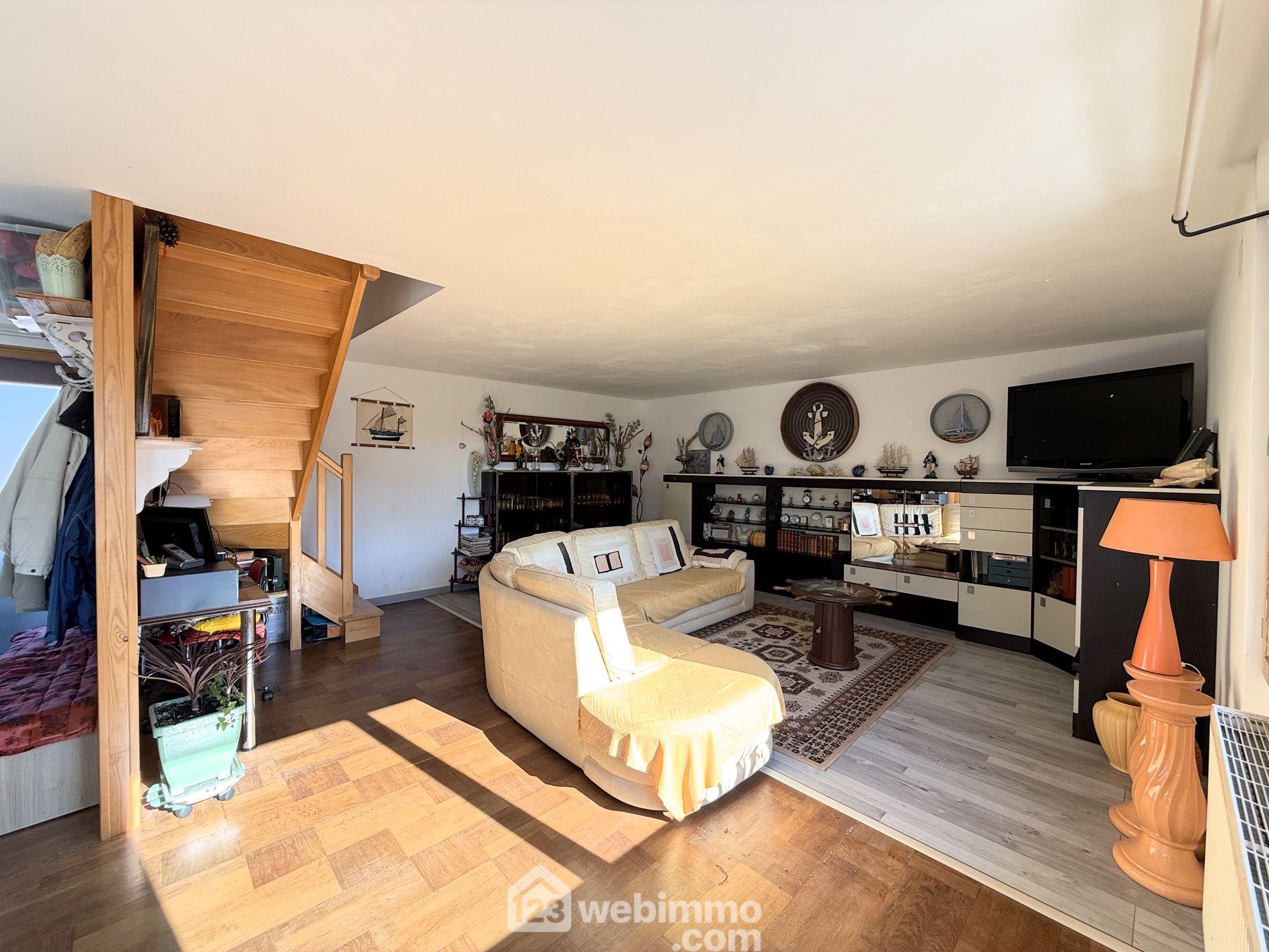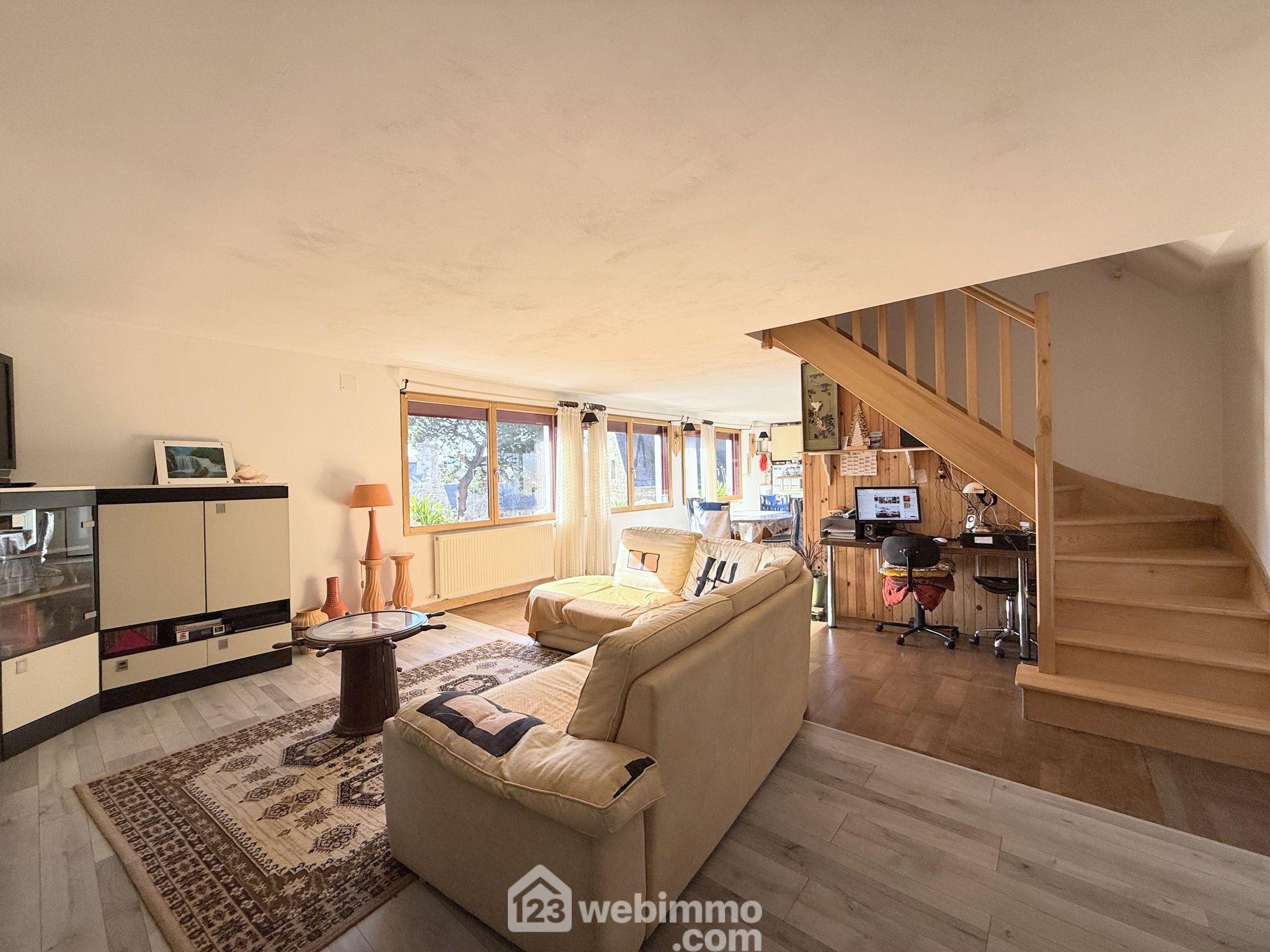 Votre agence 123webimmo vous présente : À 400m de la magnifique plage de Notigou comme de l'épicerie boulangerie et à 10km de Lannion et sa gare TGV, au coeur du village historique de Locquémeau, orientée Sud, maison de bourg de 112 m² renfermant au rez-de-chaussée un appartement de type 2 de 42 m² et à l'étage, un second appartement de type 3 de 70 m². Retrouvez l'intégralité des photos, les plans, et la localisation, directement sur le site de votre agence 123webimmo de Trédrez-Locquémeau. Au rez-de-chaussée, l'appartement de type T2 de 42 m², s'ouvre sur une belle pièce de vie de 28 m² renfermant une cuisine ouverte et un espace salon, une chambre de 10 m² et une salle de douche avec WC de 4 m². Sa configuration actuelle lui permet d'accueillir jusqu'à 5 personnes en location estivale. Accessible par un escalier extérieur, le duplex de type T3 de 70 m² comprend une entrée desservant une grande pièce de vie d'environ 45 m² gorgée de lumière comprenant une cuisine aménagée et équipée, un espace salle à manger et un beau salon. Une salle de douche de 4,5 m² avec WC complète ce niveau. À l'étage le palier dessert 2 chambres de 12 et 14 m² ainsi qu'un WC indépendant. Prestations : La maison est raccordée au tout à l'égout, elle dispose de fenêtres Alu-bois double vitrage avec volets roulants, chauffage via chaudière au fuel, l'installation électrique ne présente aucune anomalie, VMC Hygro A, toiture en bon état, Fibre, aucun travaux à prévoir. Valeur locative, le T3 peut-être loué 650¤ / mois et le T2 450¤ / mois. Retrouvez l'intégralité des photos, les plans, et la localisation, directement sur le site de votre agence 123webimmo de Trédrez-Locquémeau. Les informations sur les risques auxquels ce bien est exposé sont disponibles sur le site du gouvernement : https://www.georisques.gouv.fr.Informations LOI ALUR : Honoraires : 3.60 % TTC charge acquéreur. Prix hors honoraires : 265 000 ¤. (gedeon_55045_32954760)