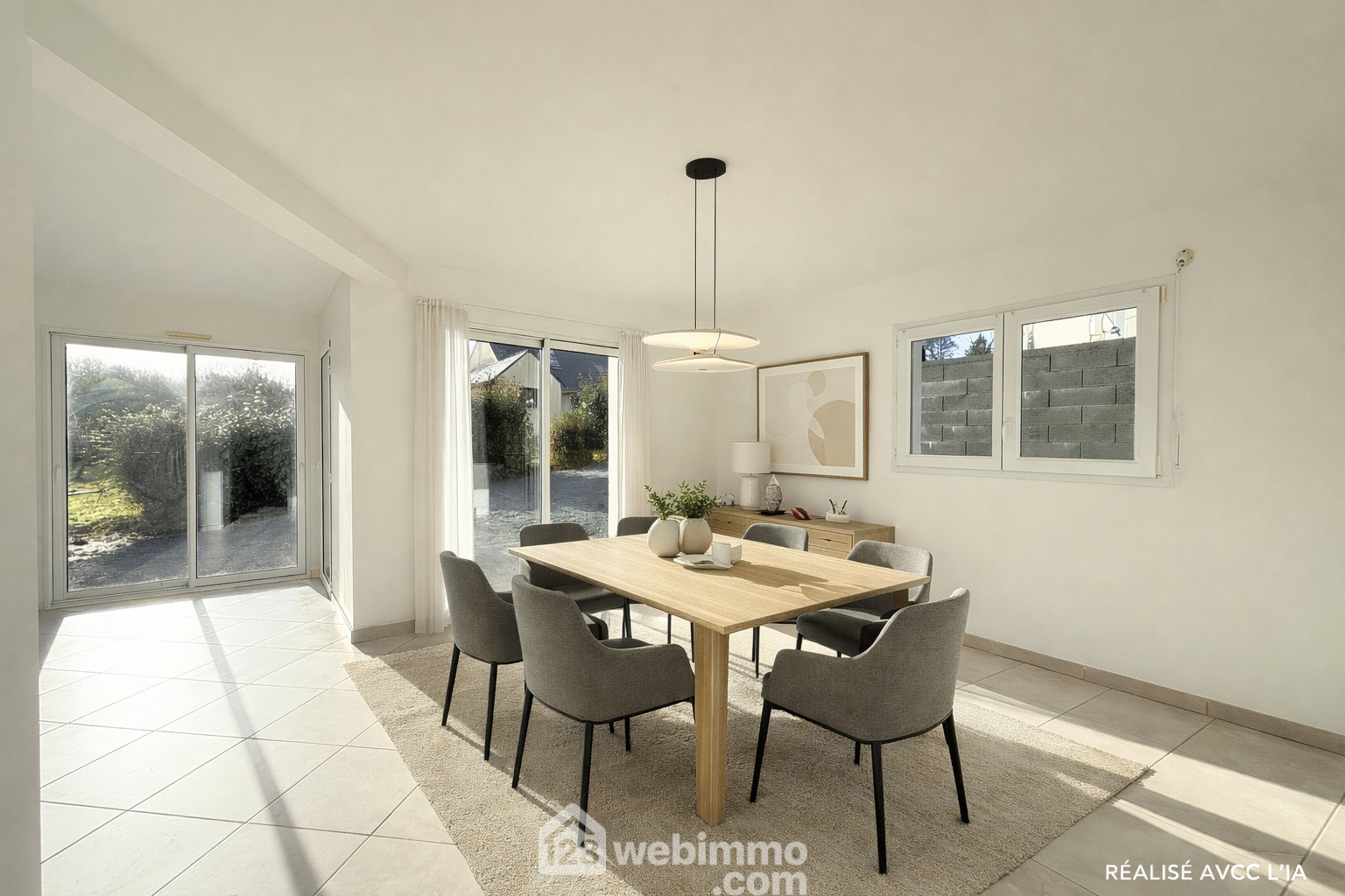 Votre agence 123webimmo vous présente : Sur la commune de Plouaret, dans un quartier résidentiel calme et recherché proche du parc des loisirs, à 700m du centre-bourg et de ses commerces, 800m de la gare TGV et à 15 minutes des plages, maison contemporaine de plain-pied édifiée en 2008 sur un terrain constructible de 450 m² environ, orientée Sud-Ouest et d'une superficie de 84 m² habitables. Retrouvez l'intégralité de la description, des photos et la localisation directement sur le site de votre agence 123webimmo du Trégor-Goëlo. La maison s'ouvre sur une belle pièce de vie de 44 m² renfermant un salon orienté sud-ouest, gorgé de lumière, un espace salle à manger et une cuisine aménagée et équipée prolongée d'un cellier - arrière cuisine de 7 m². La maison comprend également un espace nuit comprenant 2 chambres de 11 et 12 m², une grande salle de douche de 6 m², et un WC séparé. À l'extérieur, la maison se trouve au milieu d'une parcelle constructible d'environ 450 m² en cours d'aménagement et profite d'une zone naturelle dégagée non constructible de 3000 m² au Nord-Est. Prestations : Chauffage au sol sur toute la maison via une pompe à chaleur - ballon d'eau chaude - VMC - Assainissement collectif conforme - Toiture en très bon état - Fenêtres PVC et Alu double vitrage Oscillo-battantes - Volets roulants manuels et électriques - Tableau électrique conforme - détecteur de fumée - maison en parfait état. Retrouvez l'intégralité de la description, des photos et la localisation directement sur le site de votre agence 123webimmo du Trégor-Goëlo. Les informations sur les risques auxquels ce bien est exposé sont disponibles sur le site du gouvernement : https://www.georisques.gouv.fr.Informations LOI ALUR : Honoraires : 3.42 % TTC charge acquéreur. Prix hors honoraires : 240 000 ¤. (gedeon_55045_32985326)