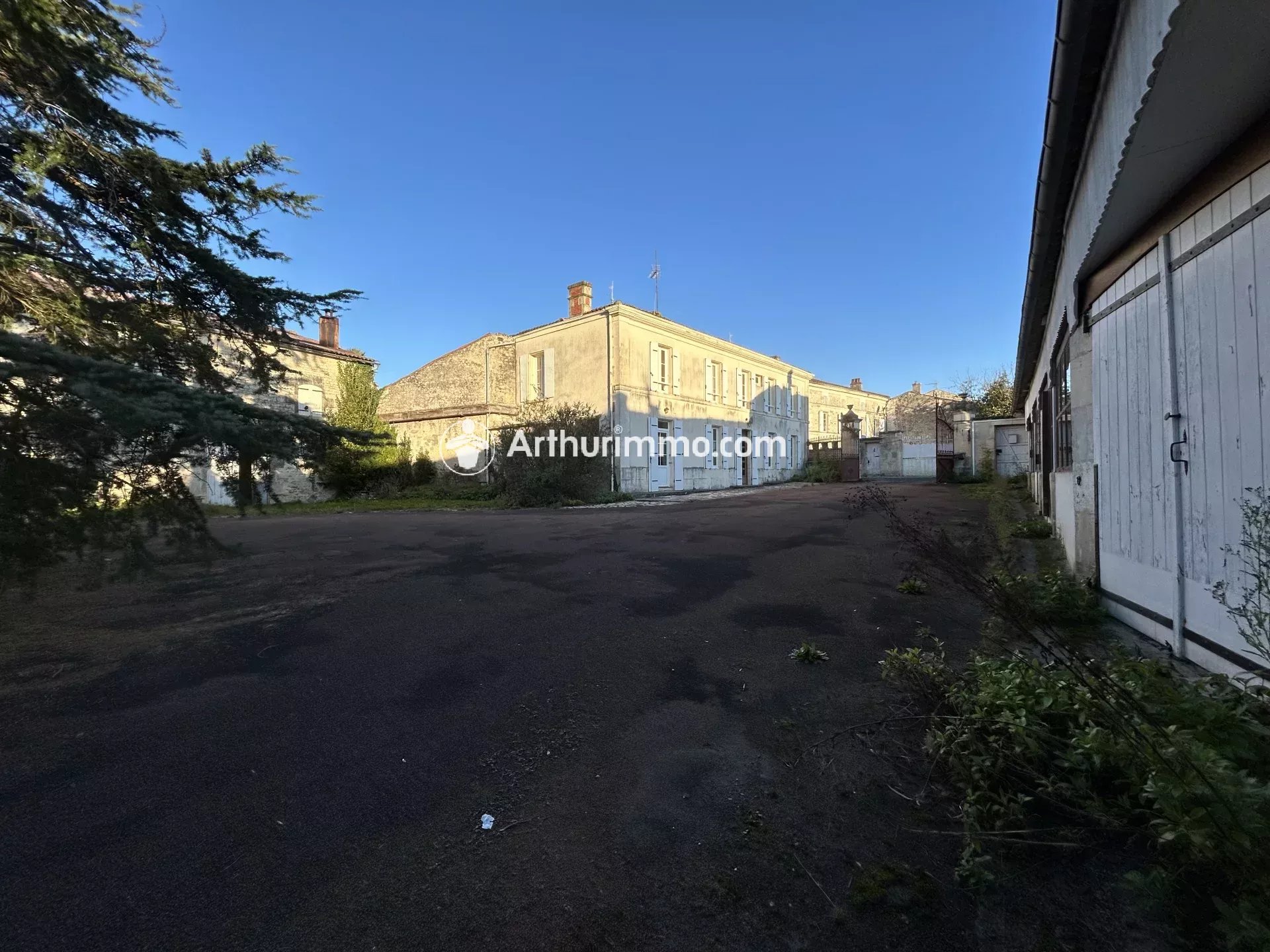Dans un village au bord de la Boutonne. Du charme pour cette propriété qui offre énormément de possibilités, avec nombreuses dépendances et ancienne maison à rénover. La maison principale se compose d'une entrée, cuisine aménagée/équipée, salle à manger, salon avec cheminée, wc ; étage 2 accès : 4 chambres, salle d'eau, salle de bains. Double vitrage pvc, chauffage central fuel + chaudière bois. Ancienne maison à rénover d'environ 75 m², 1 pièce avec cheminée + grenier. Dépendances vitrées, atelier, entrepôt, préaux, cellier...Puits, four à pain. Cour centrale entourée de tout le bâti en forme de U, et un beau terrain sur l'arrière au bord de la Boutonne pour environ 5500 m². Pour tout renseignement ou visite, contact : Frédérique HOPCHTEIDRE 06 70 37 18 87
